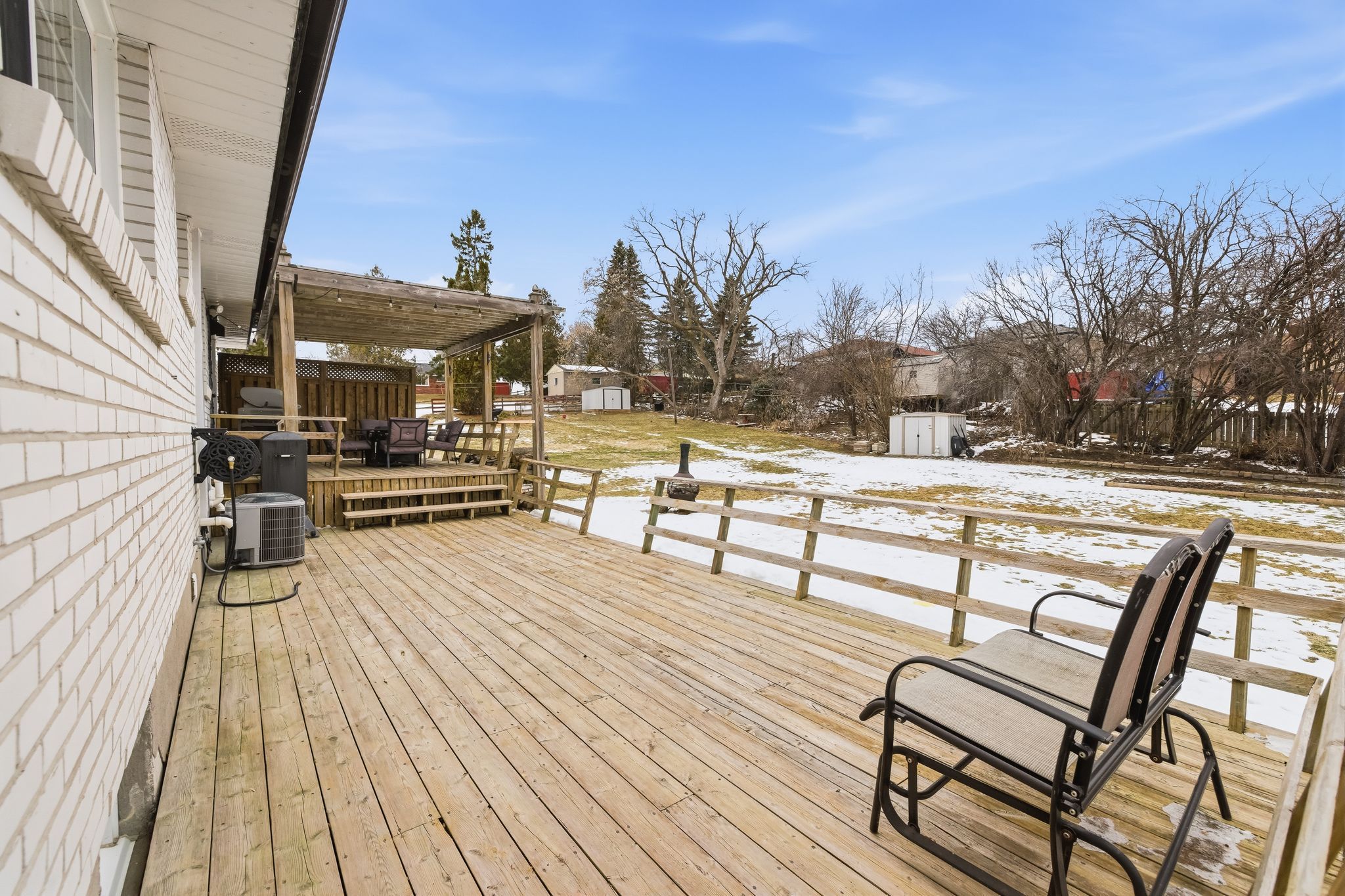 • Expansive private backyard with two-tiered deck for relaxation.