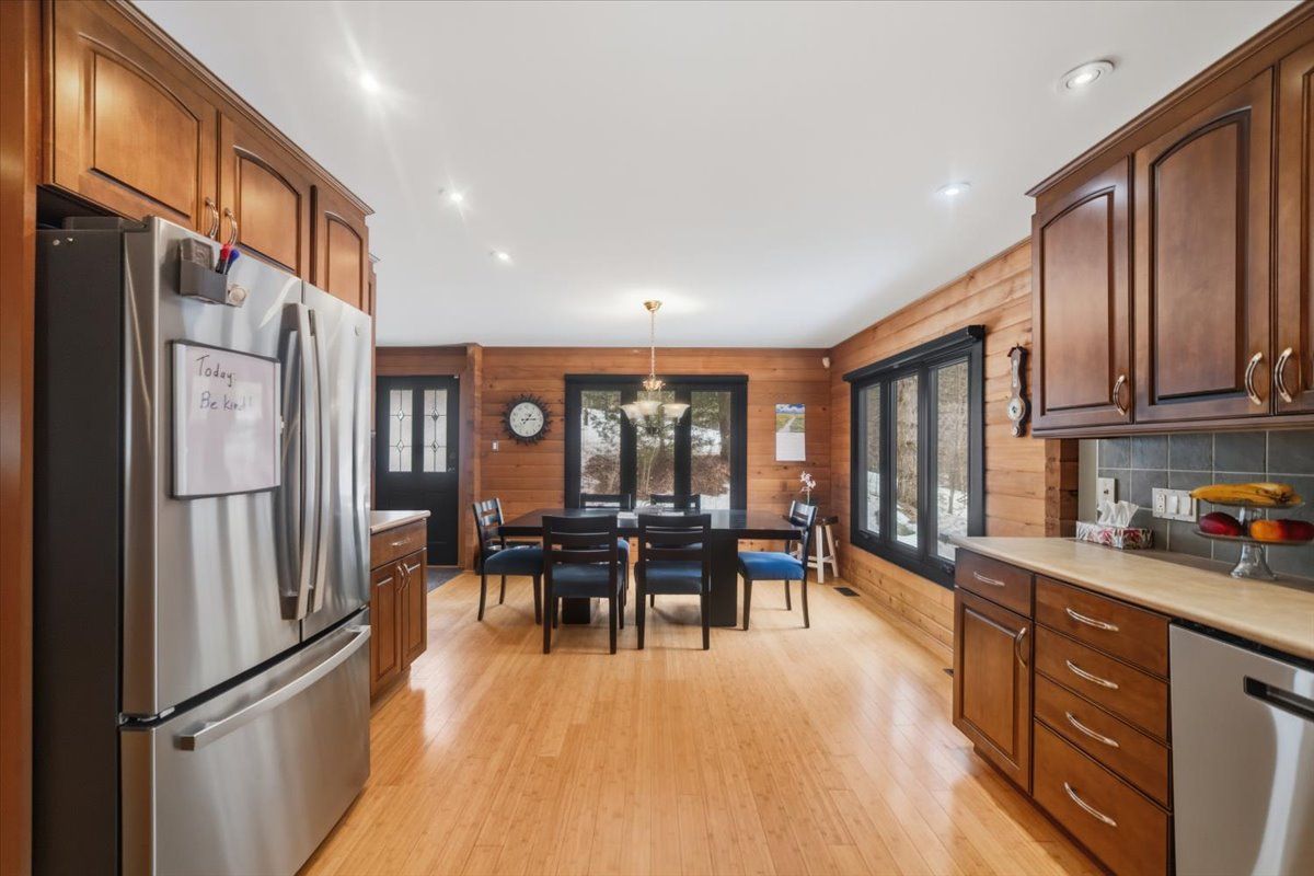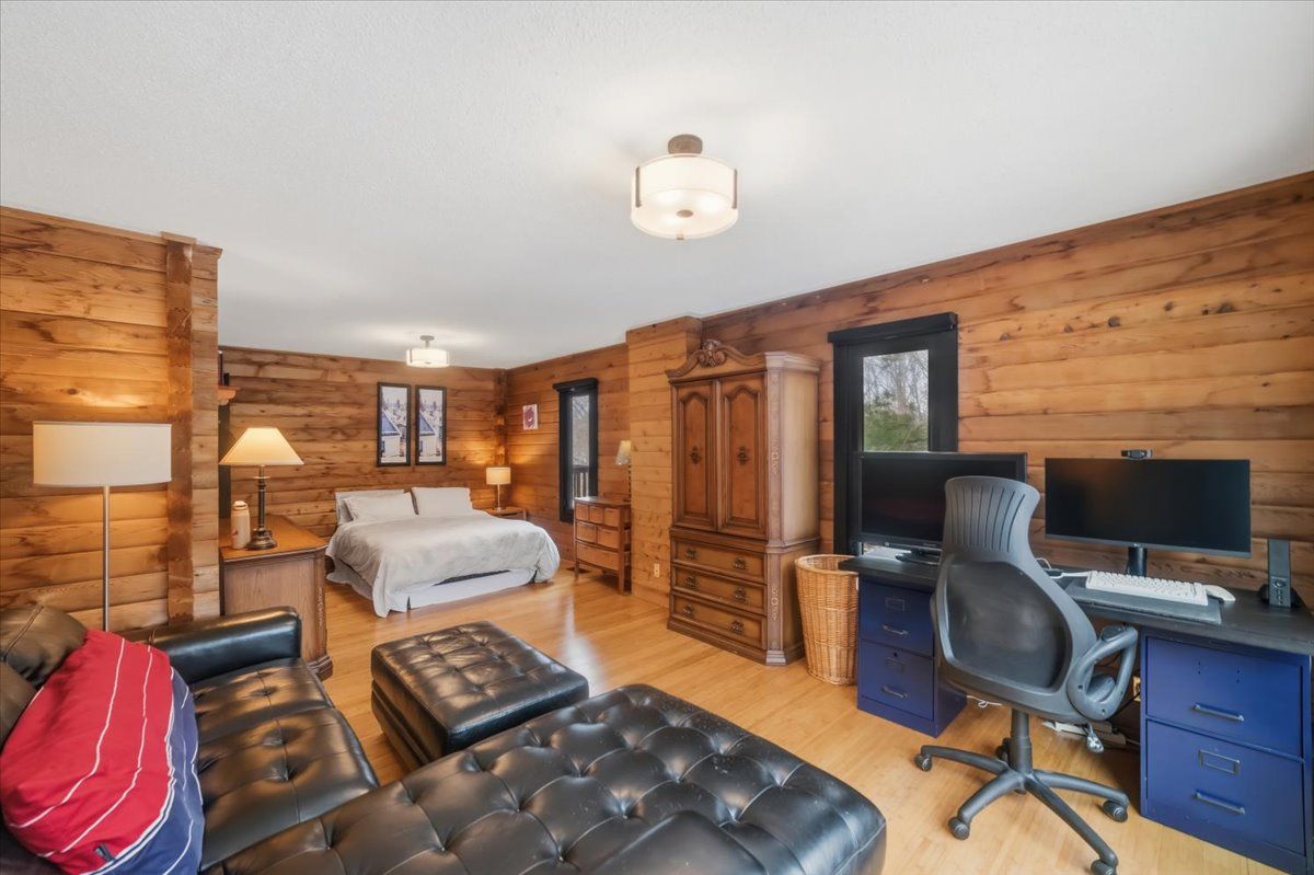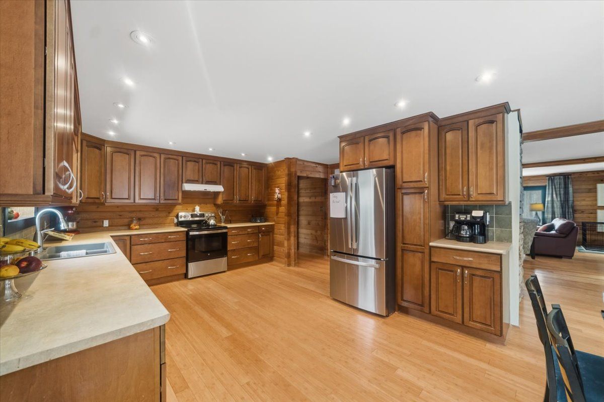 Opportunity for family living in the country but not in the sticks. This unique pan-abobe style log home with over 4000s/f has space for everyone. Bamboo hardwood, massive kitchen for the chef, views from the newer windows overlooking the beautifully landscaped 1 acre fully fenced yard. After a day of entertaining retire to the expansive primary suite with spa like ensuite. Watch the stars and wildlife from the screened gazabo or have early morning coffee on one of the decks. Minutes from barrie, shopping, schools, top tear golf, parking inside for the avid car collector. Take time to see this home today, may save you unnecessary trips elsewhere.