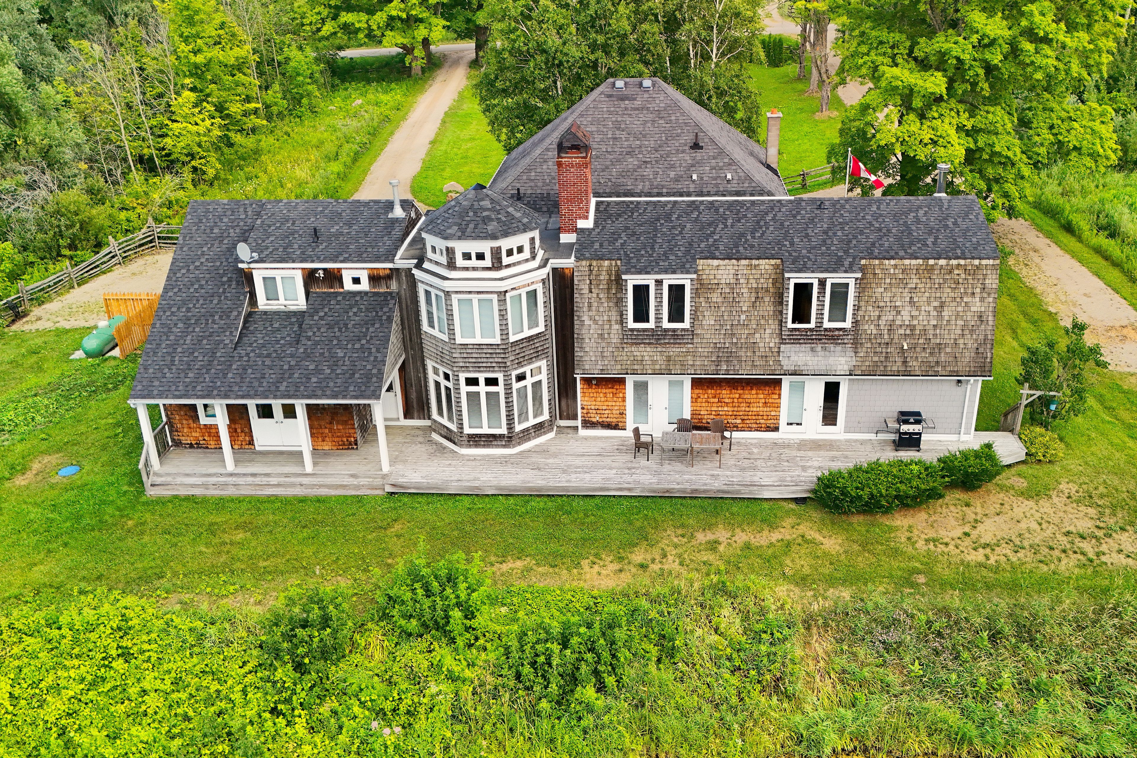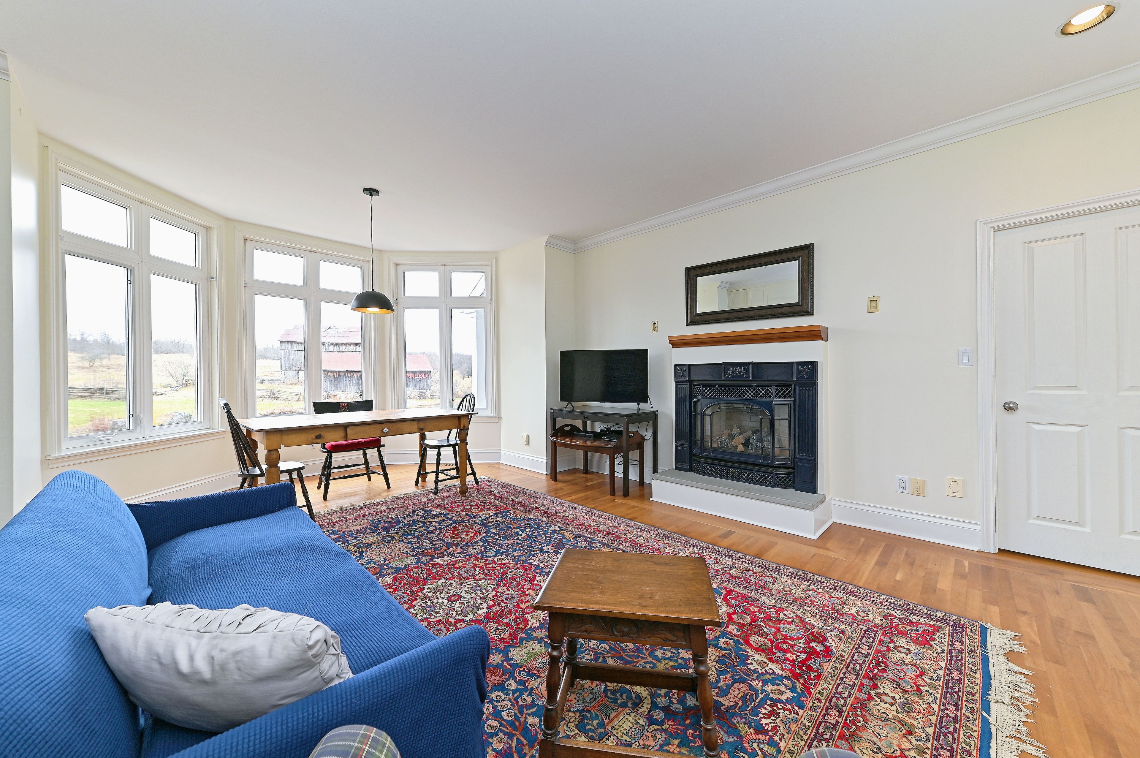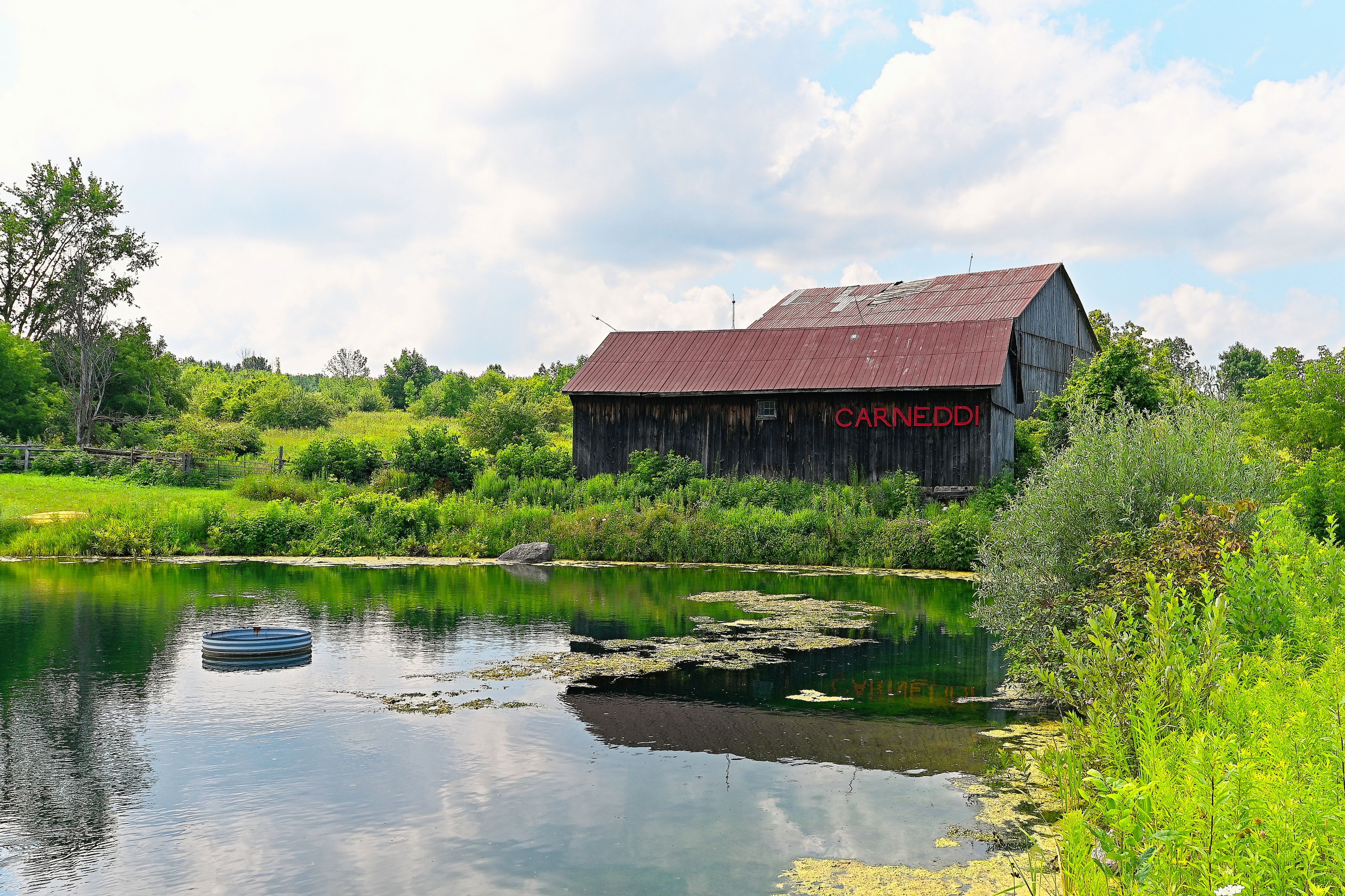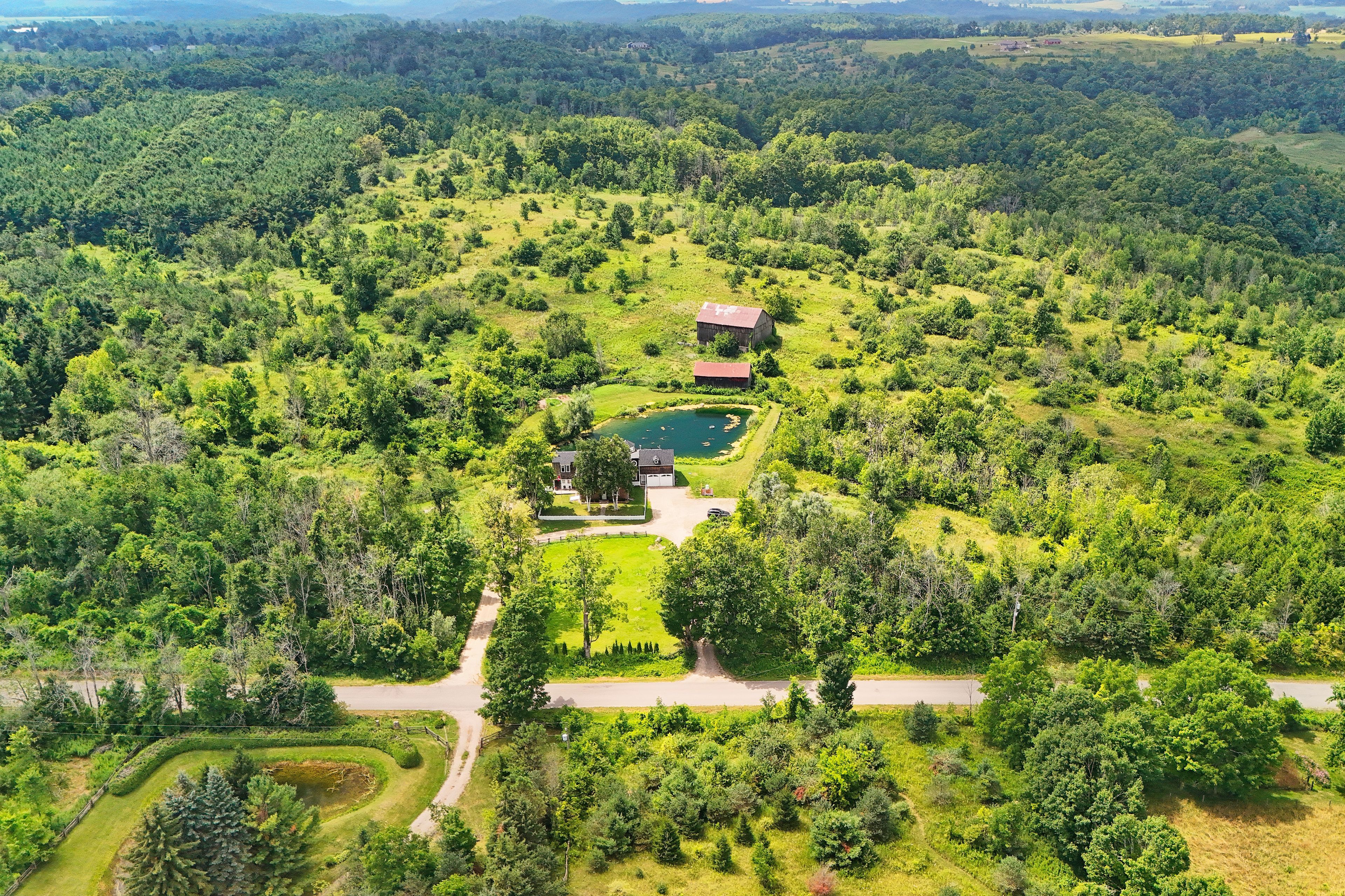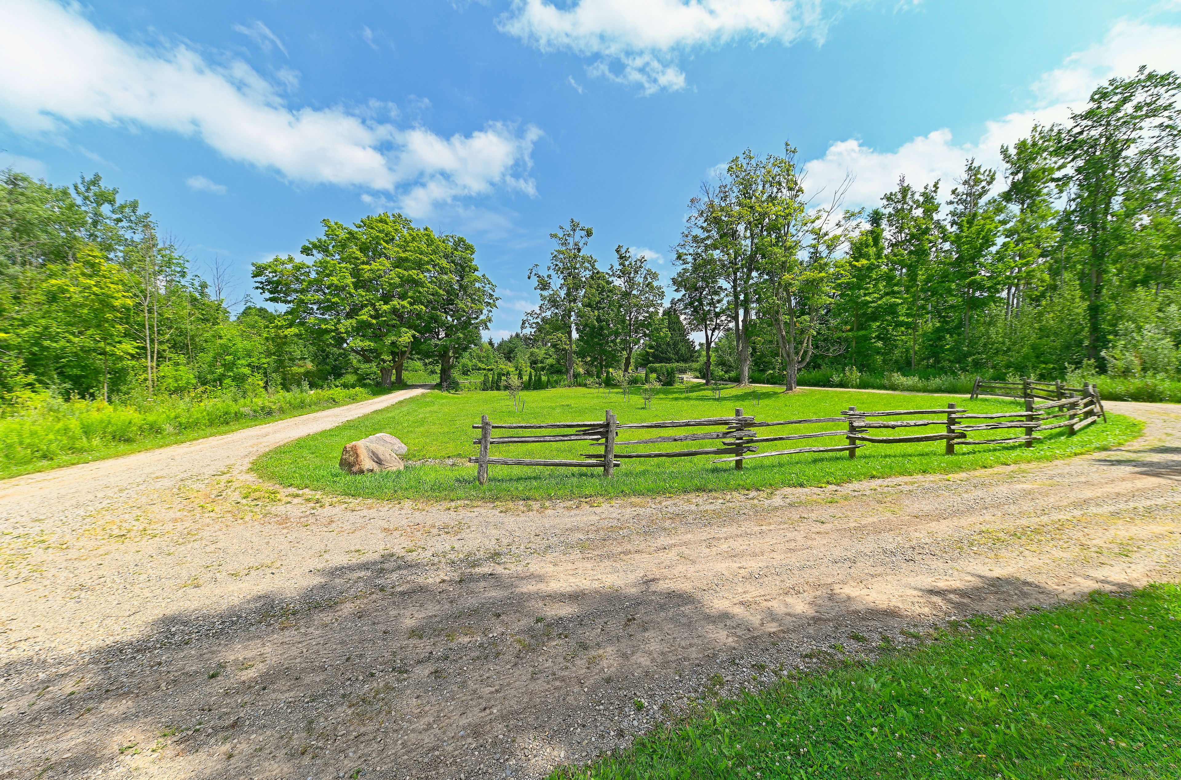 Set on 79 acres in the rolling countryside of mulmur, carneddi farm, a welsh term meaning place of stones, is one of those rare places - substantial, a family gathering place, and full of possibility. With its classic brick exterior, generous two-storey layout, and tree-lined private approach to the front white picket fence, this is a property that feels both established and deeply welcoming from the moment you arrive. A circular drive, ample parking, and an attached two-car garage make coming and going easy, whether you are hosting family for the weekend, welcoming guests for a holiday gathering, or simply returning home after a day spent outdoors. Built with a nod to traditional ontario agricultural buildings the inside features of barn beams, substantial baseboards, clear hardwood floors and original window moldings all take you back in time. But all of the conveniences, upper floor laundry, huge primary suite with dressing room, 4 piece ensuite, all overlooking the spring-fed pond make living with a sense of history easy. A large open-concept kitchen and great room with soaring ceilings and a walk-out deck and separate living room, dining room makes this a very easy place to spend time with a large group of friends and family. And don't forget to walk the trails while you are there - they are expansive and varied; rolling terrain through the apple trees takes you back to the old growth forest with stream. Inside and out, this a magical place to be.