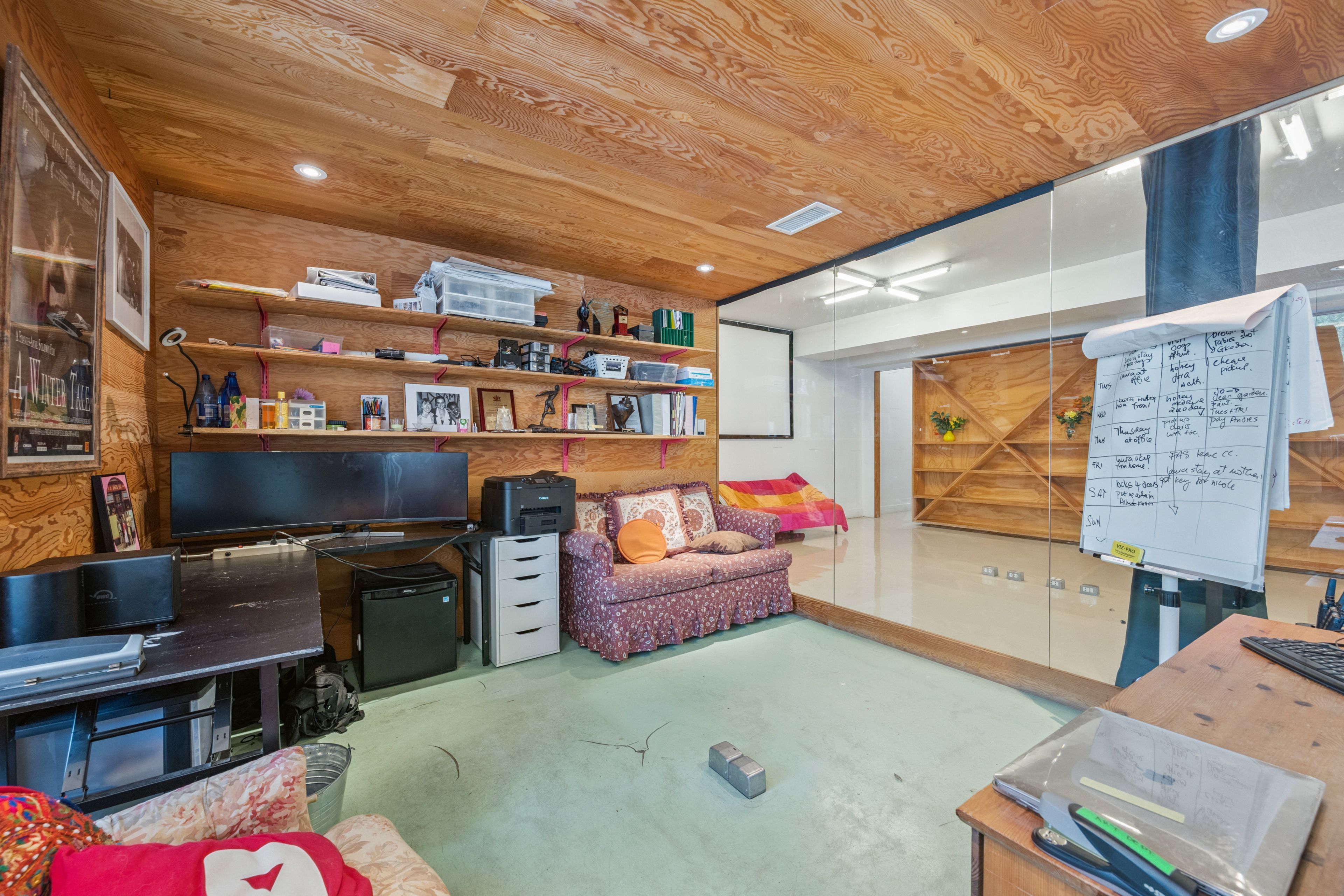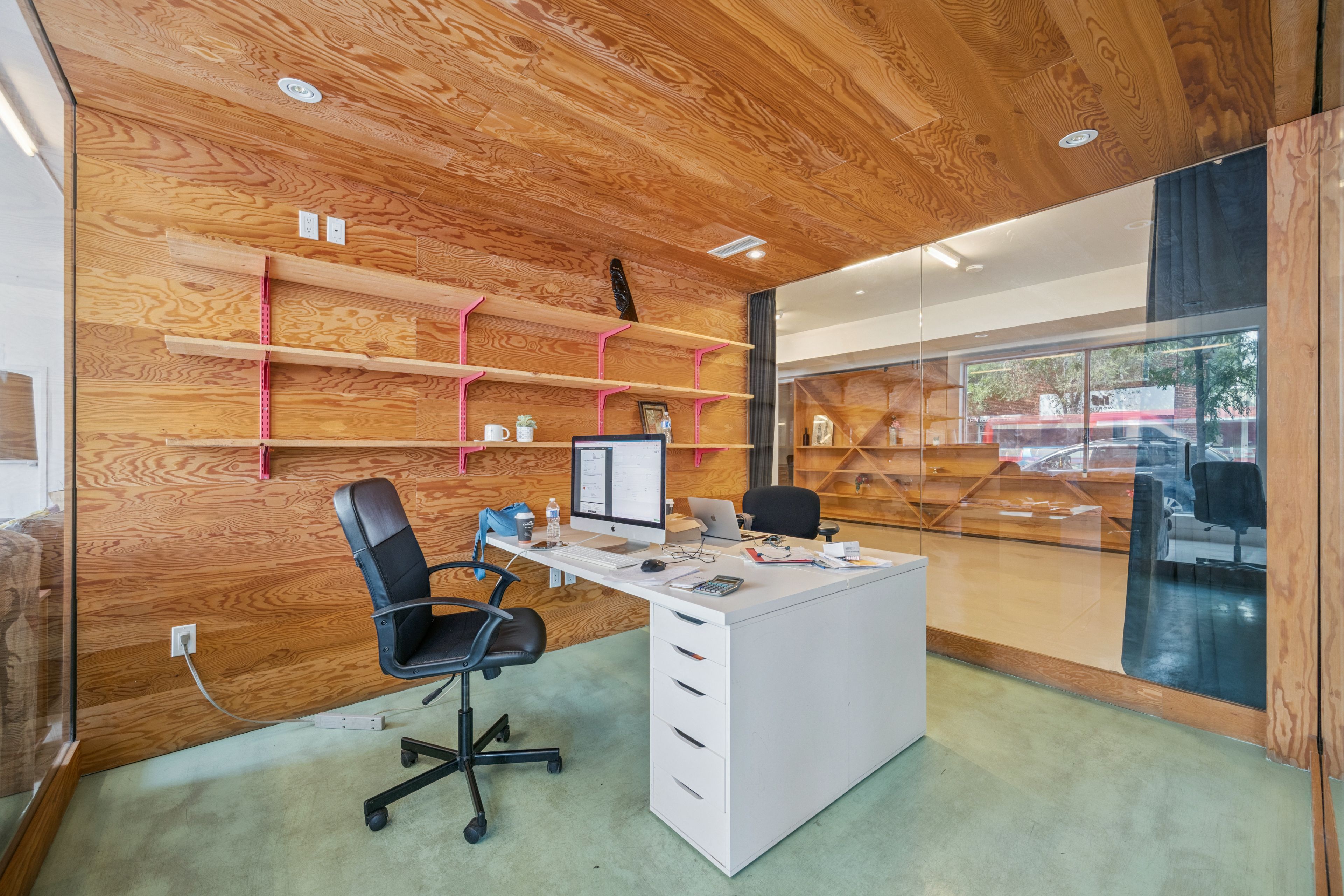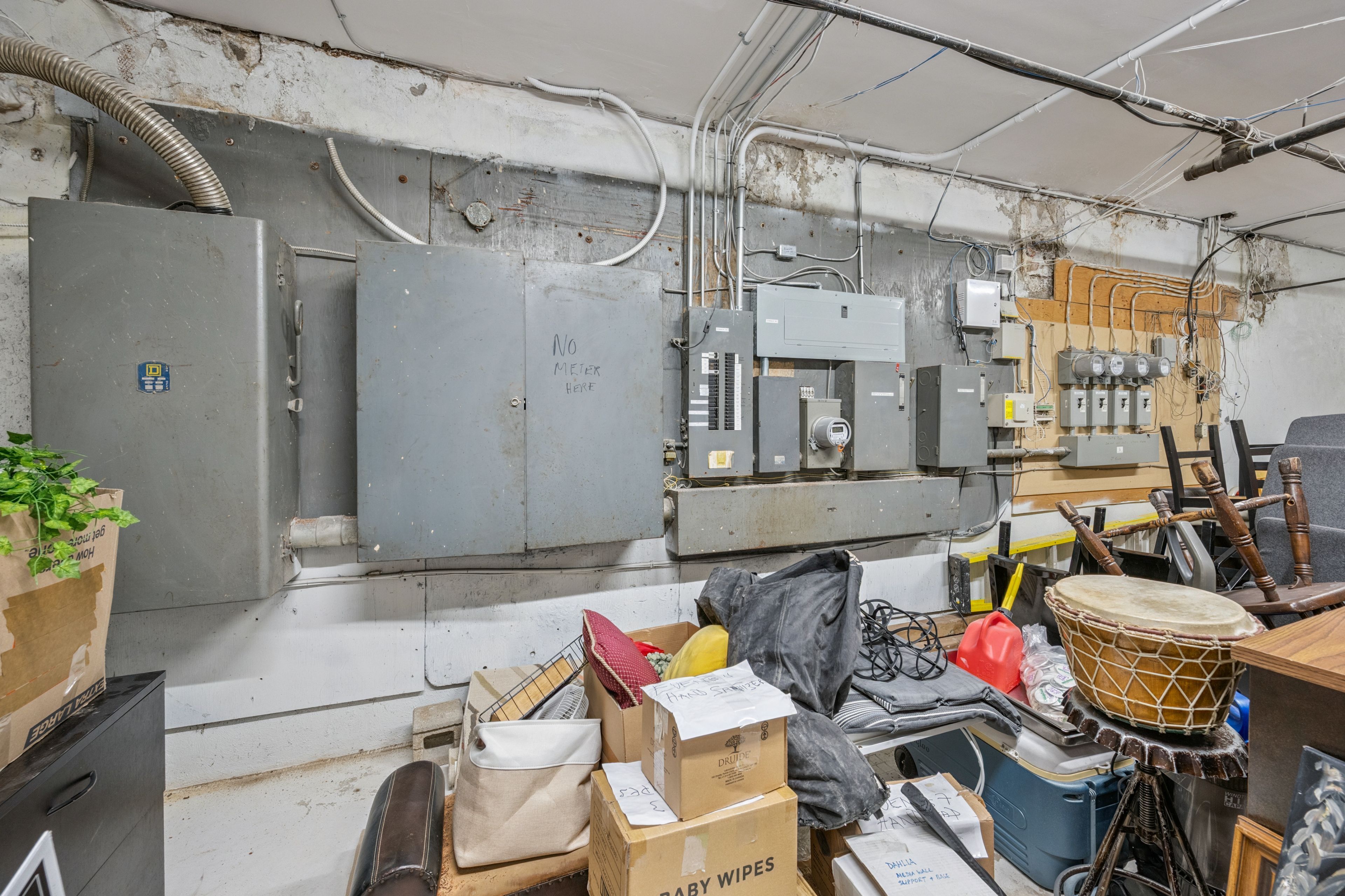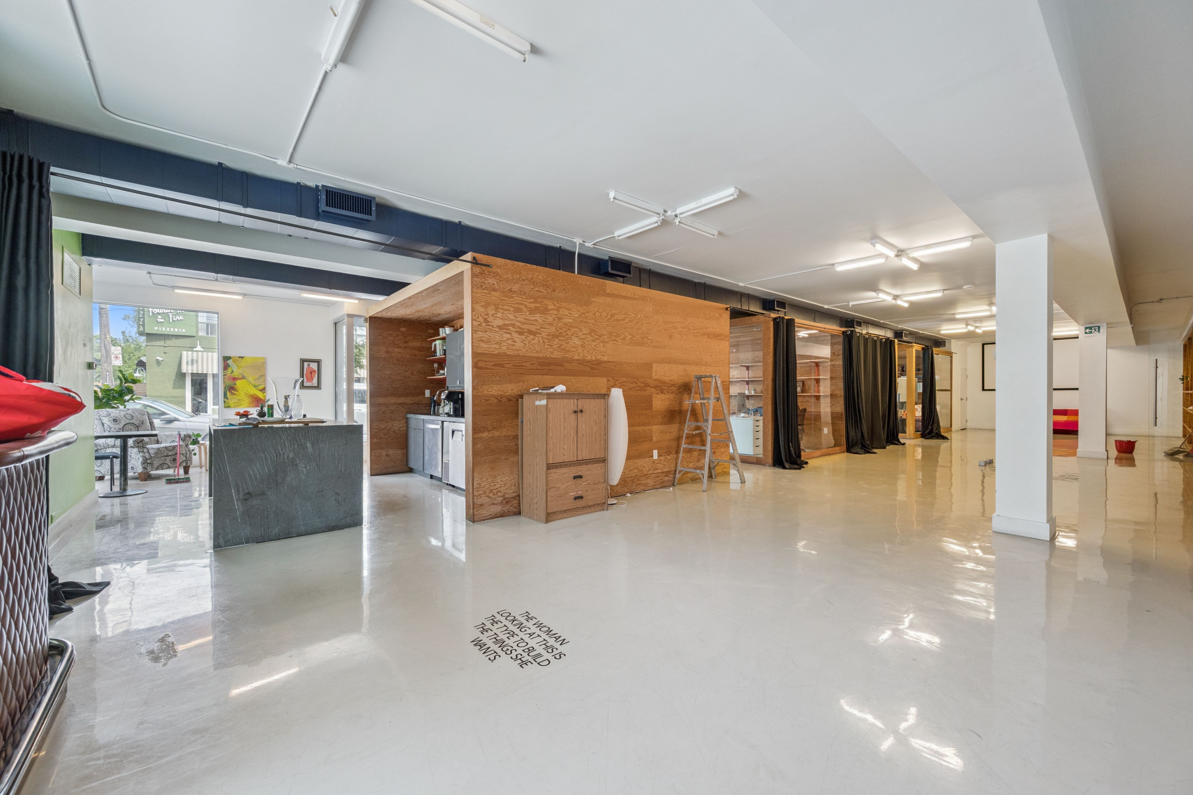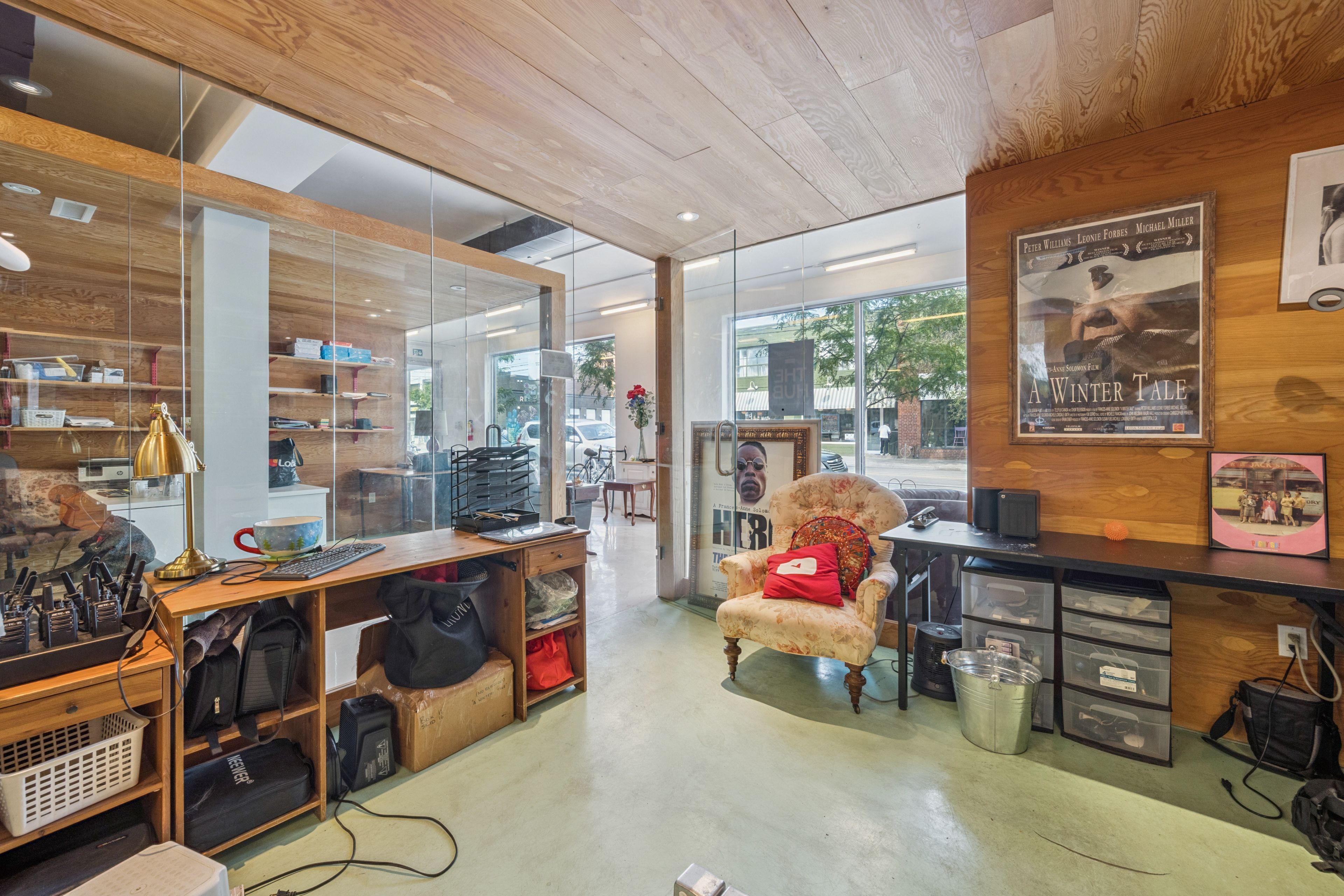 Corner lot building with 74 foot frontage. Bright interior suited for office or retail with spacious basement for storage or additional office space. Two side-boulevard parking spots. Prominent sign exposure.