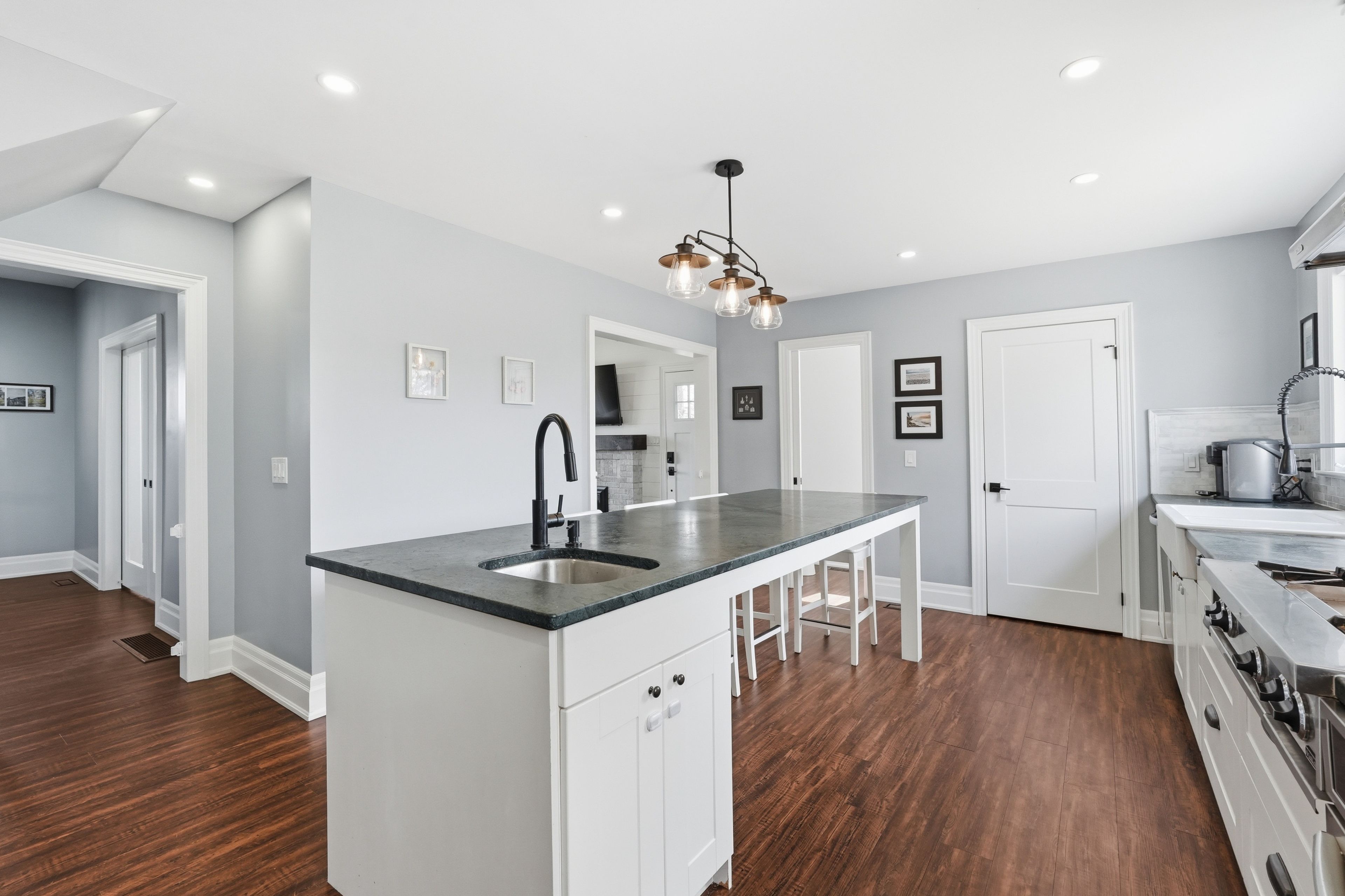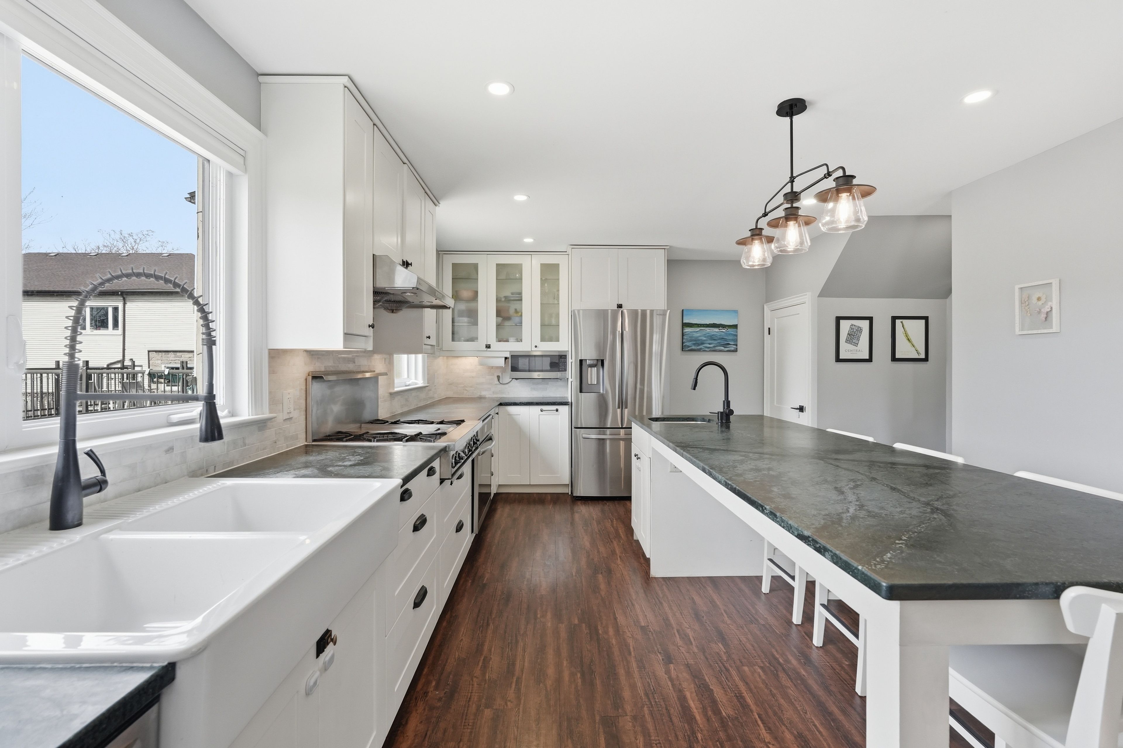 • Chef-inspired kitchen with upscale finishes and a large island for gatherings.