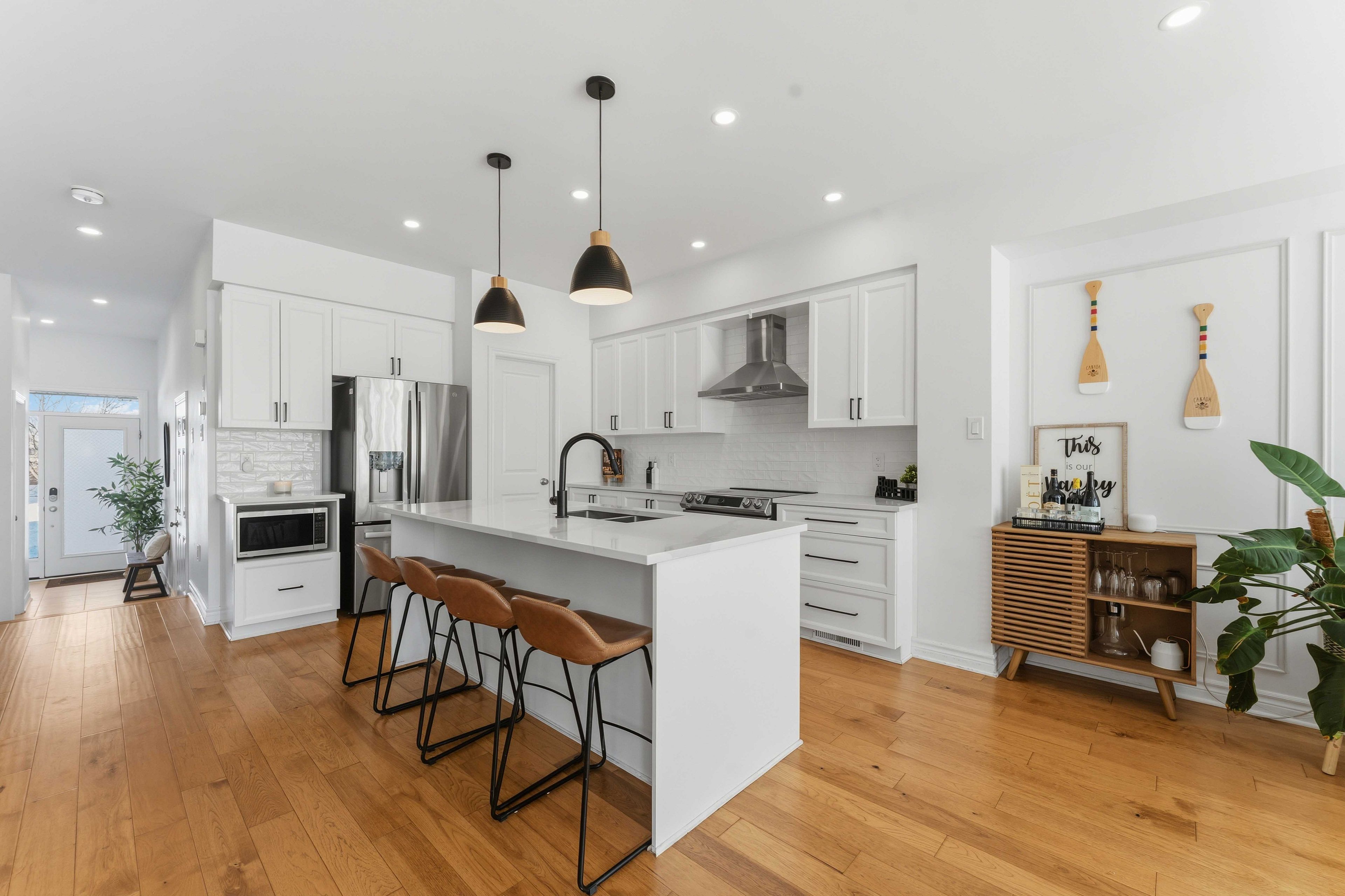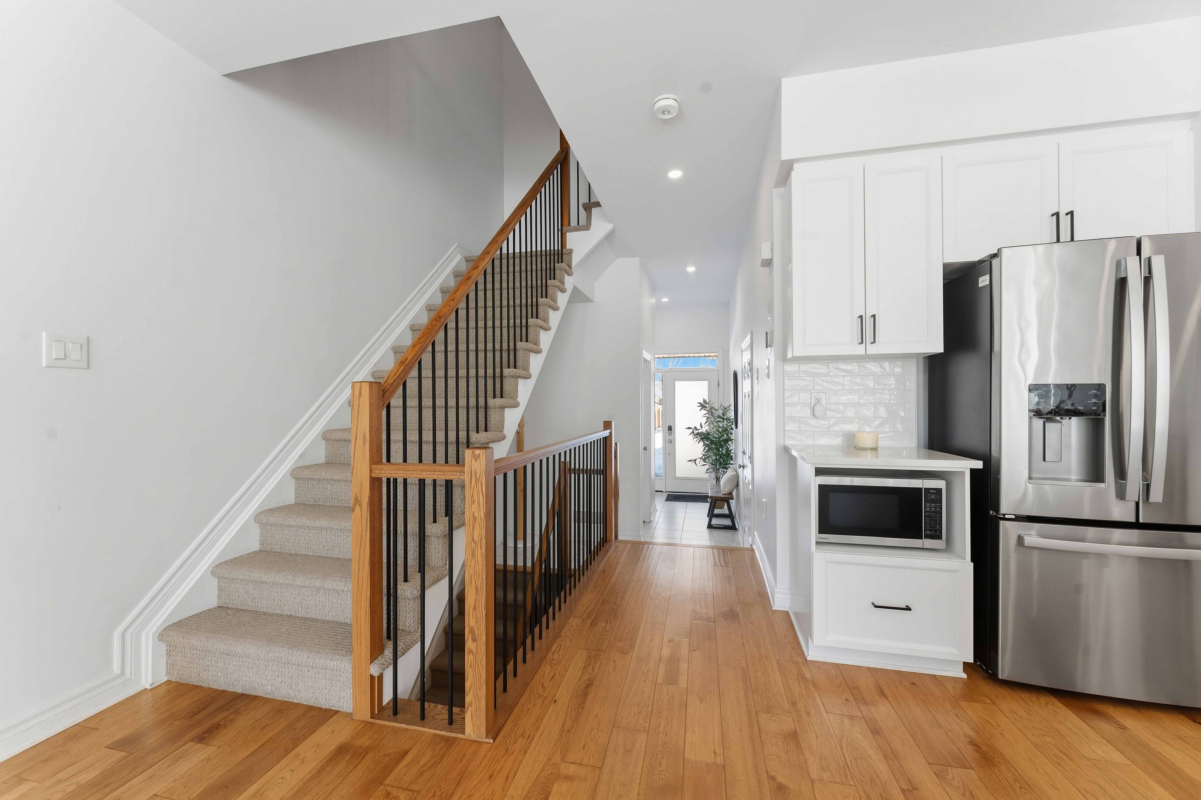 Welcome home!! A richcraft gorgeous 3bed, 2. 5 bath townhouse in the very desirable, family-oriented westwood/stittsville neighborhood offers the perfect blend of luxury & convenience. Hardwood flooring throughout the main level with large windows for a ton of natural light. The well-laid out kitchen provides ample storage, upgraded cabinetry + pantry. The 2nd level features an office nook, a large primary bedroom with a sizeable walk-in-closet, ensuite bath with glass standing shower. There are 2 additional spacious bedrooms; one of the rooms has a cheater door leading to the full bath, the convenient laundry room completes this level. The basement warmly invites you to a cozy fireplace, large family/rec room and huge storage areas. Unwind in the backyard or enjoy bbq with guests in your private outdoor space. This location offers access to top-rated schools, parks, shopping, and dining options. Your dream home awaits you!