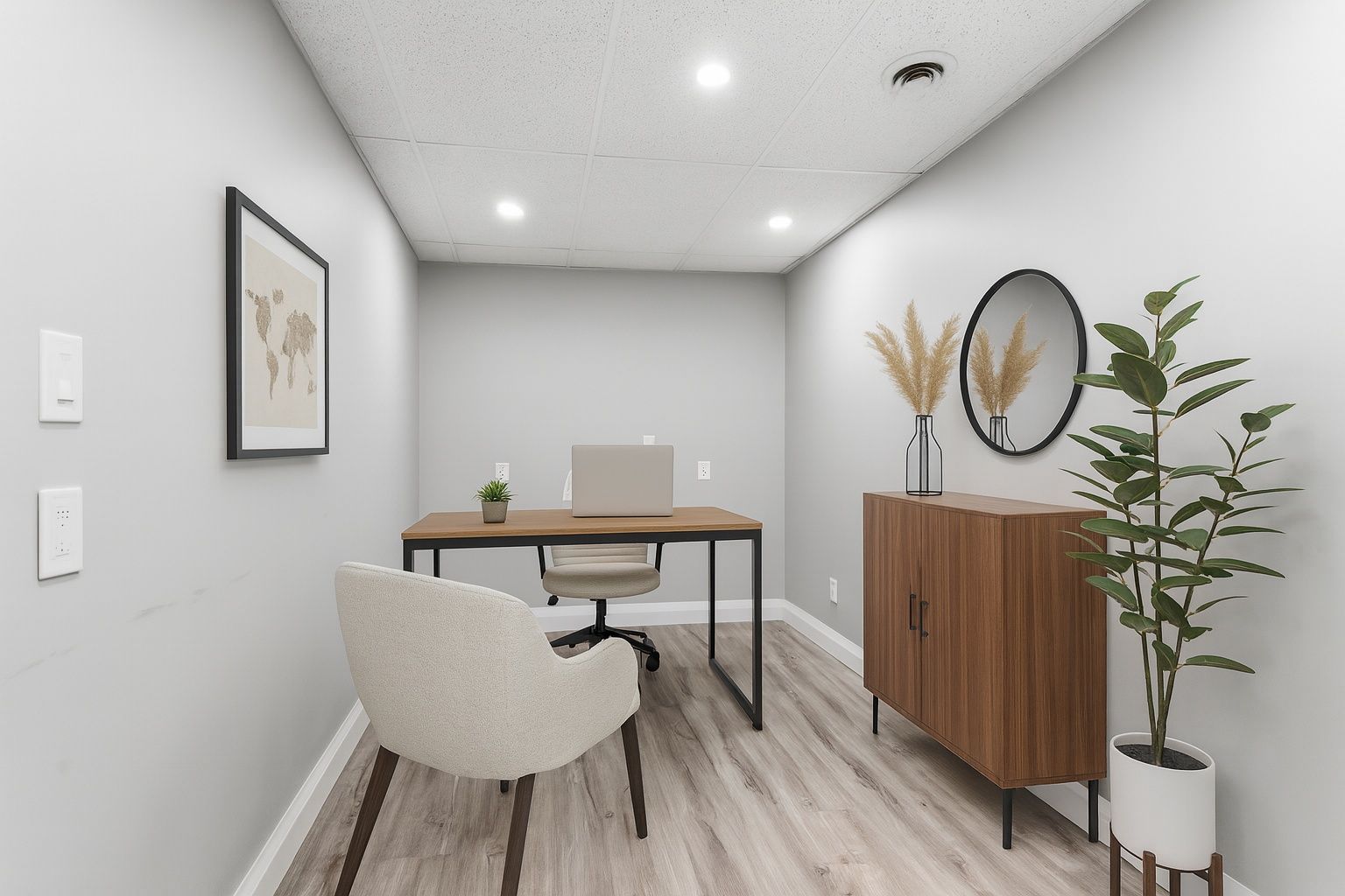 Discover a versatile 1,824 sq. Ft. Commercial unit perfectly designed for professional offices, medical, wellness, or service-based businesses. This thoughtfully laid-out space features a welcoming reception area with a large waiting room, five private offices, a convenient kitchenette, and three bathrooms for staff and client comfort. The space includes a dedicated 175 sq. Ft. Storage room which provides ample room for supplies, equipment, or inventory. Move-in ready and adaptable to a wide range of business types, this unit offers the ideal blend of function, comfort, and professional appeal-perfect for anyone launching a new venture or relocating their growing business.