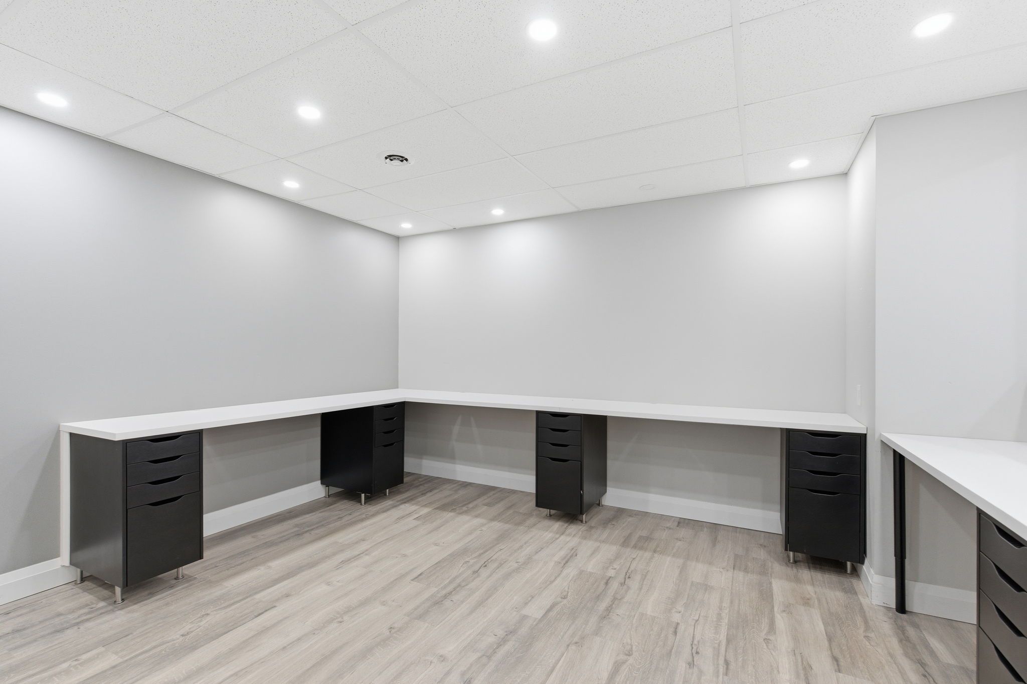 • Convenient kitchenette and three bathrooms enhance comfort for staff and clients.