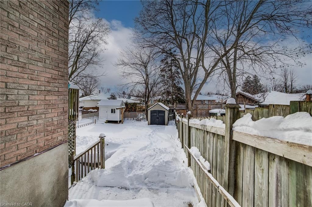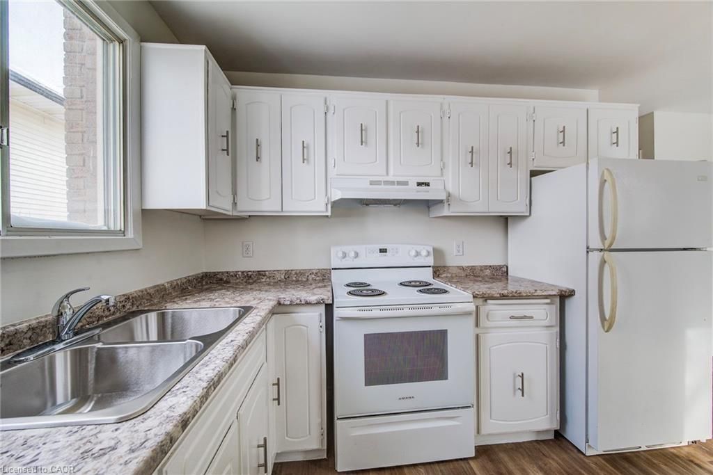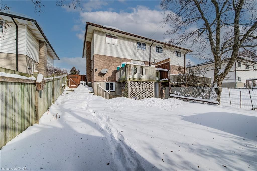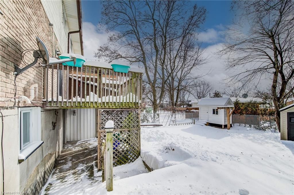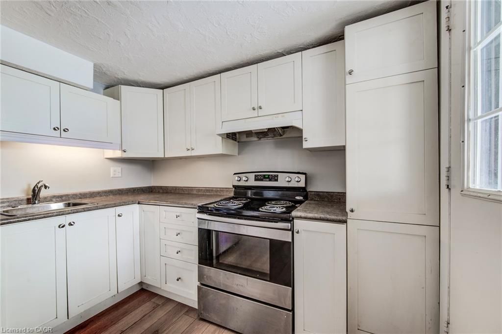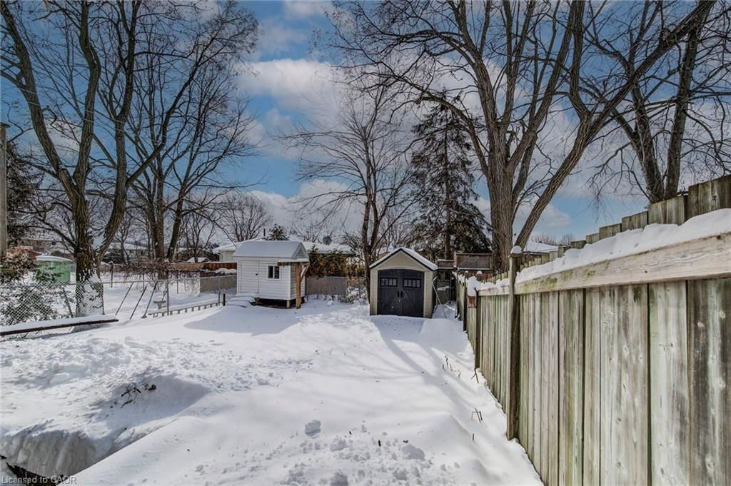 Offers anytime. Legal duplex. Walkout basement. Recently renovated. On the bus line. This legal duplex offers an excellent opportunity for investors or first-time buyers looking for a mortgage helper. This well-maintained property features two self-contained units with separate hydro meters and private in-suite laundry in both units. Unit 1 occupies the main and second floors and offers a spacious layout with 3 bedrooms, a 4-piece bath, 2-piece bath, and in-suite laundry. Enjoy walkout access to a rear deck, perfect for outdoor living and entertaining. Unit 2, located in the basement, includes 1 bedroom, a 3-piece bath, in-suite laundry, and a walkout to the backyard-ideal for tenant appeal or extended family living. The home sits on a deep, fully fenced lot surrounded by mature trees and includes a shed for additional storage. Parking is a breeze with a carport and driveway accommodating 3-4 vehicles. Notable updates include updated flooring and kitchen, a brand-new roof and eavestroughs (2019), and a new furnace and a/c (2022). Less than 10 minutes to fairview mall, hwy 401 and conestoga college. A solid, turn-key investment in a desirable setting with strong income potential-this is a property you don't want to miss.