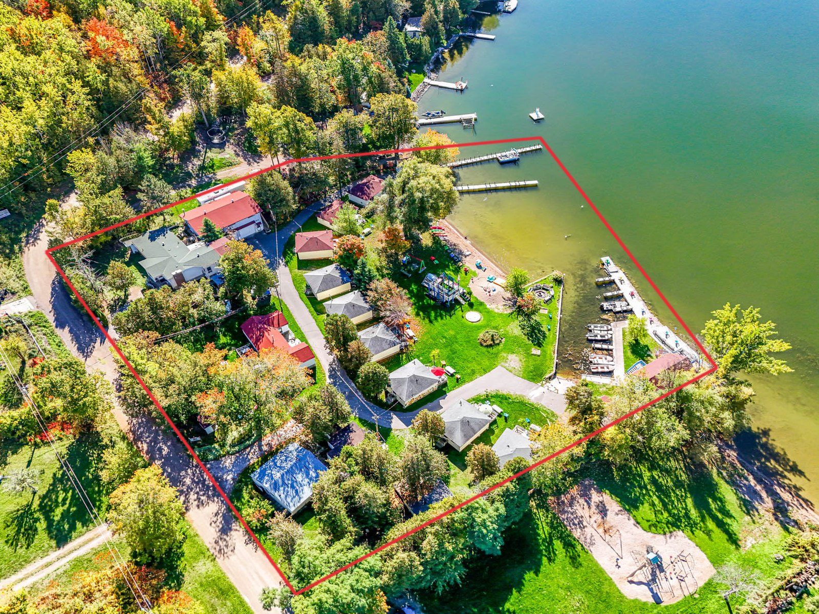 • Amenities include boat docks, playground, and recreational facilities.