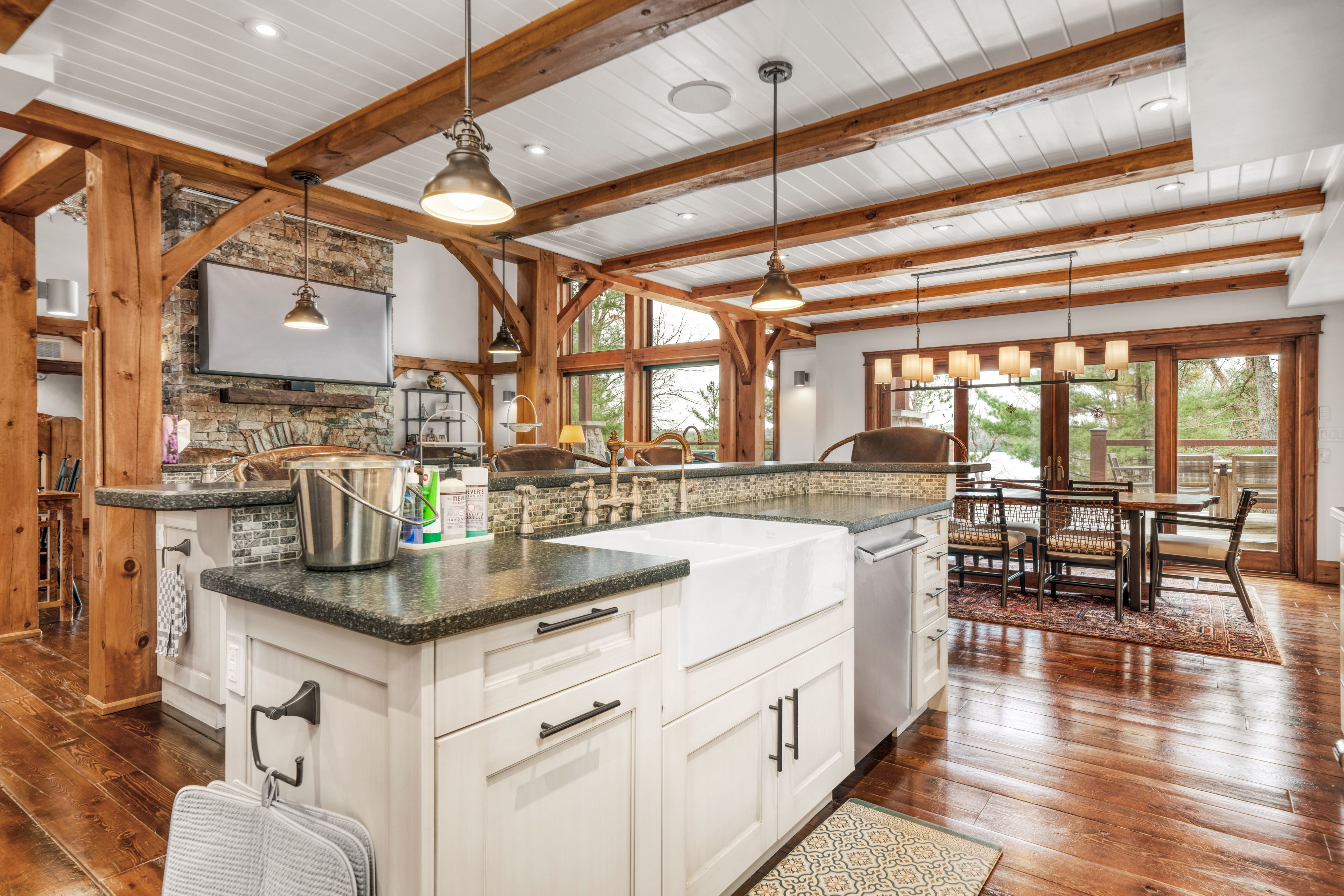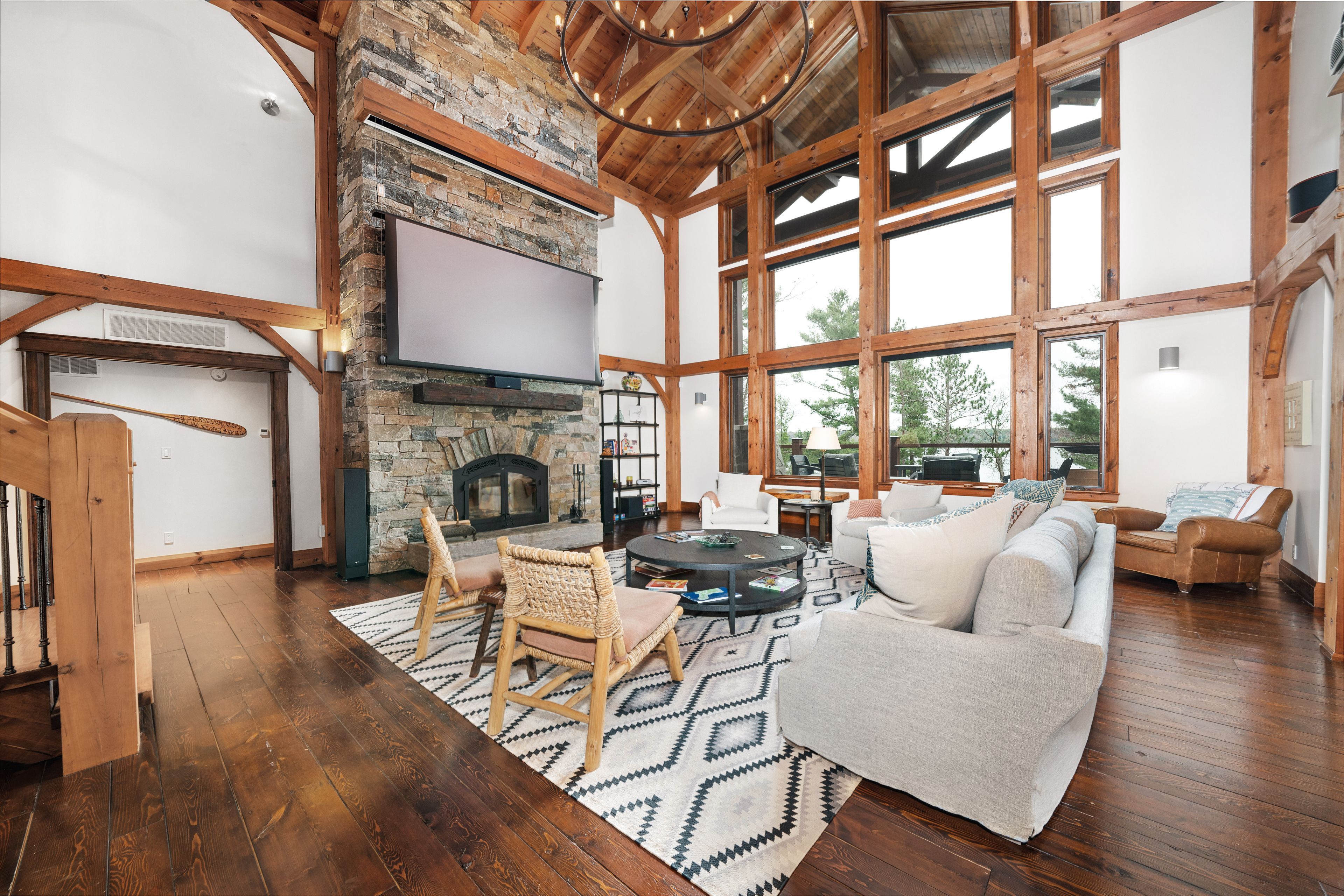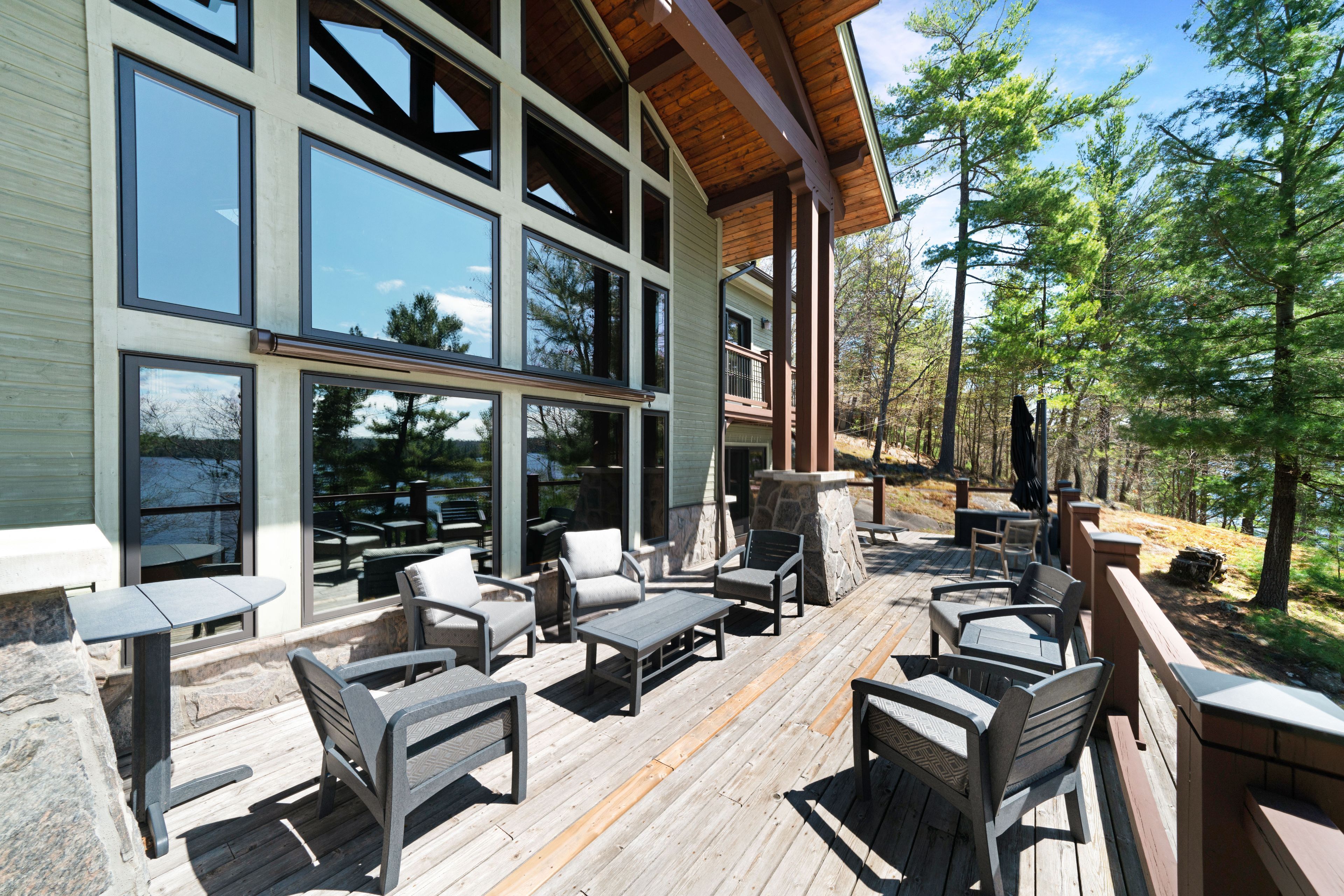 Experience the pinnacle of island living on bigwin island. Included with this property is immediate access and membership to the prestigious bigwin island golf club that currently has a multi year wait list. This custom timber frame lake home, nestled amidst 235 feet of pristine water frontage, offers 4,288 square feet of luxurious living space with 5 bedrooms and 6 bathrooms. Soaring ceilings in the main living space with a wall of windows and private balconies from the upstairs bedrooms frame the views of pristine lake of bays. The walk-out primary level leads to a large covered deck, perfect for outdoor dining and entertaining while gazing at big lake views. A private dock with deep water access awaits outdoor enthusiasts, complemented by a coveted southern exposure. Enjoy modern comforts such as geothermal and radiant in-floor heating, ensuring year-round efficiency and comfort. A detached garage features a finished loft space, ideal for guest accommodations or a private home office. Bigwin island amenities are unparalleled, offering ferry service and a range of concierge services from dock-to-dock shuttle to boat valet. Indulge in resort-style activities, including fine dining, tennis and pickle ball courts, as well as a championship golf course. This is a rare opportunity to own a slice of paradise in muskoka's most prestigious enclave. Schedule a private viewing to experience this exceptional property firsthand. Come and get it!