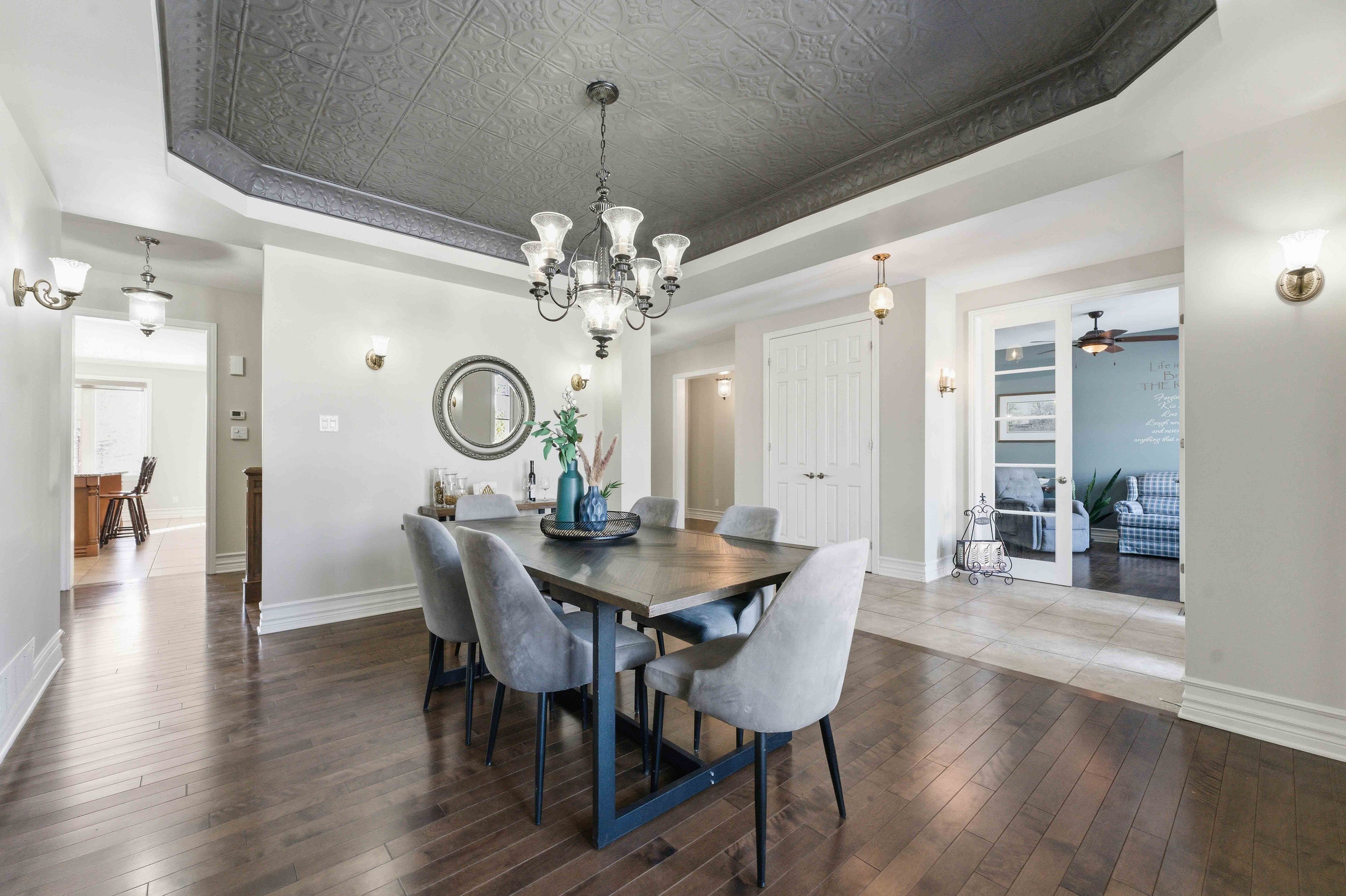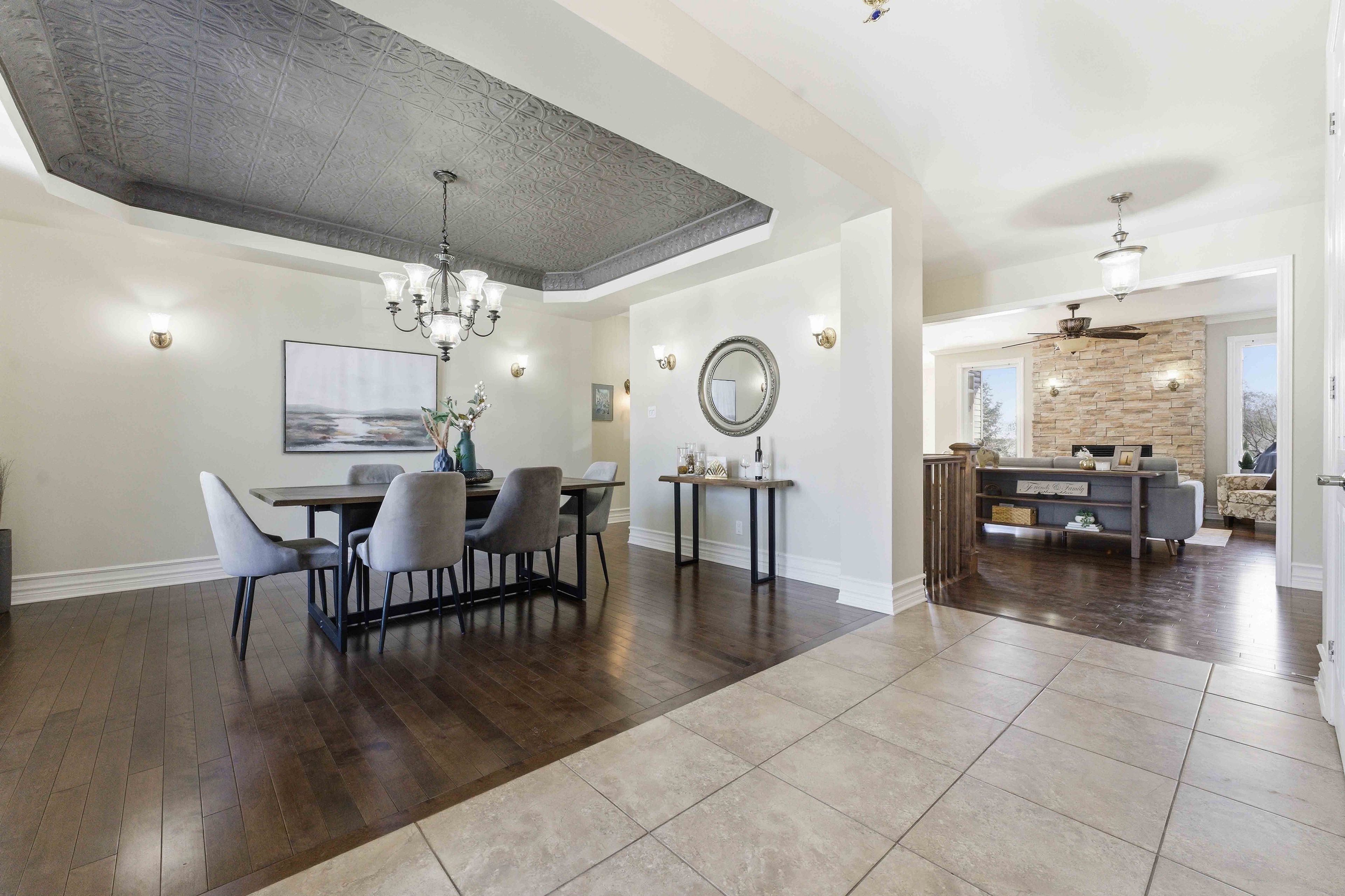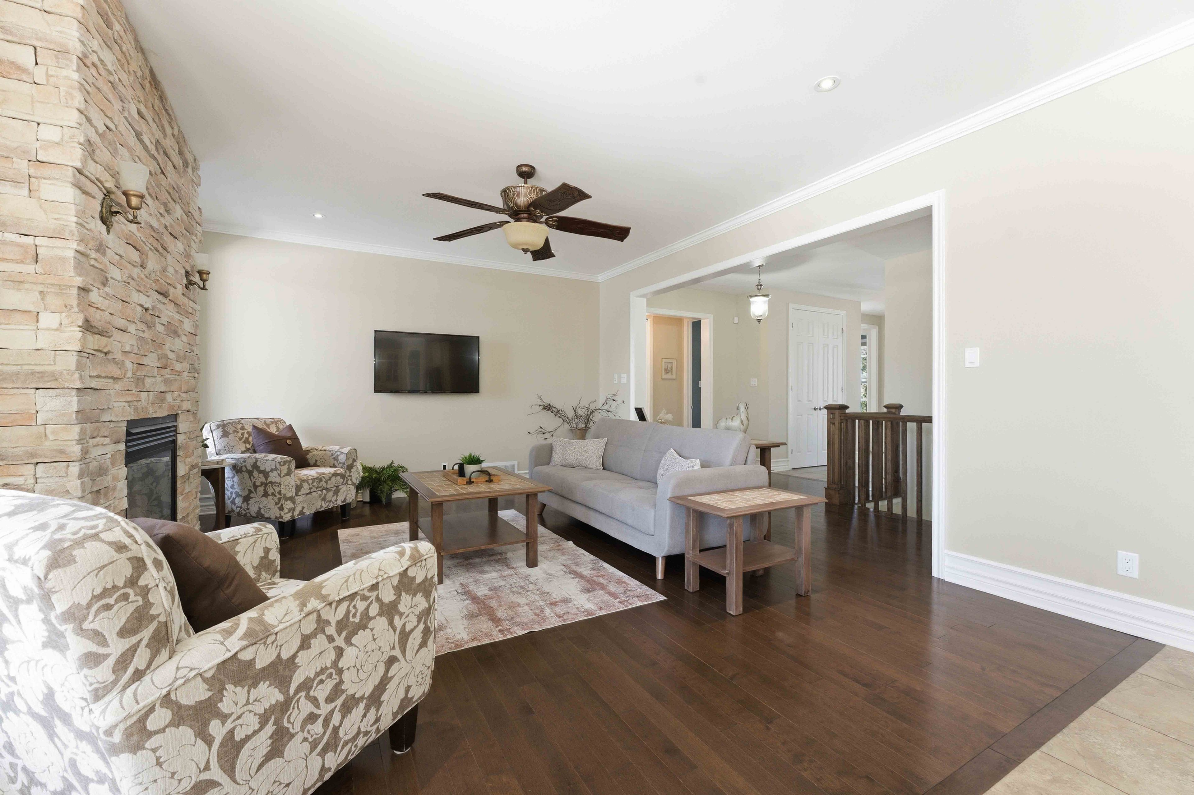 Welcome to this beautiful custom built bungalow in the sought-after richmond forest community of richmond. This stunning 3-bedroom, 3-bath home offers elegant living with hardwood flooring throughout the main level and an abundance of large windows that fill the space with natural light. The luxurious kitchen is a true showpiece, featuring a large centre island with upgraded granite countertops, laurysen colonial-style cabinetry, and a generous pantry - perfect for both everyday living and entertaining. The inviting living room boasts a striking cultured stone façade gas fireplace, while the dining room that showcases a stylish cove ceiling for added architectural charm. The primary bedroom retreat offers a walk-in closet and a luxurious 4-piece ensuite complete with a freestanding soaker tub - your own private oasis. The lower level provides incredible potential with a massive partially finished area ready for your personal finish choices, along with a completed 3-piece bathroom and dedicated storage/utility space. Step outside to a private backyard designed for entertaining and relaxing outdoors, and is complete with an oversized 2 car garage with mudroom access. With over $50,000 in upgrades including pot lighting, granite surfaces, built-in audio system, irrigation system, backup generator and more - this home offers exceptional value and quality throughout. A perfect blend of comfort, style, and opportunity - don't miss it!