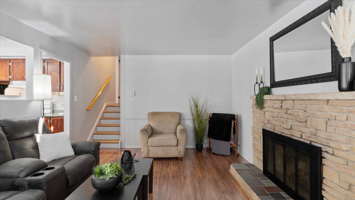 • Bright open main level with a functional kitchen and cozy fireplace.