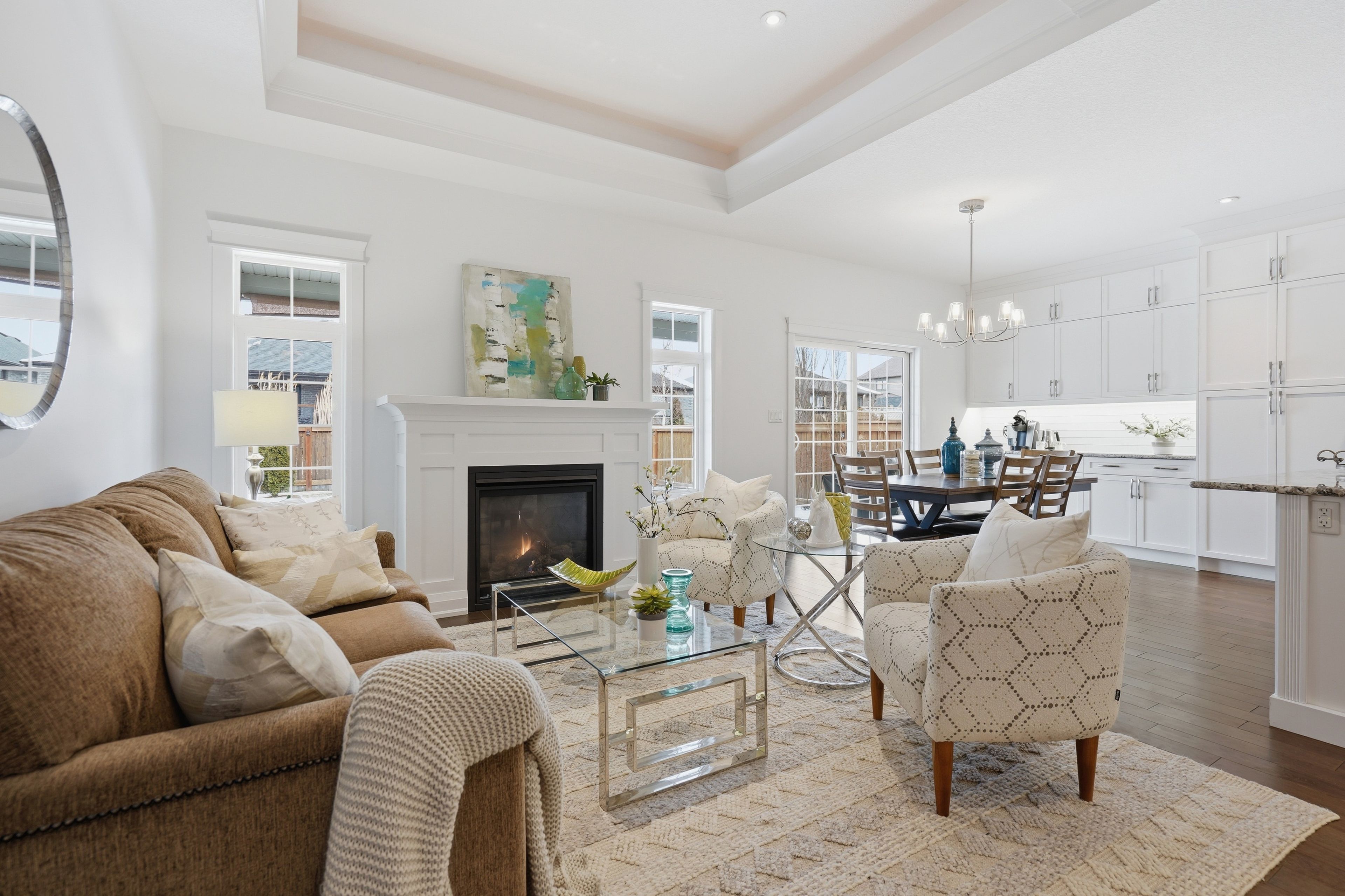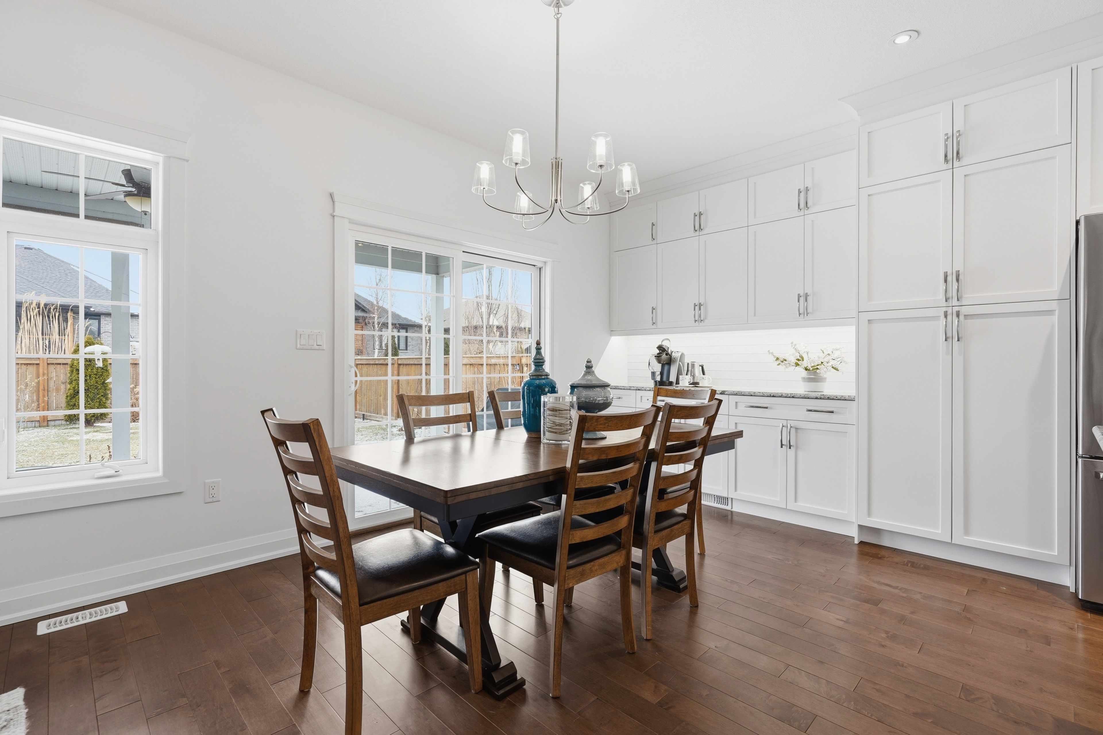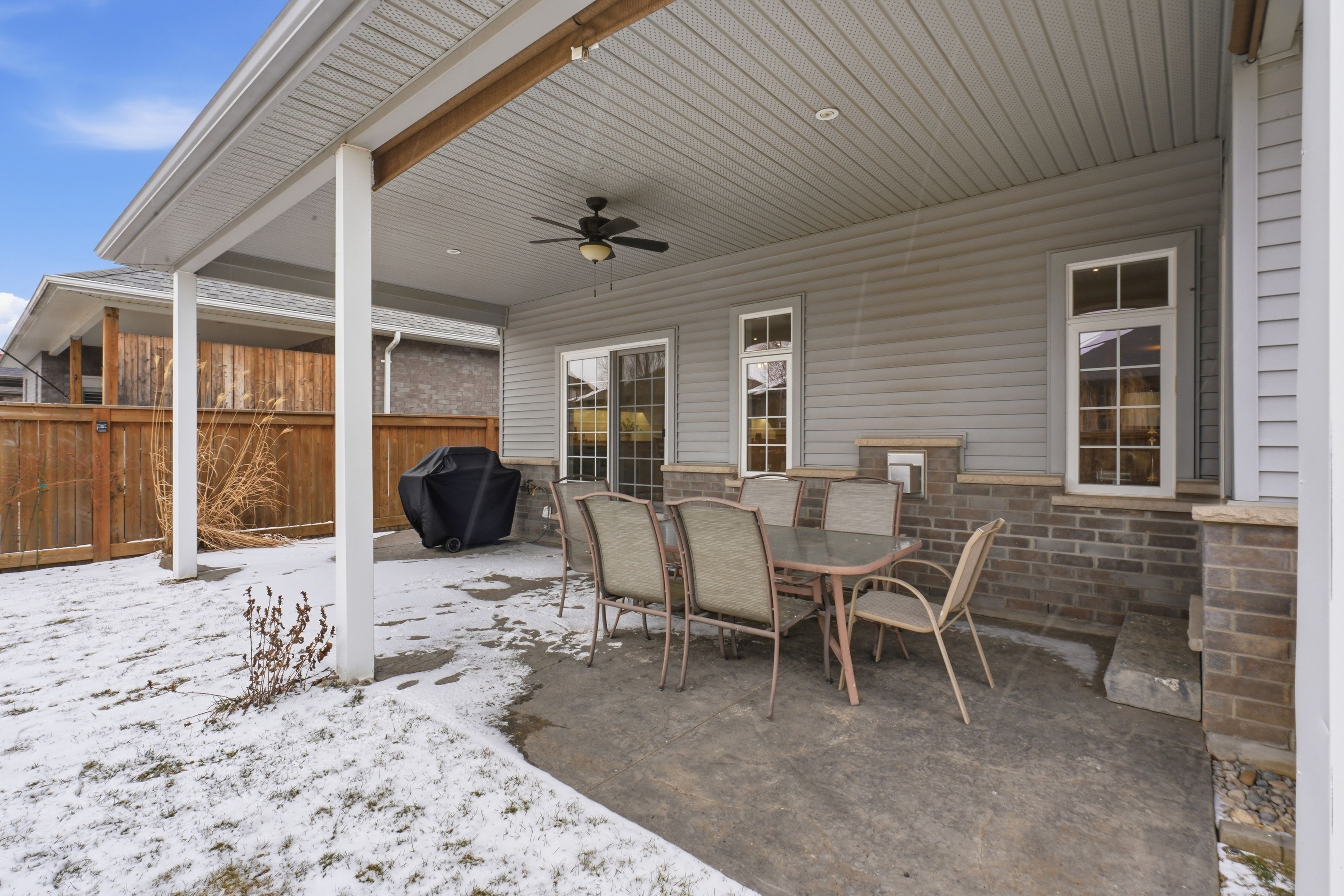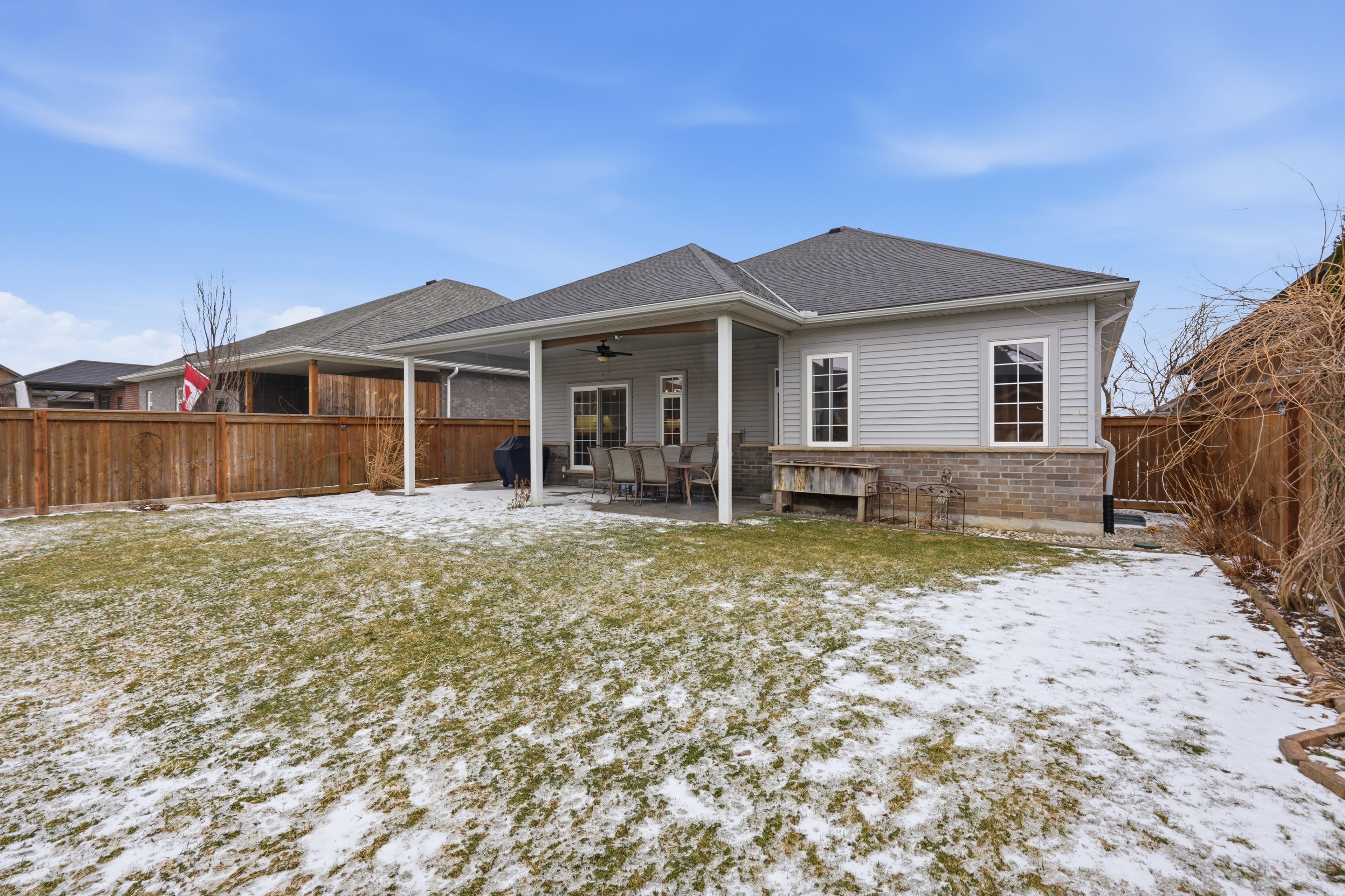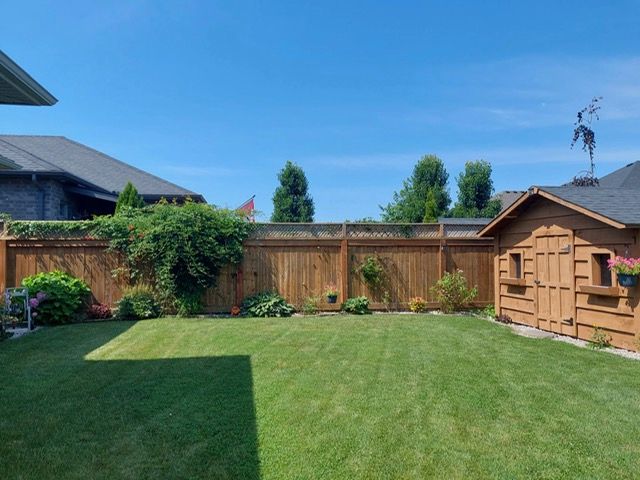 Nestled in the sought-after southgrove meadows community beside caradoc sands golf course, this stunning 2+2 bedroom bungalow with a double-car garage offers the perfect blend of luxury, comfort, and convenience. A charming covered front porch welcomes you into a bright, elegant interior featuring soaring ceilings and rich hardwood flooring throughout the main level. The open-concept layout showcases a beautiful living room with a tray ceiling, ambient lighting, and a cozy gas fireplace, flowing seamlessly into the dining area with patio doors leading to a fully fenced backyard. This outdoor oasis includes a ceiling fan, lighting, pull-down shades for added comfort, and a gas line ready for your bbq or firepit. A stamped concrete walkway connects to the front and side garage entrance. The backyard is a gardener's dream-beautifully landscaped with perennials, shrubs, and trees-plus an 8' x 12' garden shed with loft storage for all your tools and equipment. The in-ground sand point and automatic sprinkler system keep the lawn and gardens lush all summer long. The gourmet kitchen is a chef's dream, featuring gorgeous granite countertops, abundant cupboard space, a dedicated coffee bar, a central island with breakfast bar seating, and premium high-end appliances. The adjacent laundry room provides generous storage and direct access to the double-car garage, equipped with two 220-volt plugs for electric vehicle charging. The fully finished lower level offers exceptional versatility, including a massive family room with a stunning fireplace, pre wired speakers for full surround sound, and a bar area as well as two additional spacious bedrooms, a third full bathroom with granite finishes -ideal as a potential in-law suite. Plus a large utility room, and abundant extra storage. Located just minutes from shopping, dining, schools, and highway 402- 20 minutes to london and 30 minutes to sarnia, it offers the best of small-town charm with big-city accessibility.