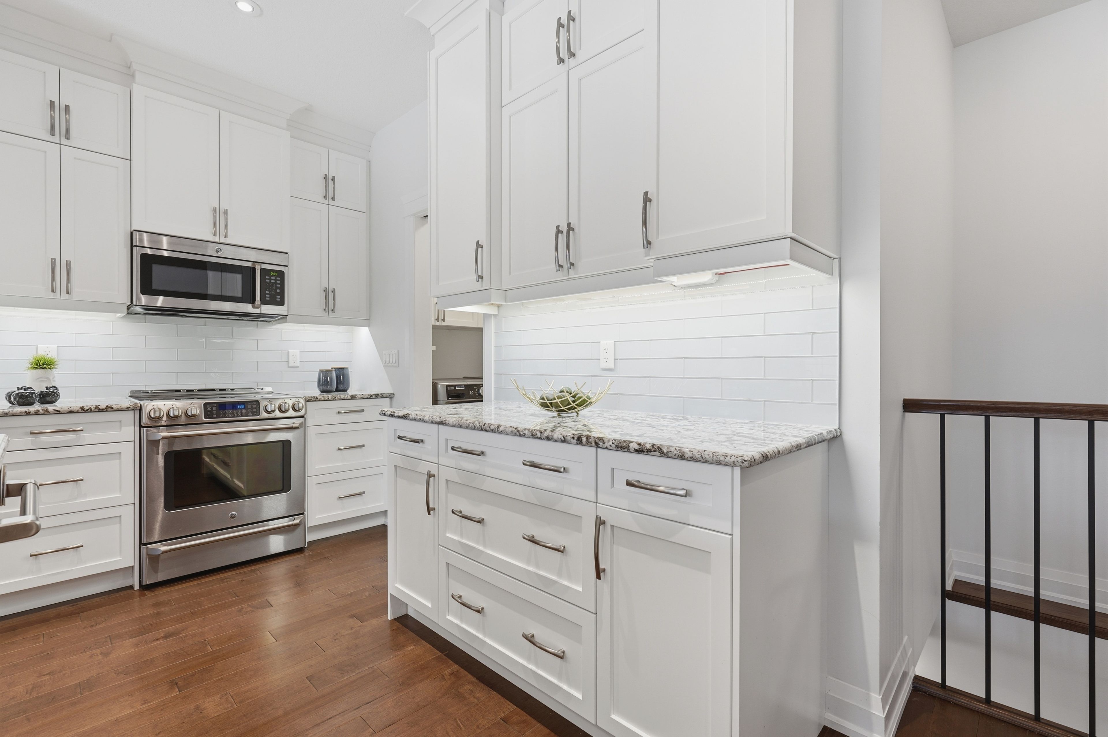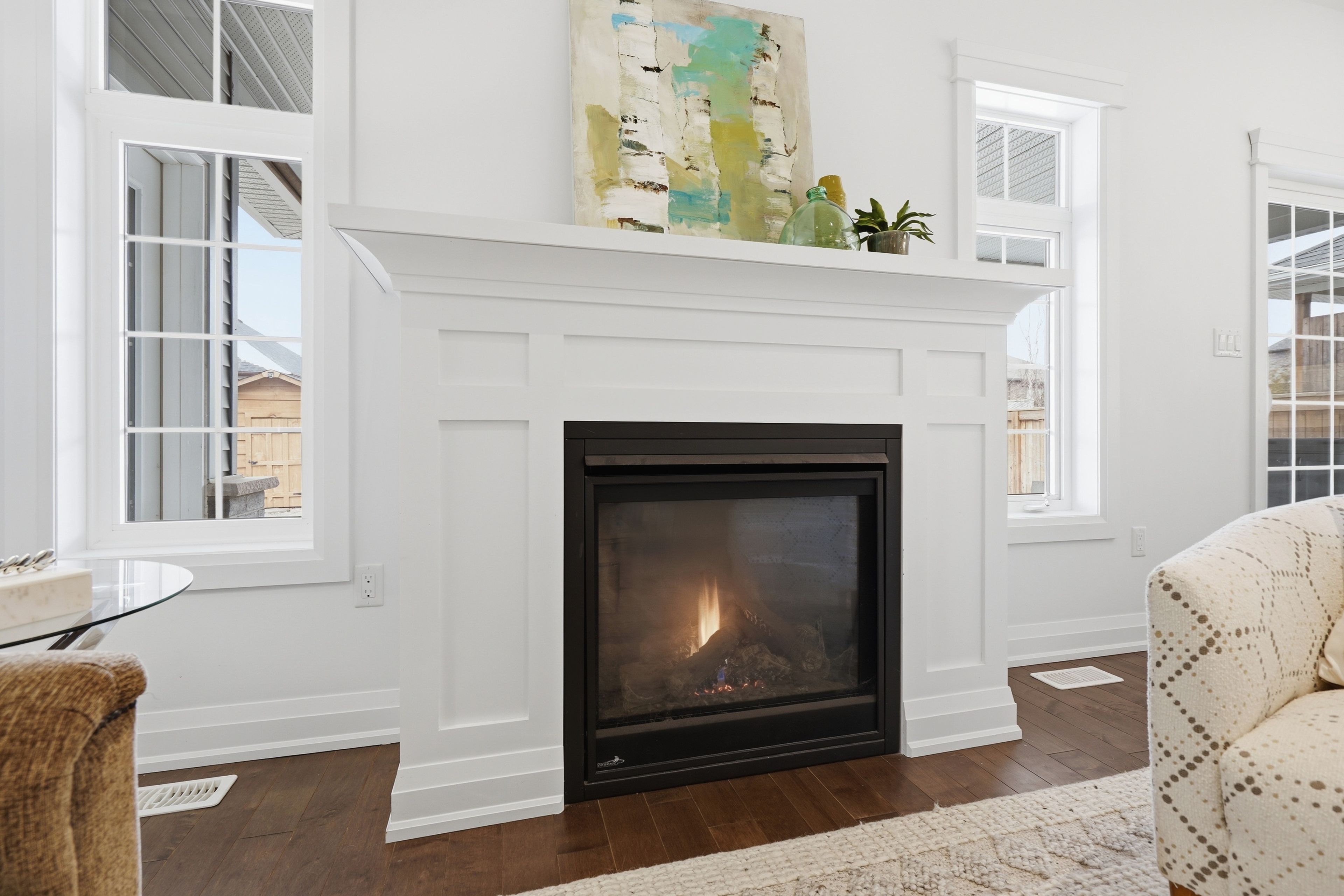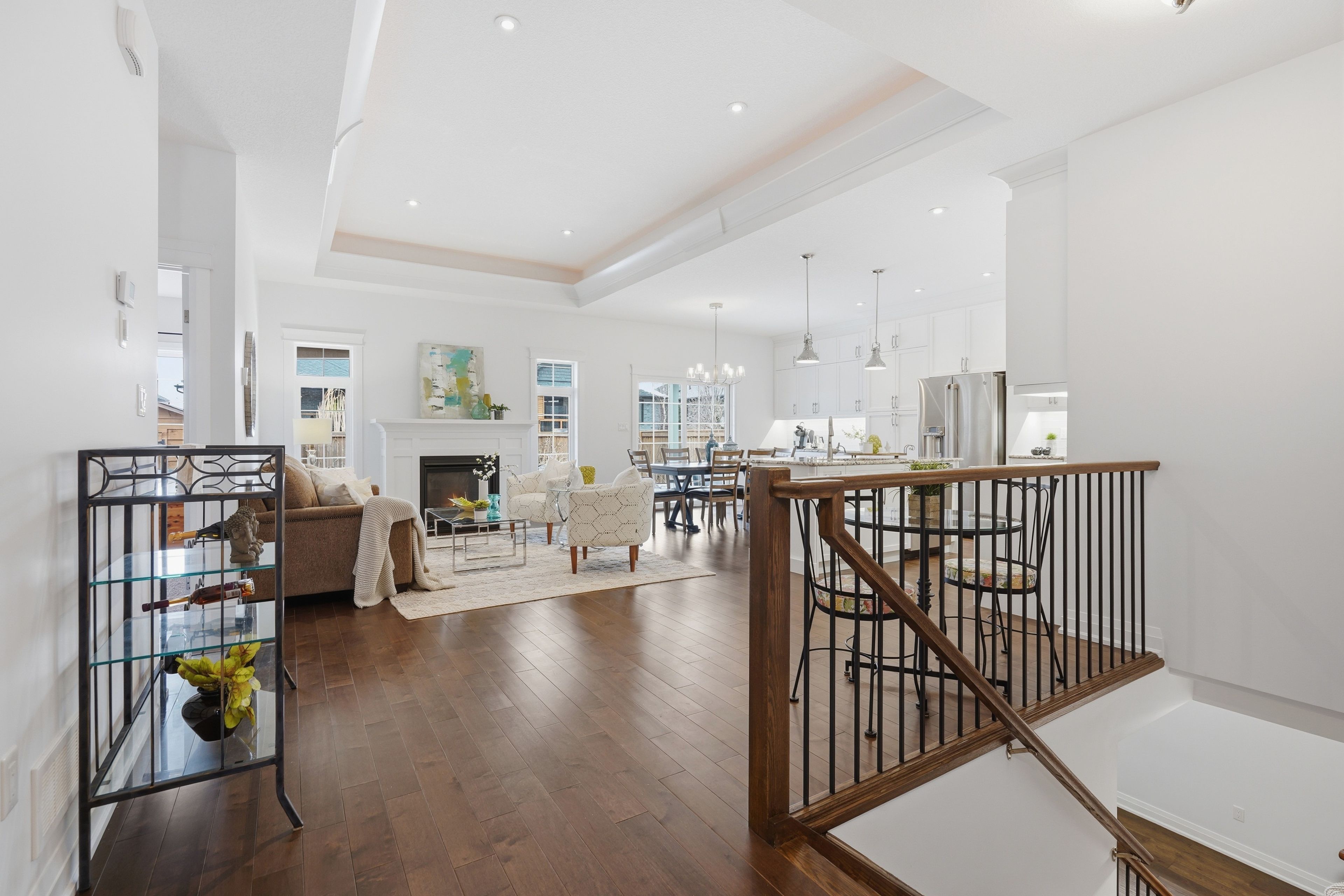 • Bright interior with high ceilings and rich hardwood flooring throughout.