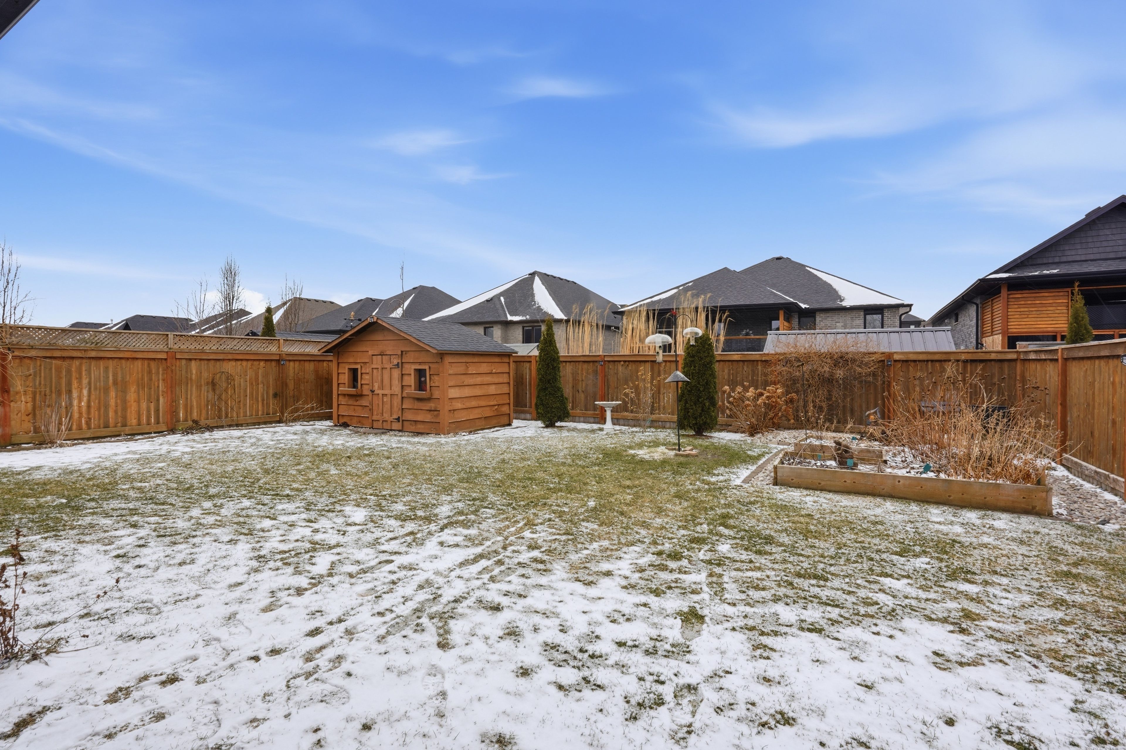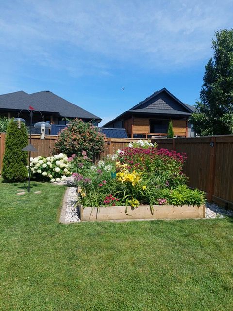 • Beautifully landscaped backyard oasis with gardening features and outdoor comfort.