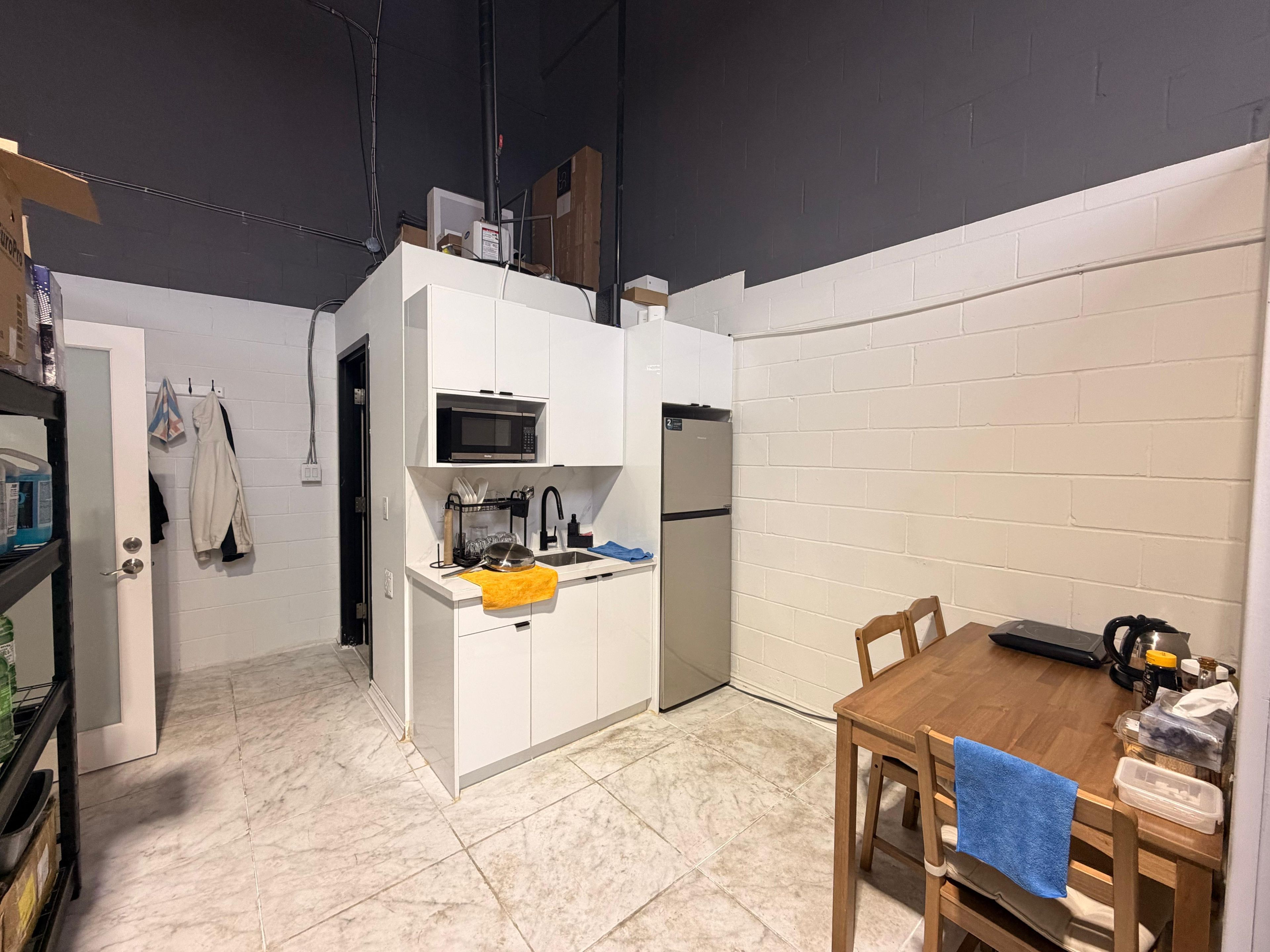 Location location location . Turnkey industrial unit ideal for automotive uses including carwrapping, window tinting, detailing, and customization. Freshly renovated approx. 1,800 sf withno expense spared. Features include 19'8" ceiling height, 18' clear height, private entrancesfrom north and south sides, 36" entrance doors, and 10'4" wide x 11'9" high garage door foreasy vehicle access. Finished with epoxy flooring, black ceilings, 2 large skylights, and largetransom window providing excellent natural light. Includes kitchenette with fridge andmicrowave, gas unit heater with thermostat, point-of-use hot water tank, bathroom, floor drain,and 100-amp electrical panel and very nice office and customer waiting area . Separate gas andhydro meters. Kitchenette. 2 assigned parking spots. Excellent location minutes to dvp, 401,and 404. Tenant pays gas and hydro. Now the gross rent is $5424 .