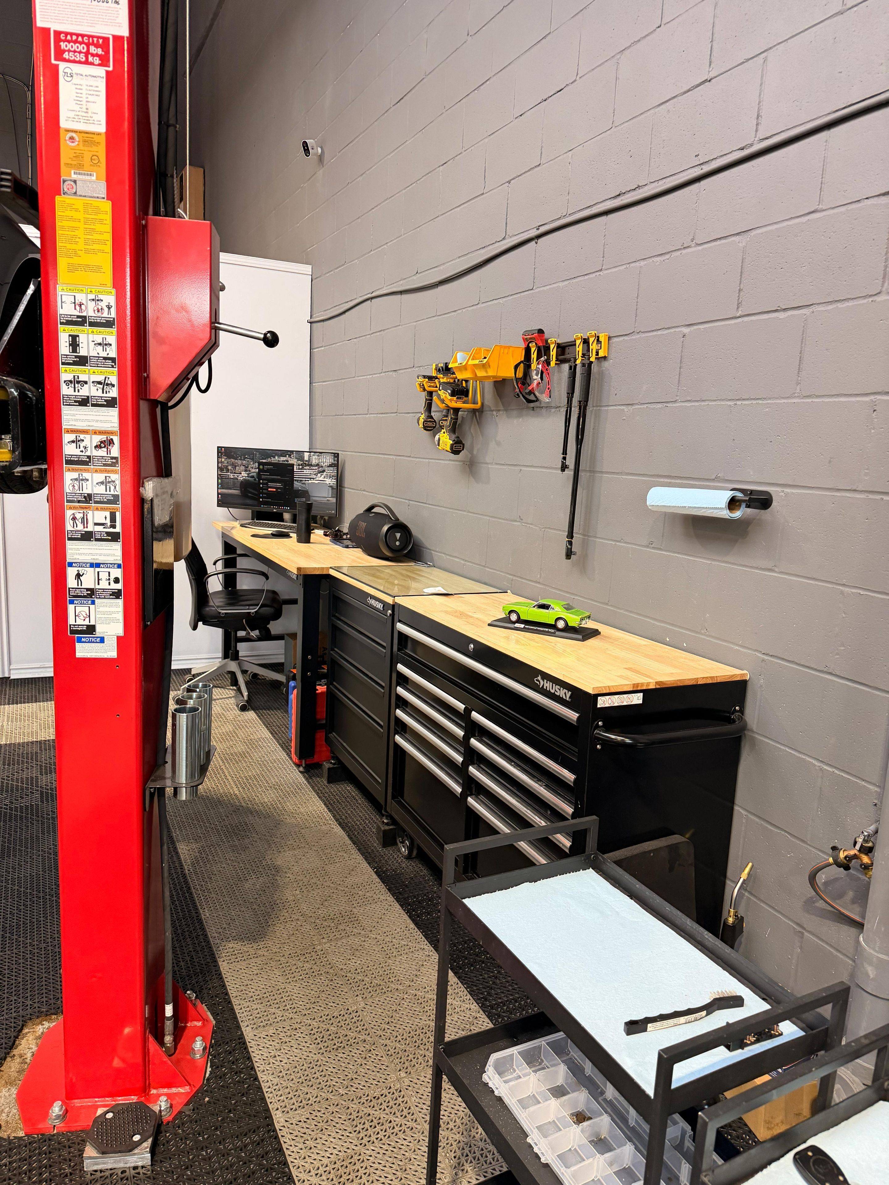 • Turnkey industrial unit ready for automotive uses like detailing and customization.