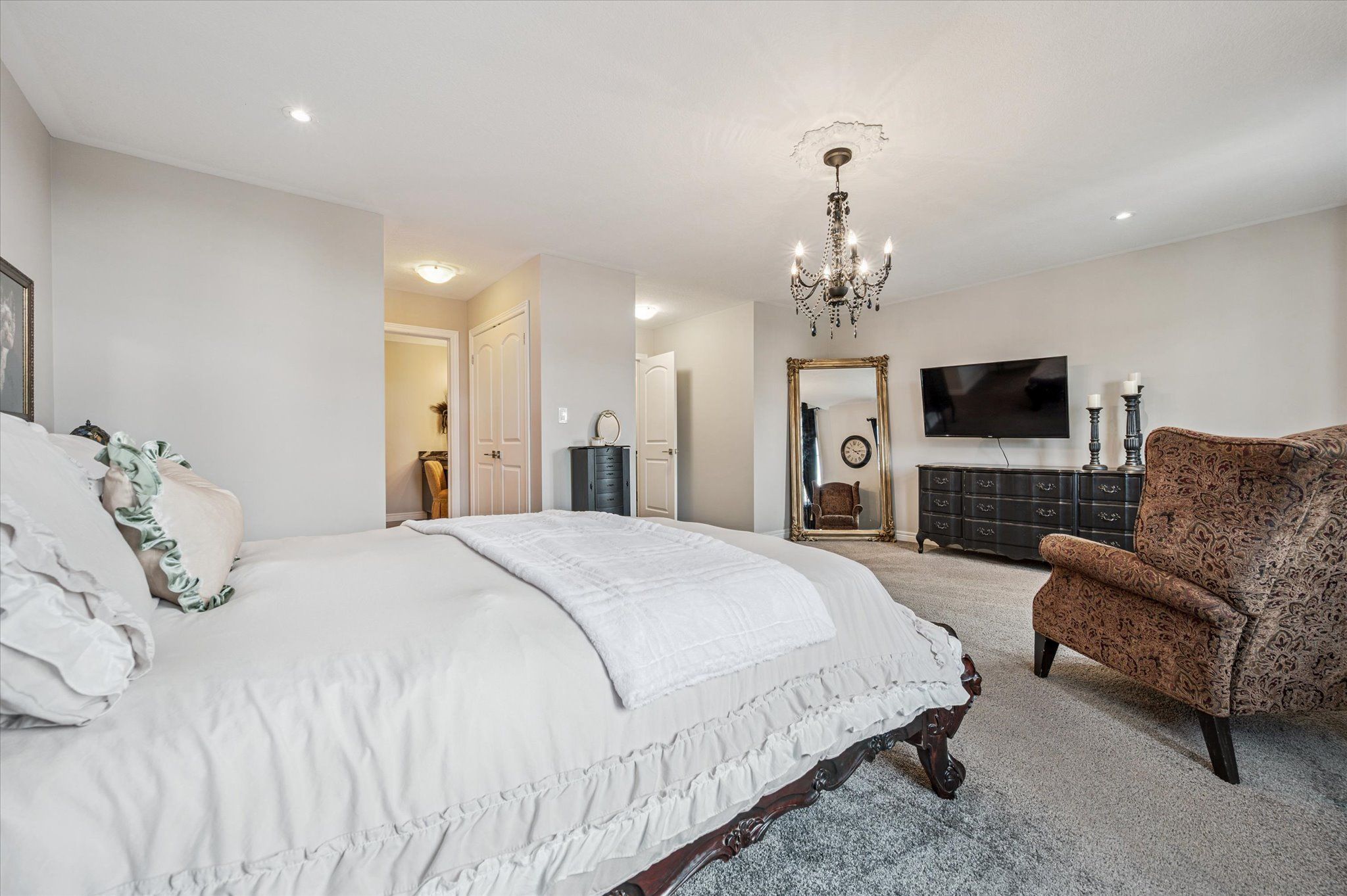 • Impressive primary suite with cathedral ceiling and walk-in closet.