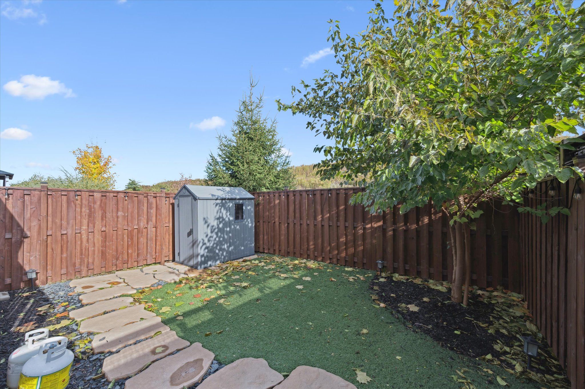 • Spacious walkout deck with a landscaped backyard and low-maintenance turf.