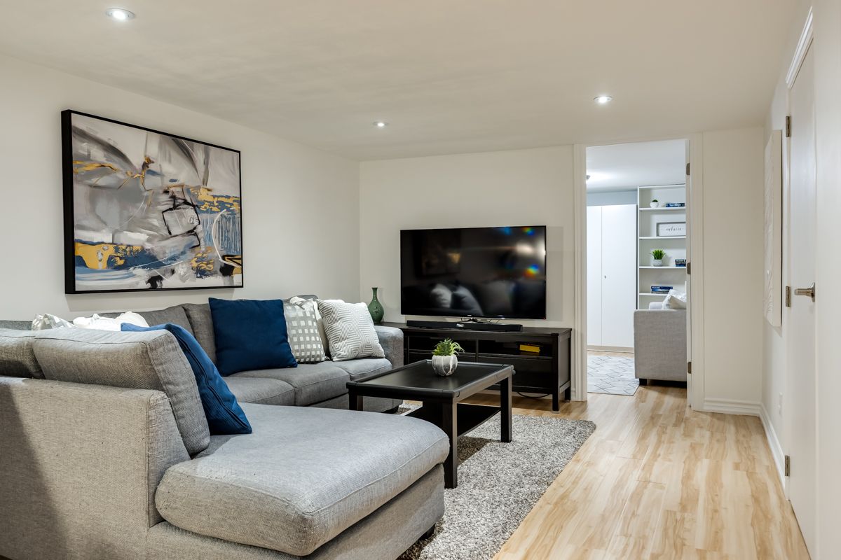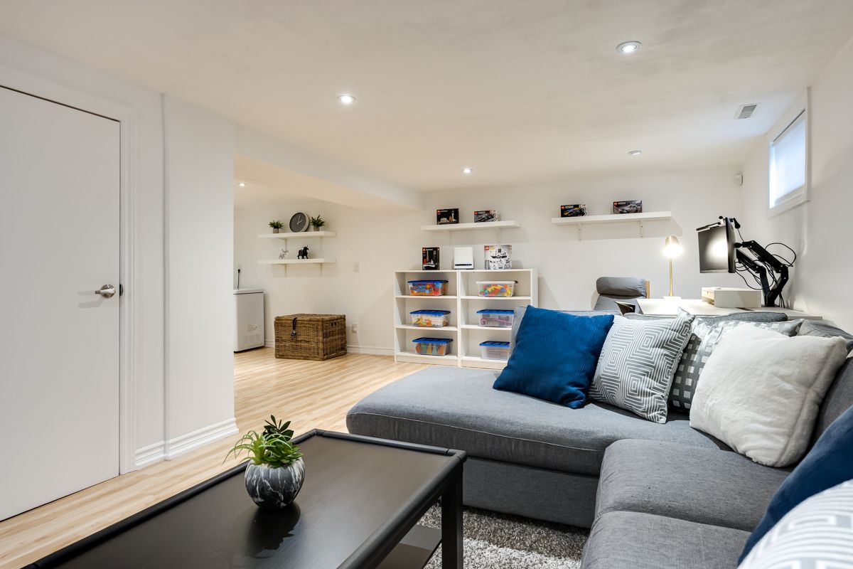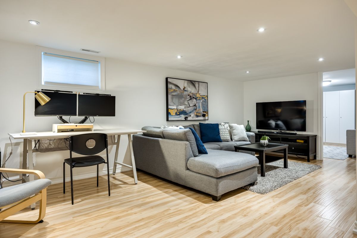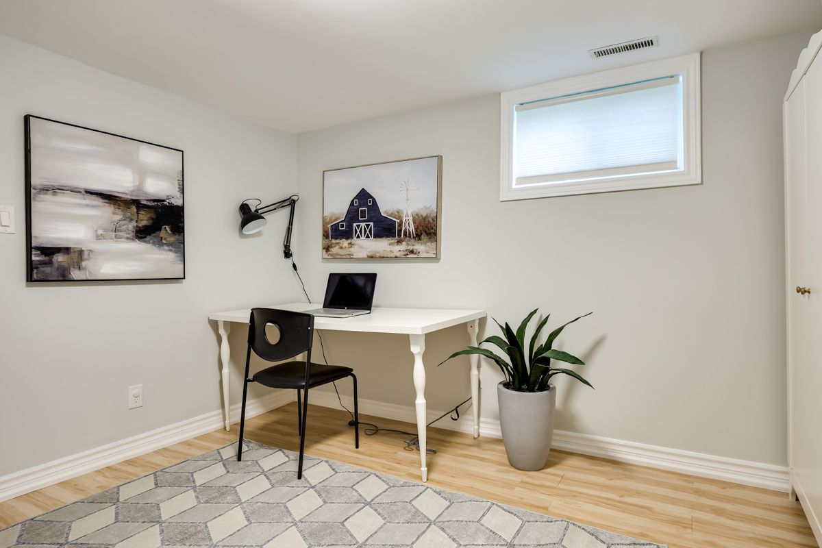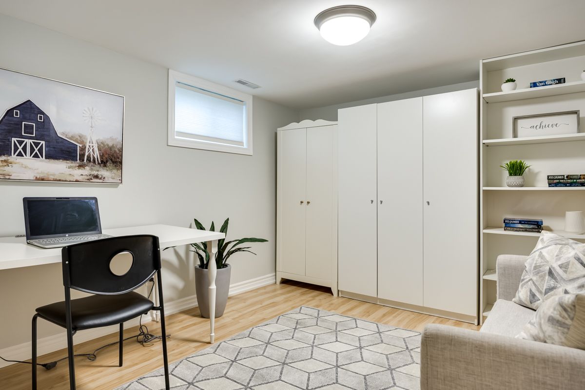 • Finished basement includes family room, extra bedroom or office, and laundry.