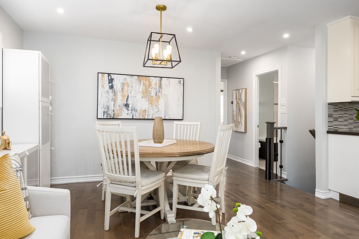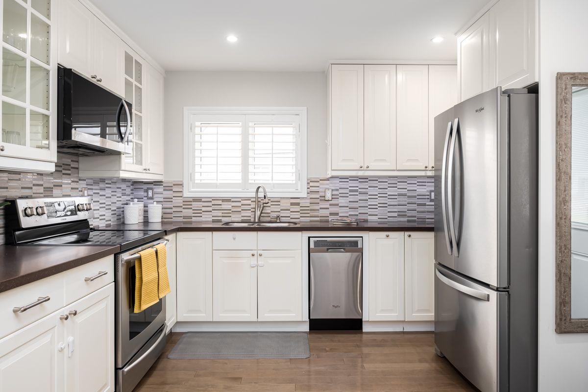 • Bright open floor plan with hardwood floors and modern kitchen finishes.
