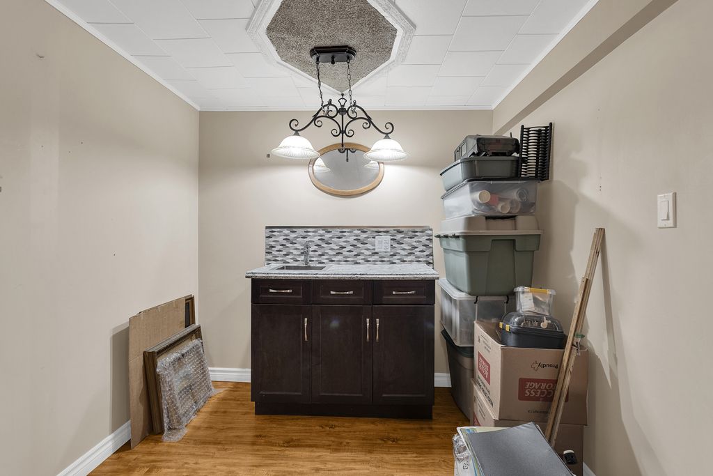 • Finished recreation room with wet bar and cozy gas fireplace.