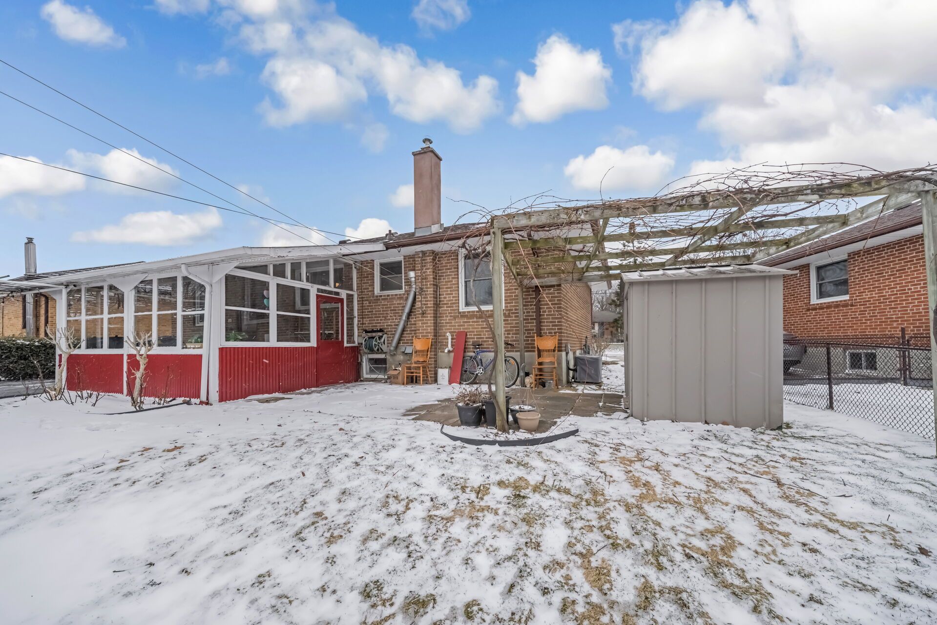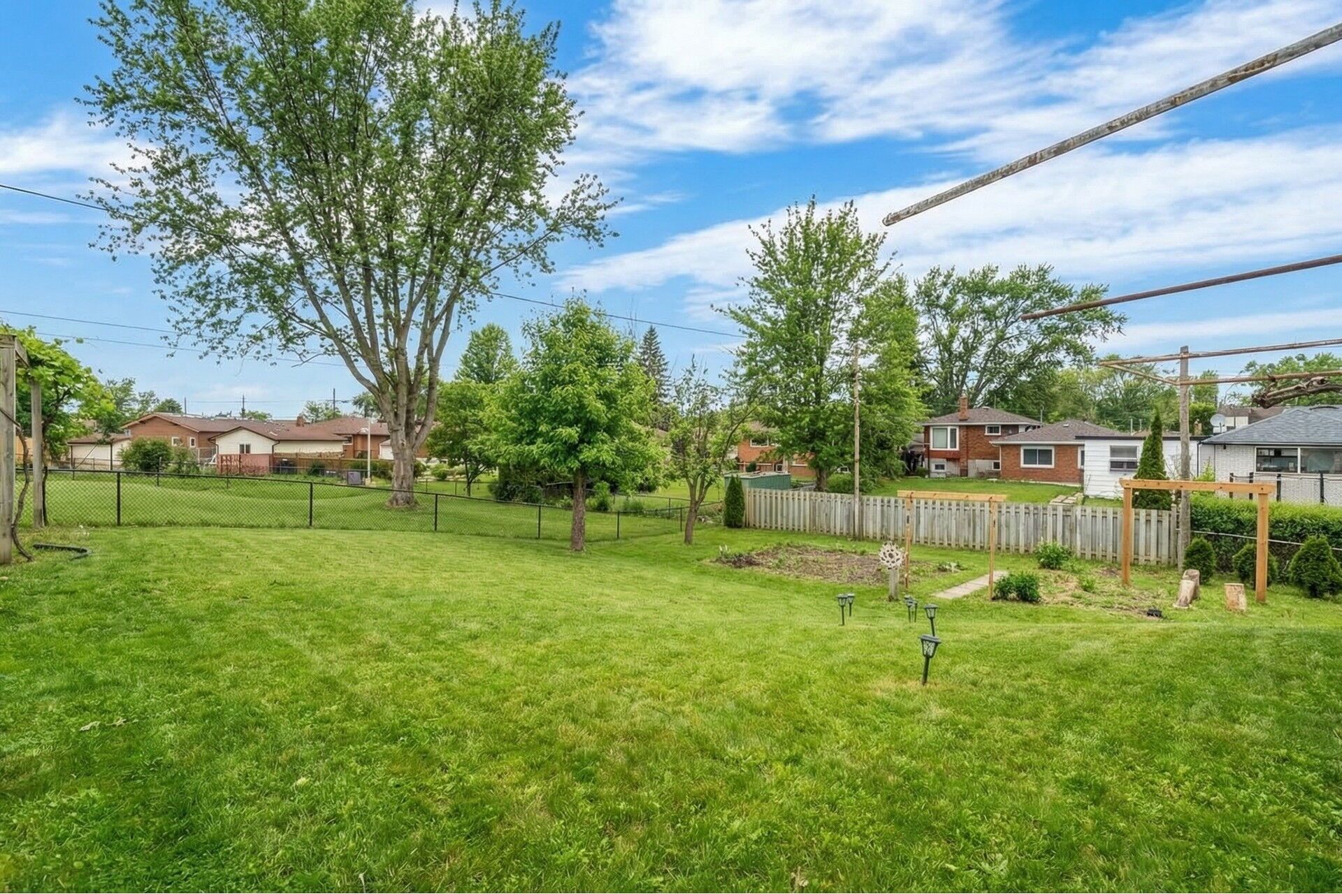 • Solid brick bungalow on a large fenced pie-shaped lot.