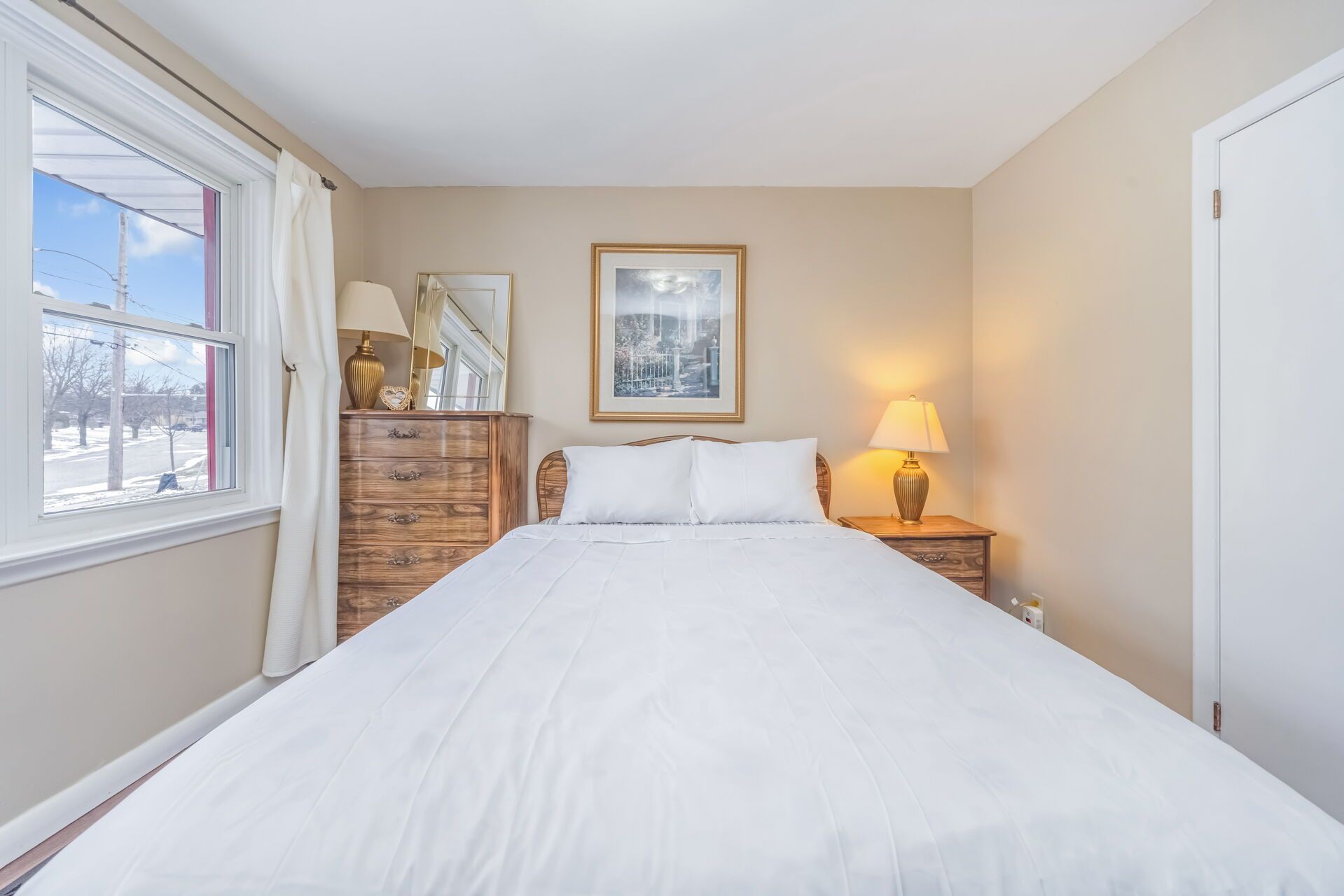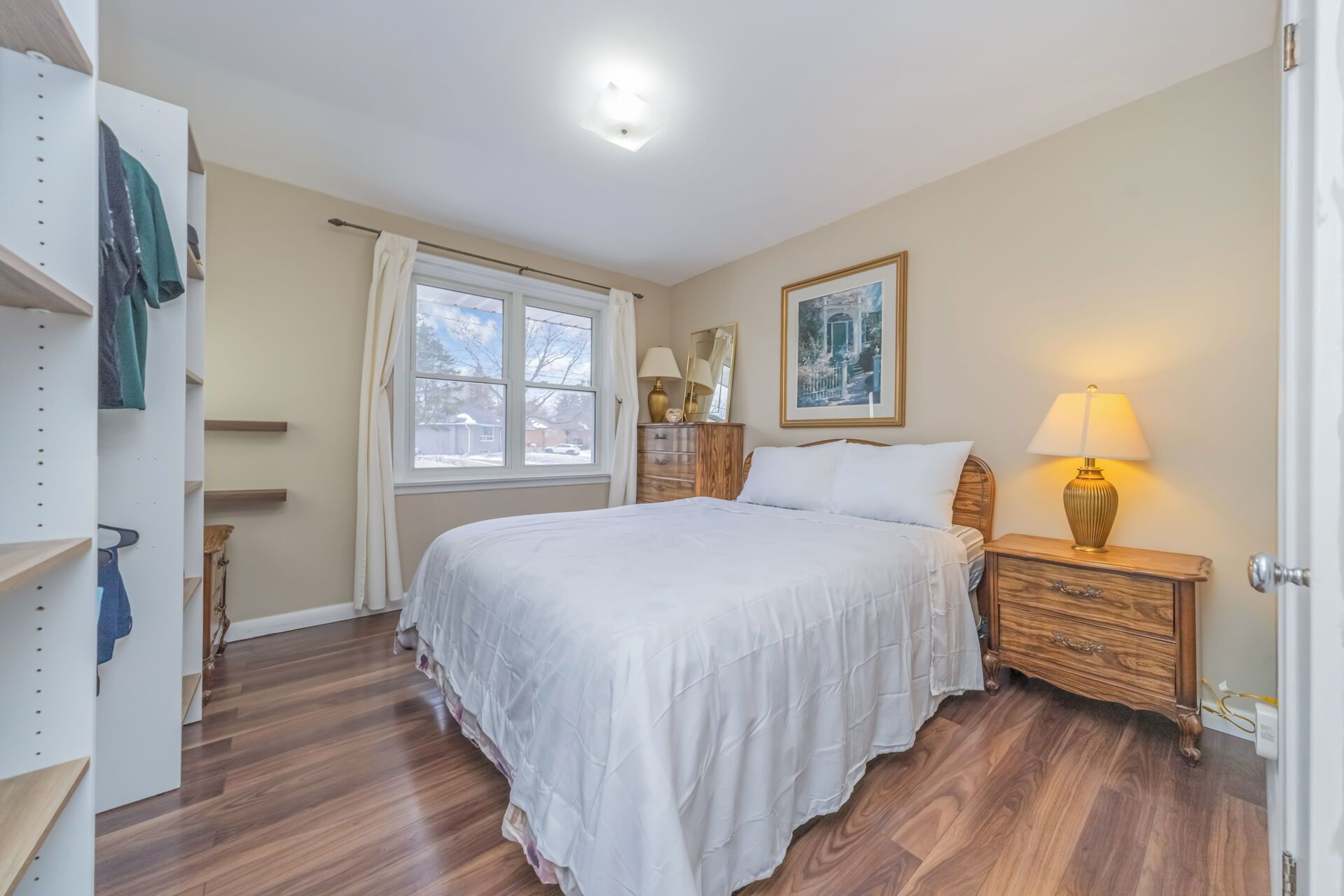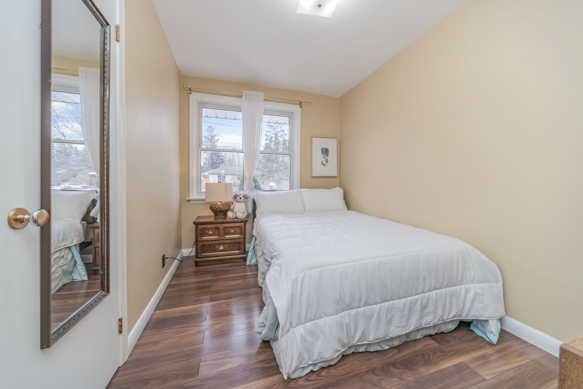 The quintessential solid brick guelph bungalow - everything you've been looking for! Situated on a large fenced pie-shaped lot, this home features a separate basement entrance to a 2 bedroom dwelling fully equipped with separate kitchen and 3 pc bath, creating an excellent opportunity for additional income or in-law suite. This property is perfect for kids, pets, and gardening enthusiasts alike. The double detached garage offers excellent space for a workshop, hobbyist retreat-or simply parking your vehicles. Upstairs you'll find a rare open-concept layout for a home of this era, featuring three bedrooms, a 4-piece bathroom, and a bright living and dining area ideal for everyday living and entertaining. Major updates include recently replaced windows and roof, and the home has been meticulously maintained, a true testament to its care and quality. Located in a welcoming neighborhood close to schools, parks, and amenities, this home truly checks all the boxes. Come see it for yourself and discover the possibilities.