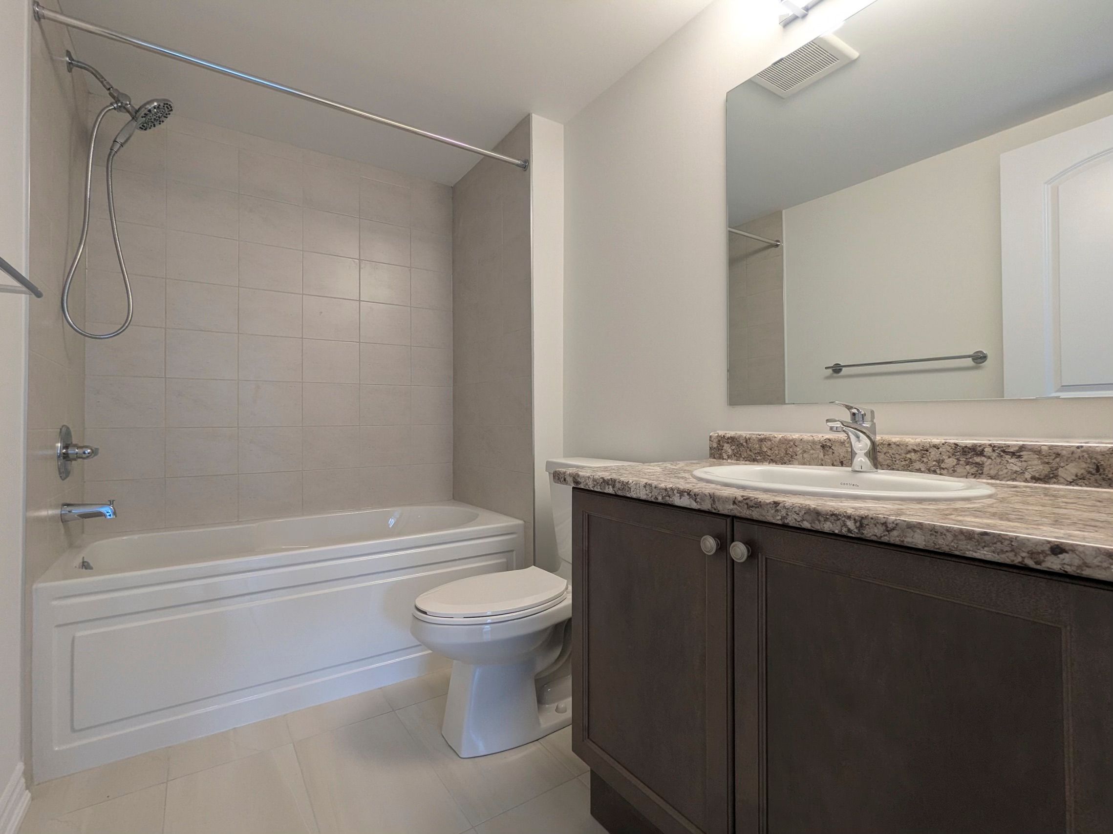 Welcome to union village phase 3 by "minto"** this one-year new 3-level townhome with spacious rooftop terrace and unobstructed east view** 1439 sq ft according to builder's floor plan** 10' ft ceilings on 2nd floor & 9' ft on 3rd floor** spacious kitchen featuring granite counters, breakfast bar, s/s appliances** main floor powder room** huge primary bedroom with double closets** third bedroom on the 2nd floor can be used as office** extra deep attached garage** this exclusive enclave is steps to community parks and surrounded by forests** easy access to highway 7 and 407** walks to yrt** top ranking schools such as pierre elliot trudeau h. S. & unionville montessori college** toogood pond park, angus glen community centre, library, markville mall & grocery stores** potl fee includes landscaping, snow removal, & garbage collection**