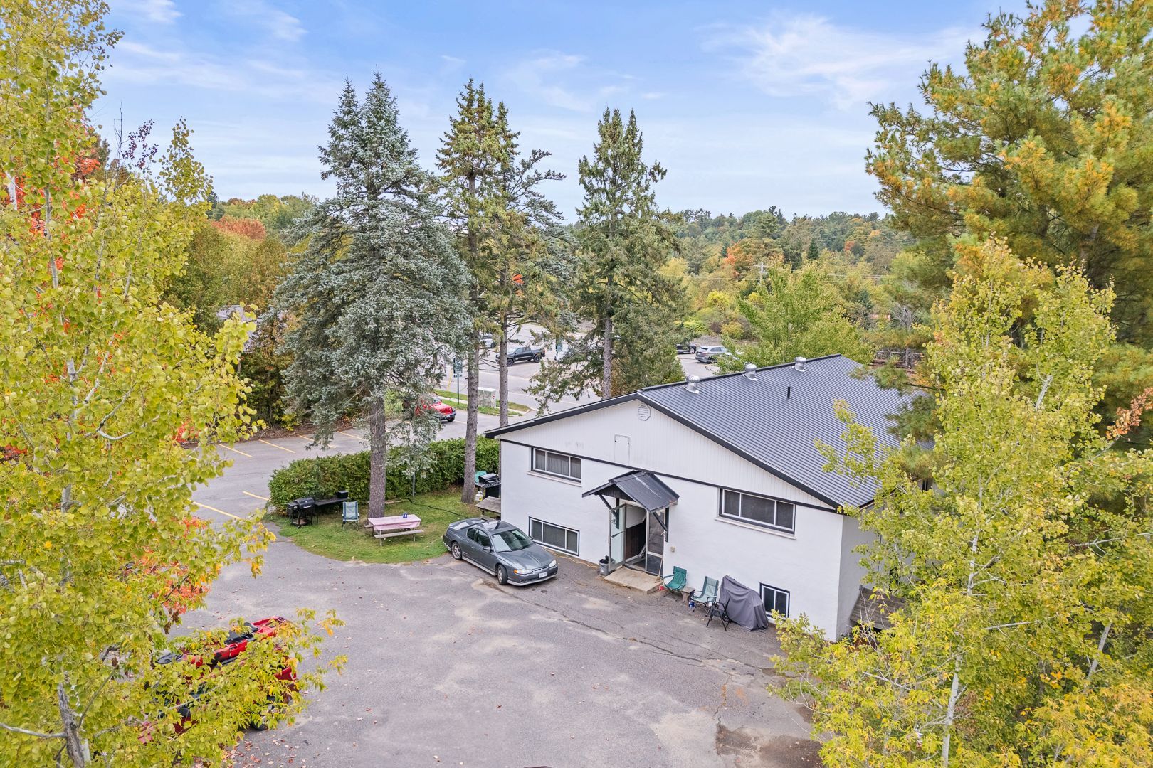 A unique opportunity to own a seven unit apartment building in one of muskoka's most sought after communities. Ideally located within walking distance of vibrant downtown bracebridge, tenants enjoy easy access to local shops, dining, cafes, and essential amenities, making this property highly desirable for both renters and investors alike. Set on a nice flat lot with mature trees the building offers enjoyable outdoor space for tenants to enjoy, along with abundant parking to accommodate both residents and guests. The property is thoughtfully configured. The lower level features two spacious two bedroom units and a bachelor suite, while the upper level offers two one bedroom units and an additional two bachelor units. Each unit is well laid out and appealing to a variety of tenants. With established tenants already in place, this property is a great opportunity to expand your investment portfolio in muskoka.