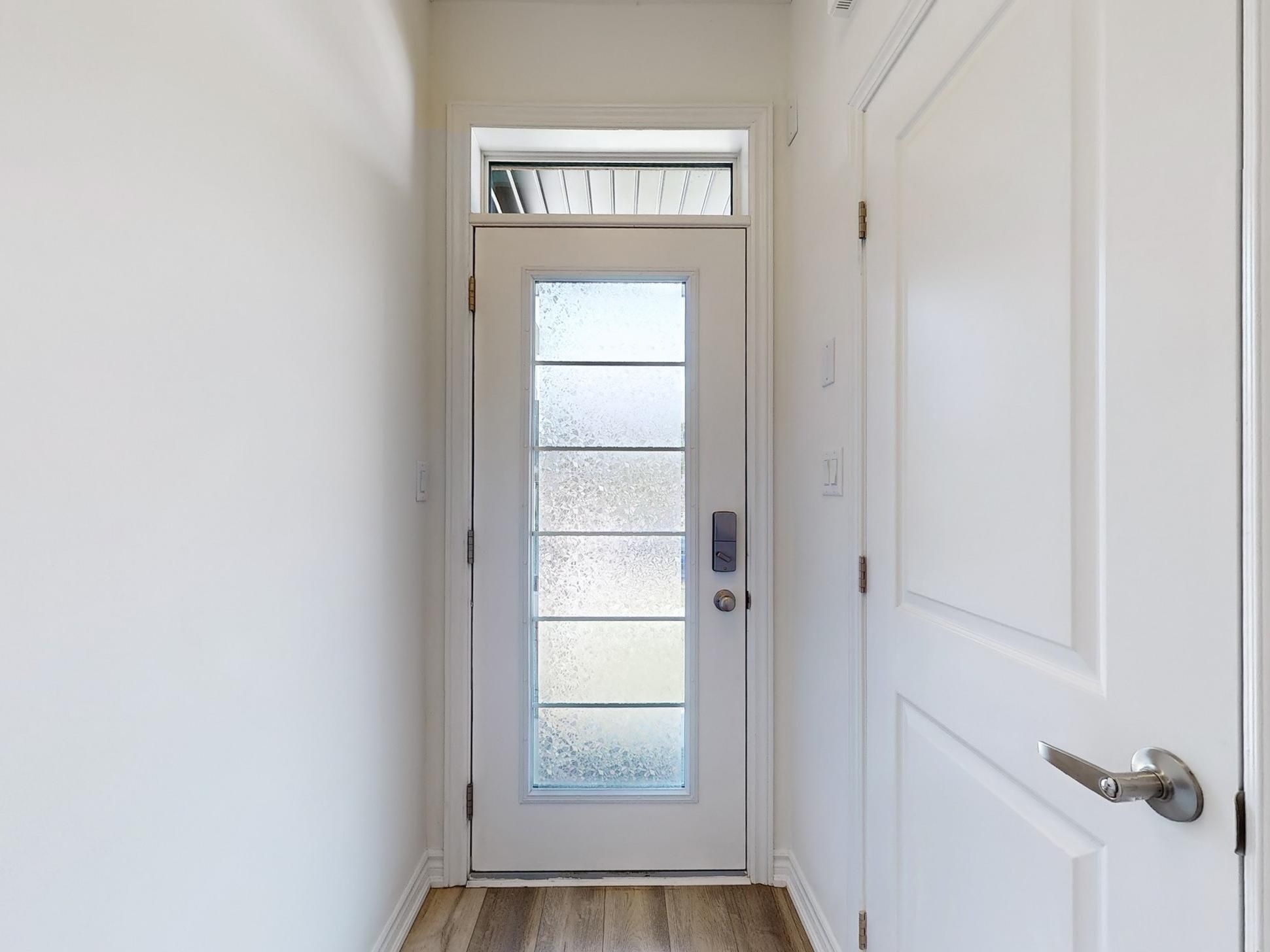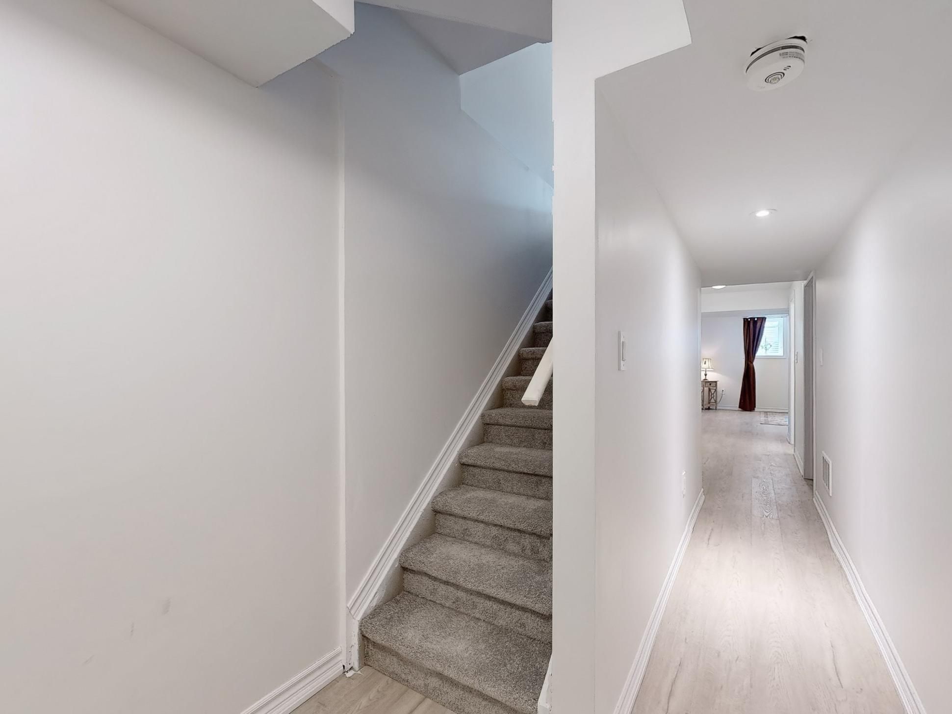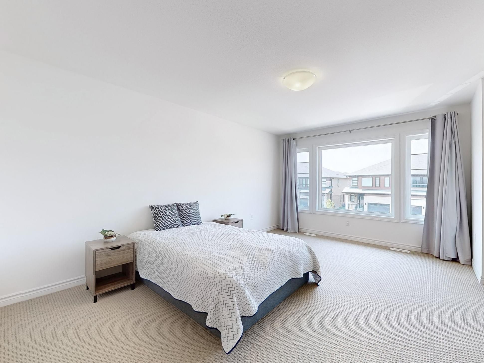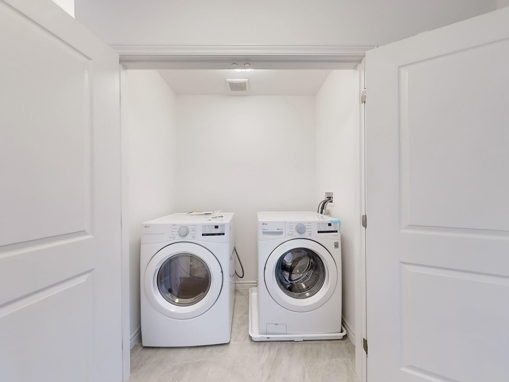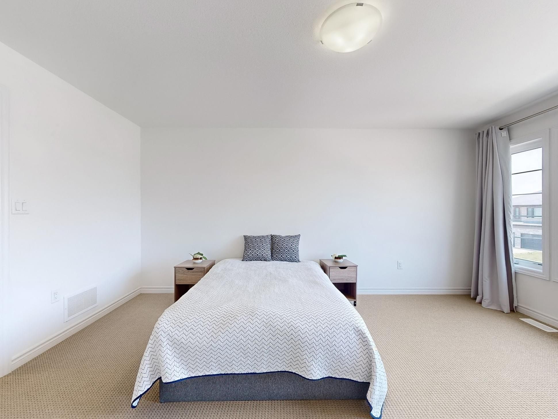 Four-year-new 3+1 bedroom, 4 bathroom townhouse offering an inviting front door with glass insert and keyless entry pad. 9' ceilings and elegant vinyl flooring flow seamlessly throughout the main level. Sun-filled, open-concept living room is flooded with natural light from a large window and patio door leading to the backyard. The kitchen features abundant cabinetry, quartz countertops, double sink, backsplash, valance lighting, stainless steel appliances, and a central island. The main floor offers convenient access to the garage with a garage door opener, as well as a thoughtfully placed powder room. Upstairs, you'll find three generously sized bedrooms. The bright primary suite offers three tall windows, 4-piece ensuite, and walk-in closet. Two additional bedrooms share a 4-piece bathroom. The second bedroom offers a walk-in closet, while the third bedroom features a single closet. Second-floor laundry adds everyday convenience. Finished basement includes a bachelor-style in-law suite, upgraded with extra heat registers, large window, rough-ins for a stove, fridge, and range hood. Spacious 4-piece bathroom with rough-ins for a washer and dryer. All electrical and plumbing work completed by licensed professionals. Conveniently located in a desirable, family-friendly neighbourhood in the west end of brantford. Walking distance to brand new community center with library, indoor swimming pool & elementary school. Minutes to walter gretzky elementary school, st. Basil catholic elementary school, and assumption college school. Close to plazas, walking trail with lakes with legal fishing and parks with playground and splash area.