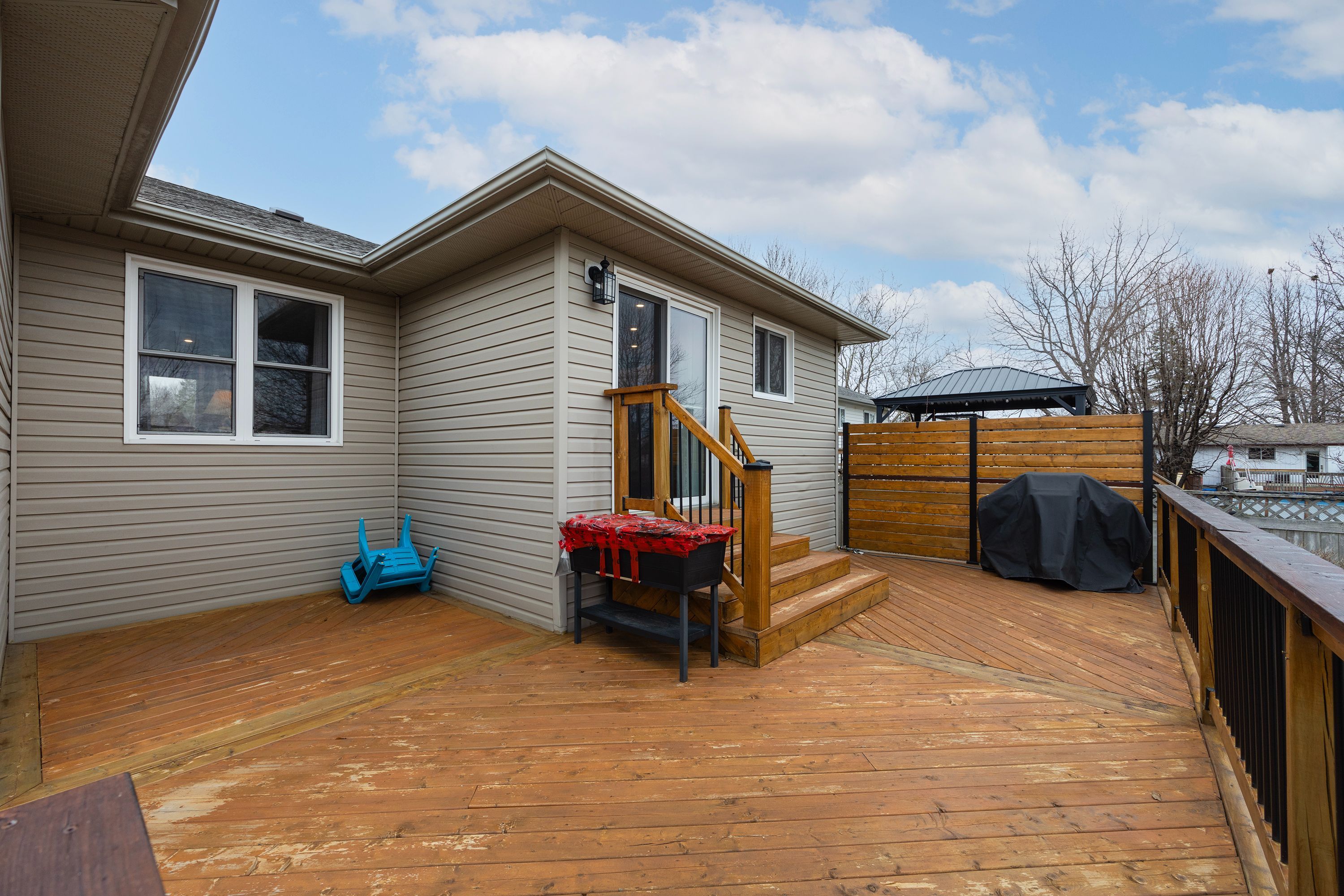 • Large deck and fully fenced backyard for relaxing or hosting guests.