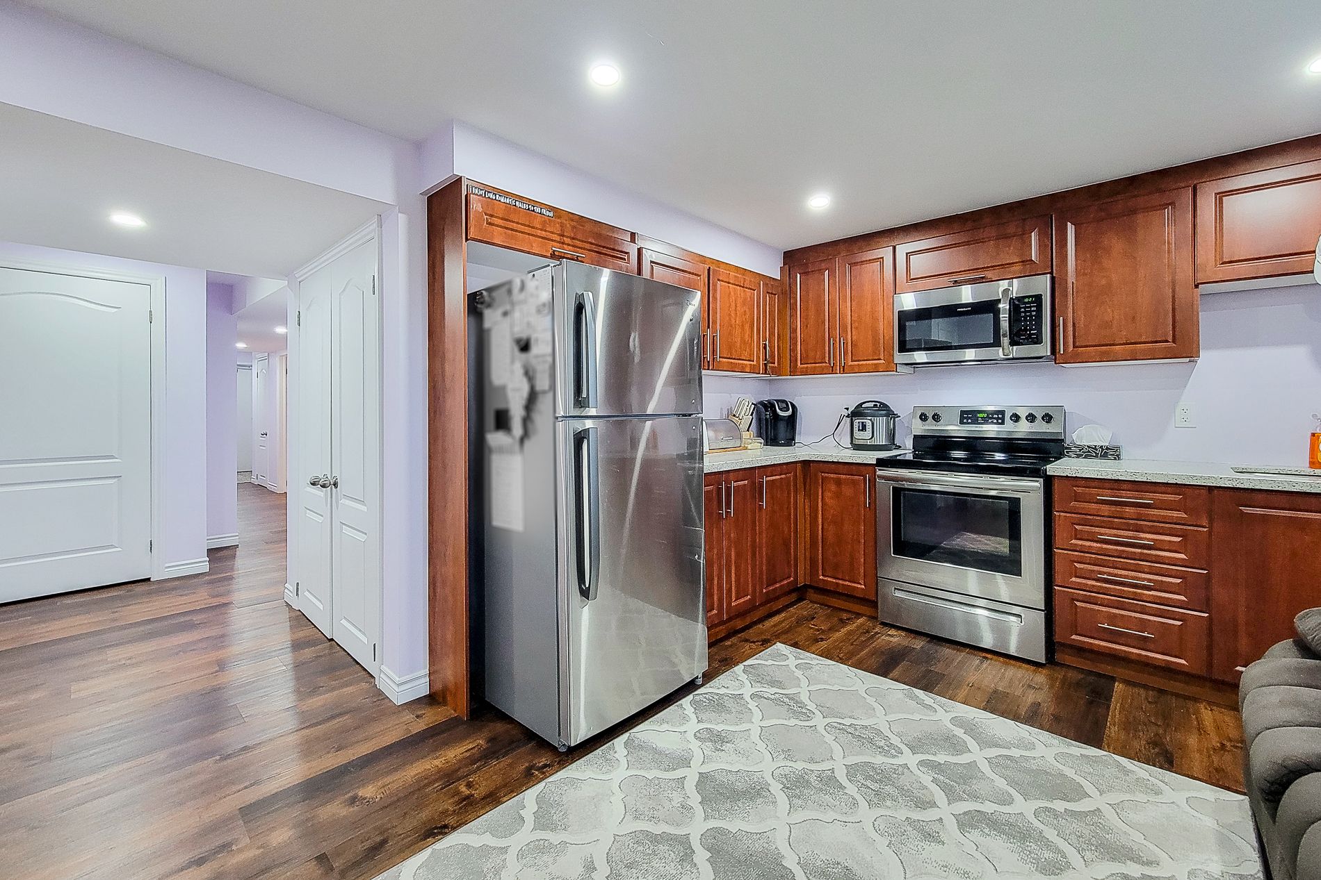 Welcome to this beautifully maintained 4-bedroom, 3. 5-bathroom home, offering the perfect blend of comfort, luxury, and functionality. Featuring two ensuites, this spacious property is ideal for growing families or those who value extra privacy and convenience. Step inside to a stunning kitchen equipped with sleek granite countertops, a stylish backsplash, and top-of-the-line stainless steel appliances. The open-concept layout boasts 9-foot ceilings and rich hardwood floors throughout the main level, creating a bright, airy, and inviting atmosphere. An elegant oak staircase leads to generously sized bedrooms, each designed to provide ample space for family and guests. The home also includes a legal, finished basement with separate meter featuring 2 bedrooms, 1 bathroom, and a full kitchen, with a separate side entrance perfect for extended family, rental income, or a private guest suite. Situated on a premium lot backing onto a serene pond and green space, this property offers privacy and scenic views. Enjoy the convenience of direct garage access into the home for added comfort and security. Ideally located in the sought-after, family-friendly community of west brant, you're just minutes away from schools, hospitals, grocery stores, banks, restaurants, parks, and walking trails. This is a rare opportunity to own a luxurious yet practical home in a well-connected neighborhood. Don't miss out make this exceptional house your new home today!