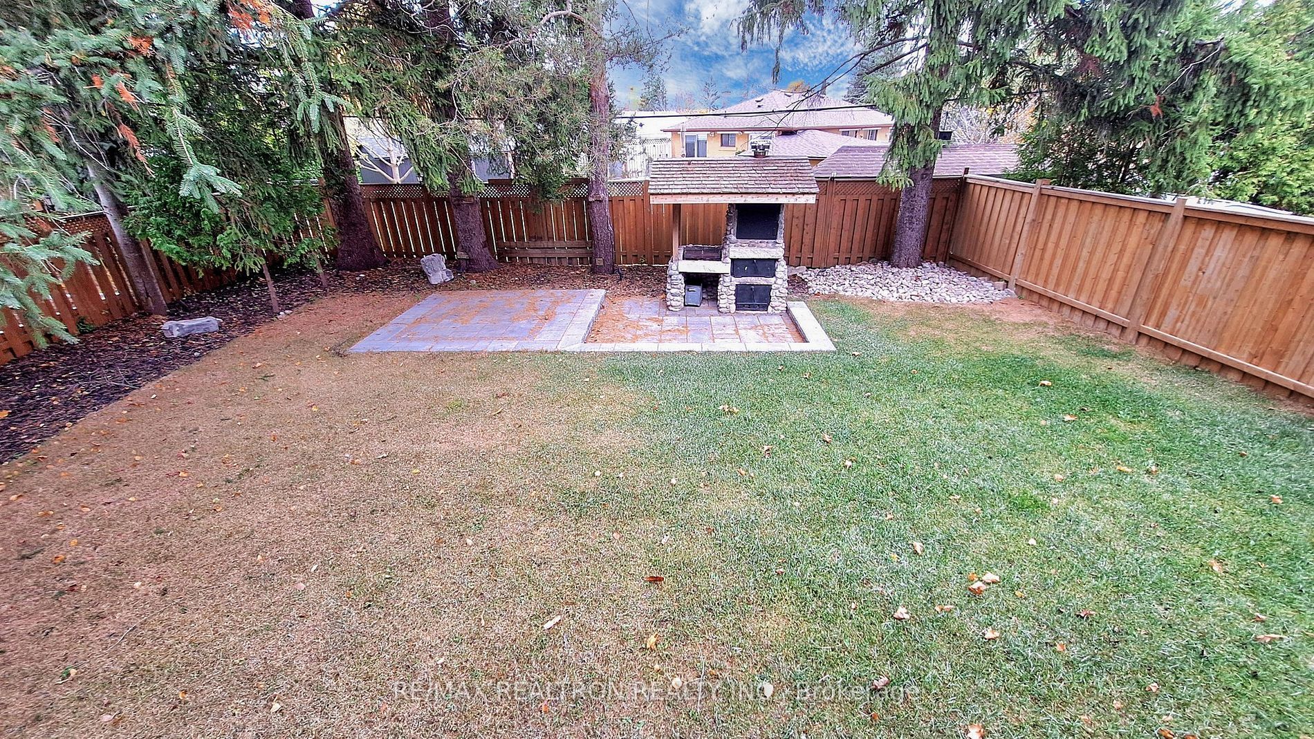 • Private fenced backyard with a wooden pizza oven for outdoor fun.