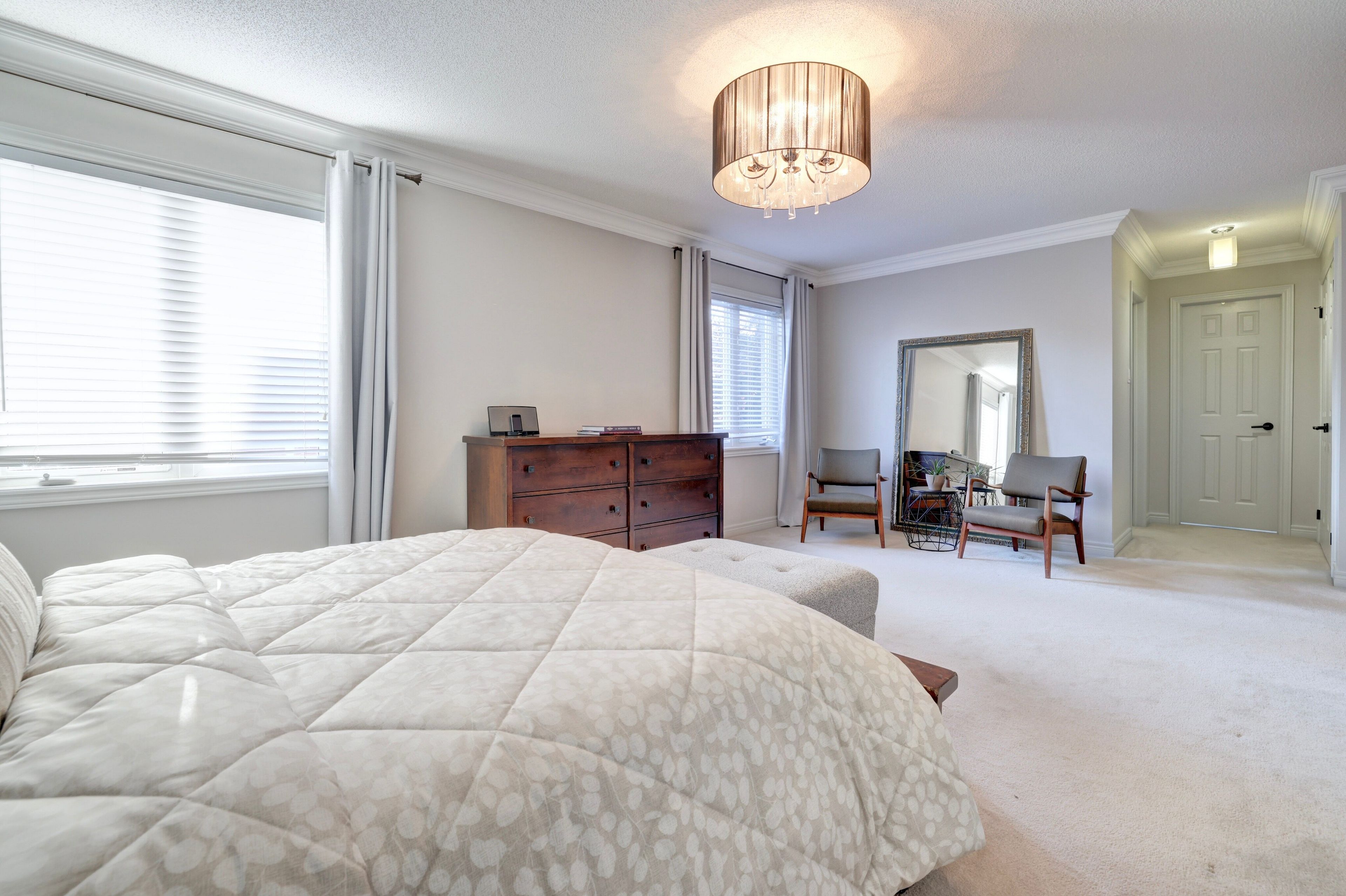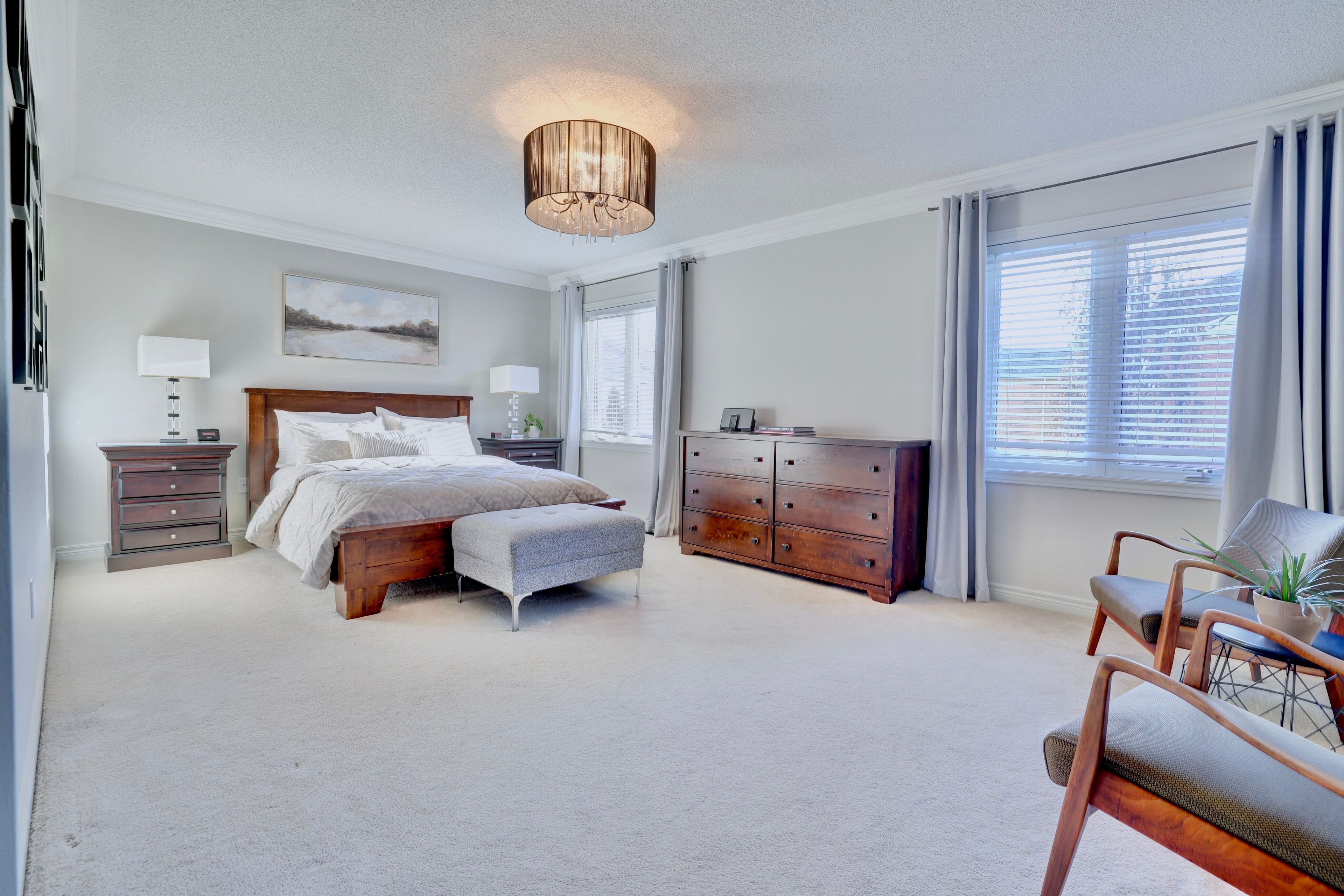This impressive well maintained east-facing 2-storey detached home is being offered by its original owners. Spacious 2556 sq ft plus a large finished basement in the highly desirable bram west community. Featuring brick and stone elevation, double door ent. , double car garage and 4-car driveway. Interlocked walkway leading to natural stone porch. The main floor. Features a grand open-to-above living room with extra-large windows, crown molding, pot lights and hardwood floors. The formal dining room is enhanced with crown molding and upgraded light fixtures. The upgraded two-tone kitchen includes stainless steel appliances, dishwasher, quartz countertops, undermount sink, backsplash and ceramic tiles, overlooking a spacious breakfast area with walkout to a fully landscaped backyard. The family room offers a cozy fireplace, built-in speakers and hardwood flooring. Main floor laundry room includes custom counter, undermount sink and direct garage access. The second floor offers four spacious bedrooms. The primary suite features double door entry, his and hers closets and a luxurious 6-piece ensuite with large glass shower, double sinks, and free-standing bathtub. Updated upper-level bathrooms include modern finishes. Spacious secondary bedrooms feature large windows and generous closets, offering comfort, natural light, and versatile living space. The finished basement has a large bedroom, recreation area with wet bar, elegant custom finished cold room , large 4-piece washroom, pot lights, storage area and rough-in for separate laundry. Additional features include security cameras, alarm system, underground sprinkler system, rough-in central vacuum, wired for ev charging, garage cabinets, 9 ft ceilings on main floor, 8 ft ceilings on second floor, timberline roof shingles (6 years old),and owned water tank (3 years old). A move-in ready home offering space, style and comfort.