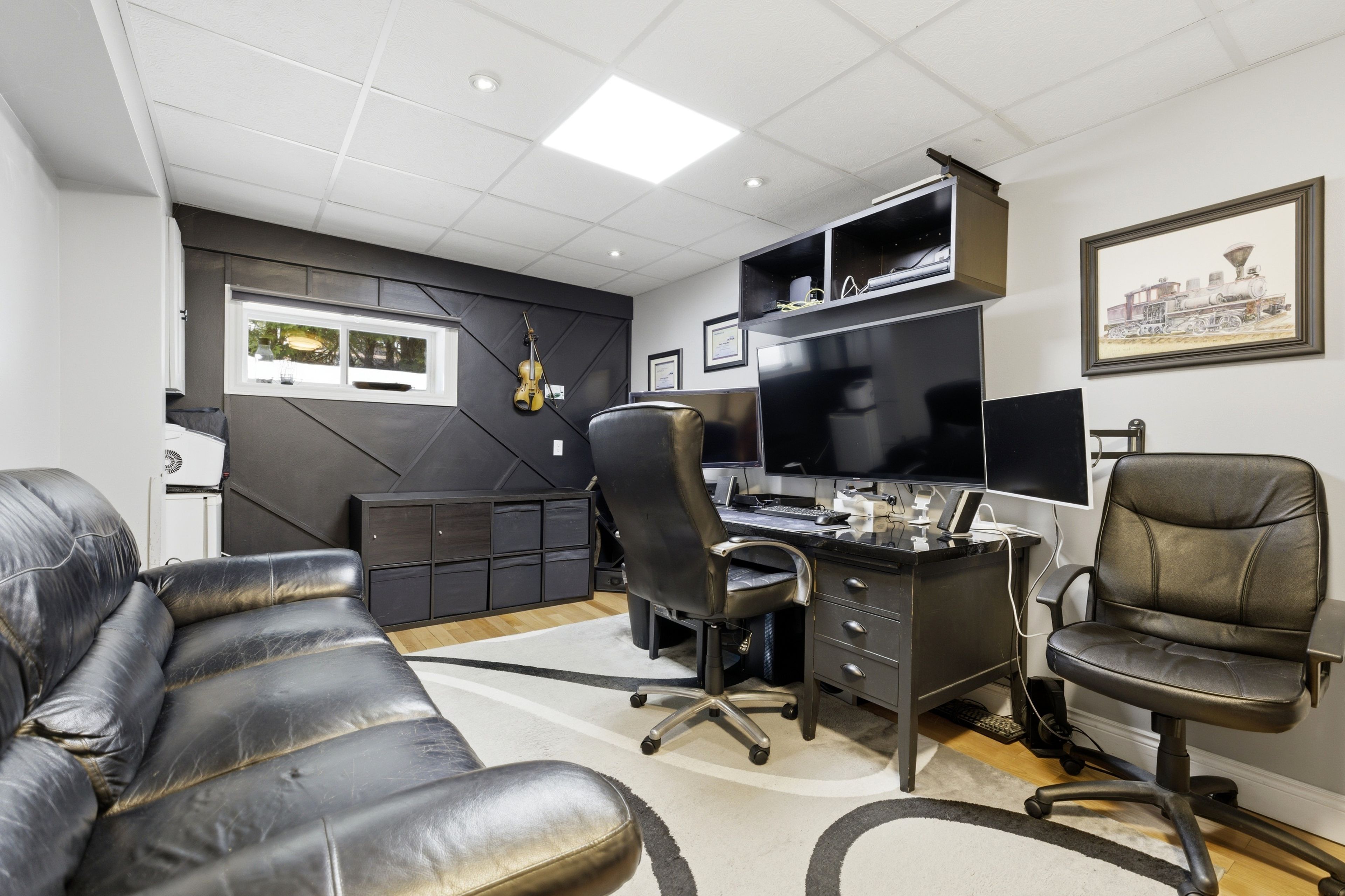 • Bright main level features three bedrooms, two bathrooms, and an office.