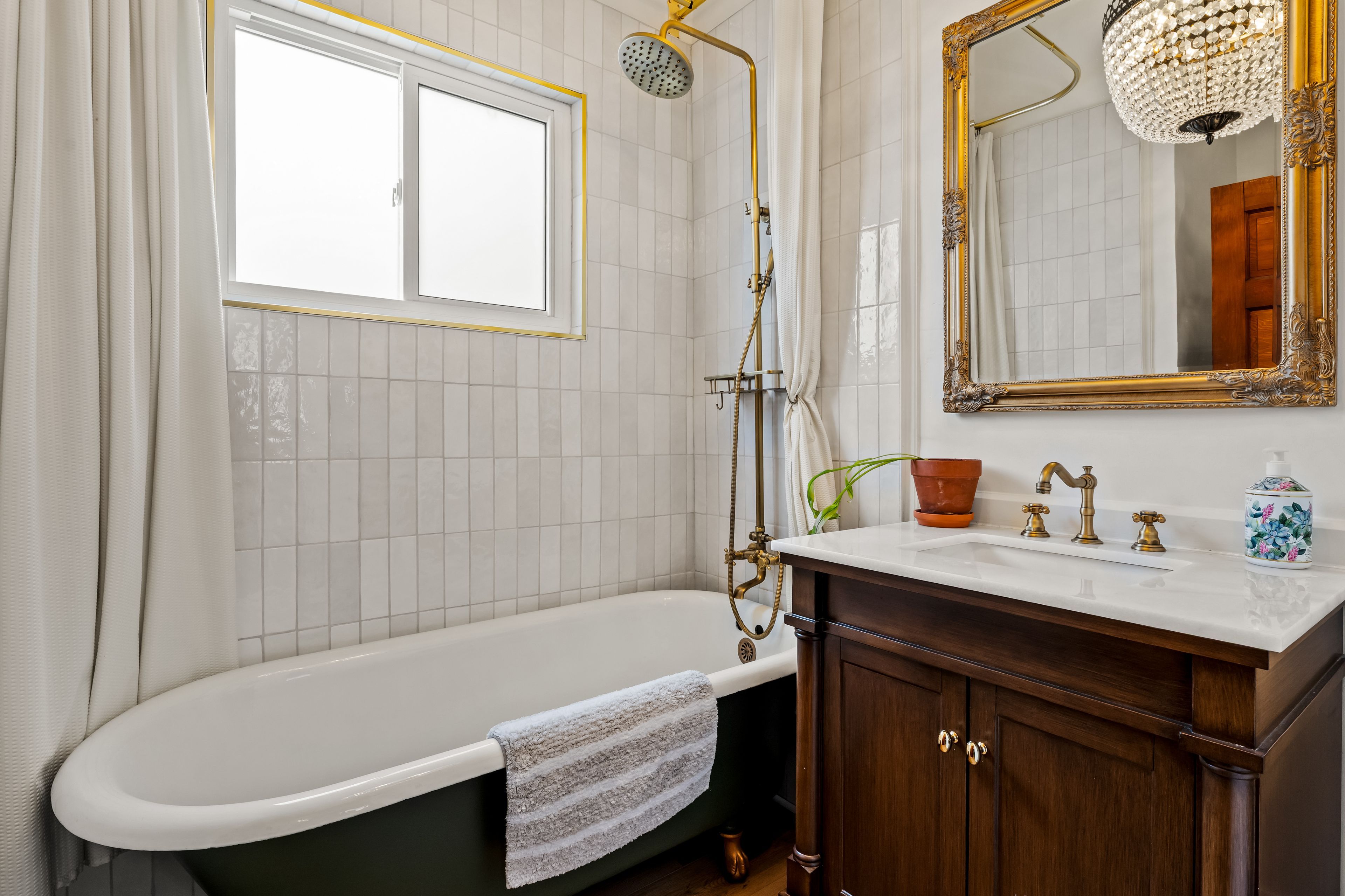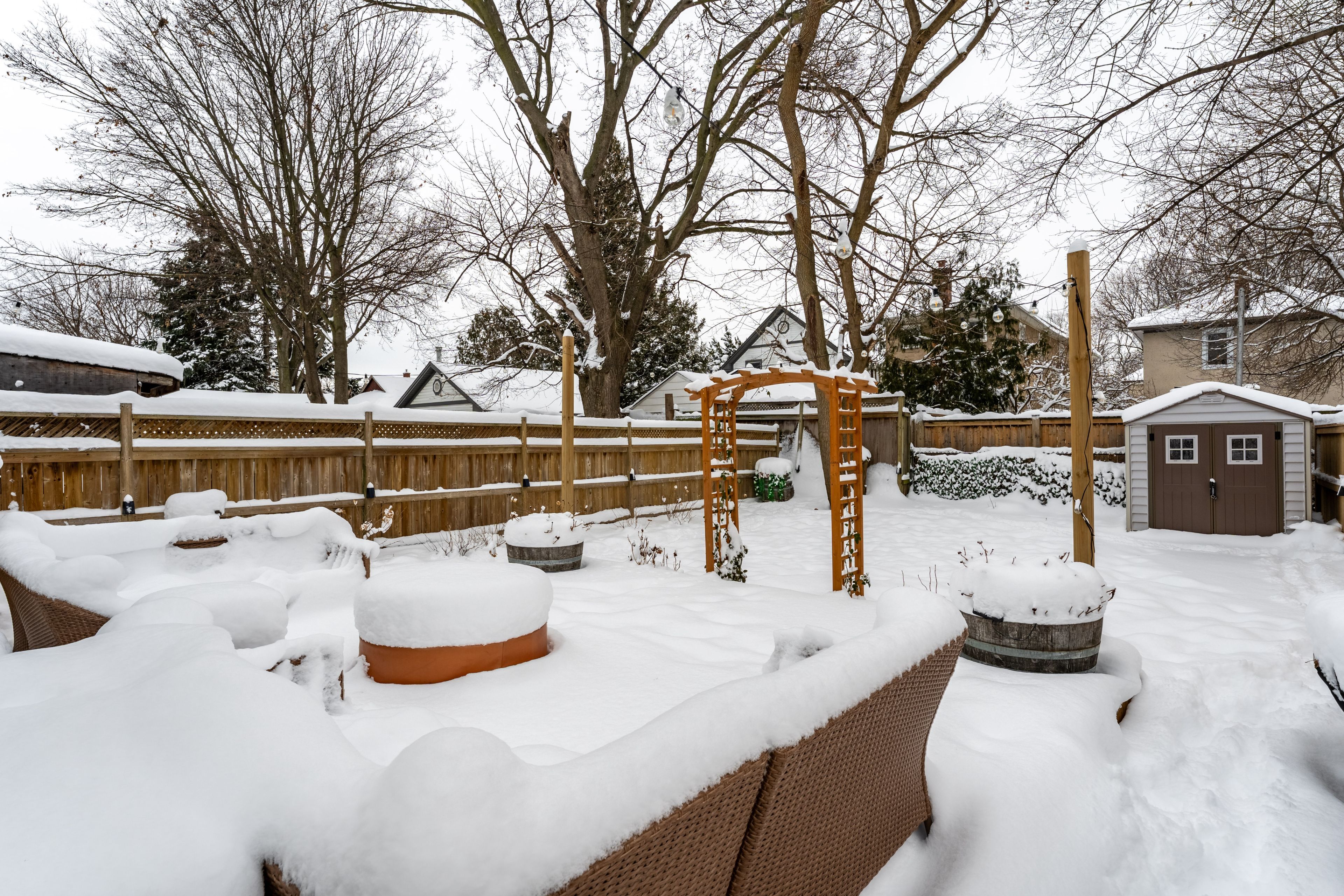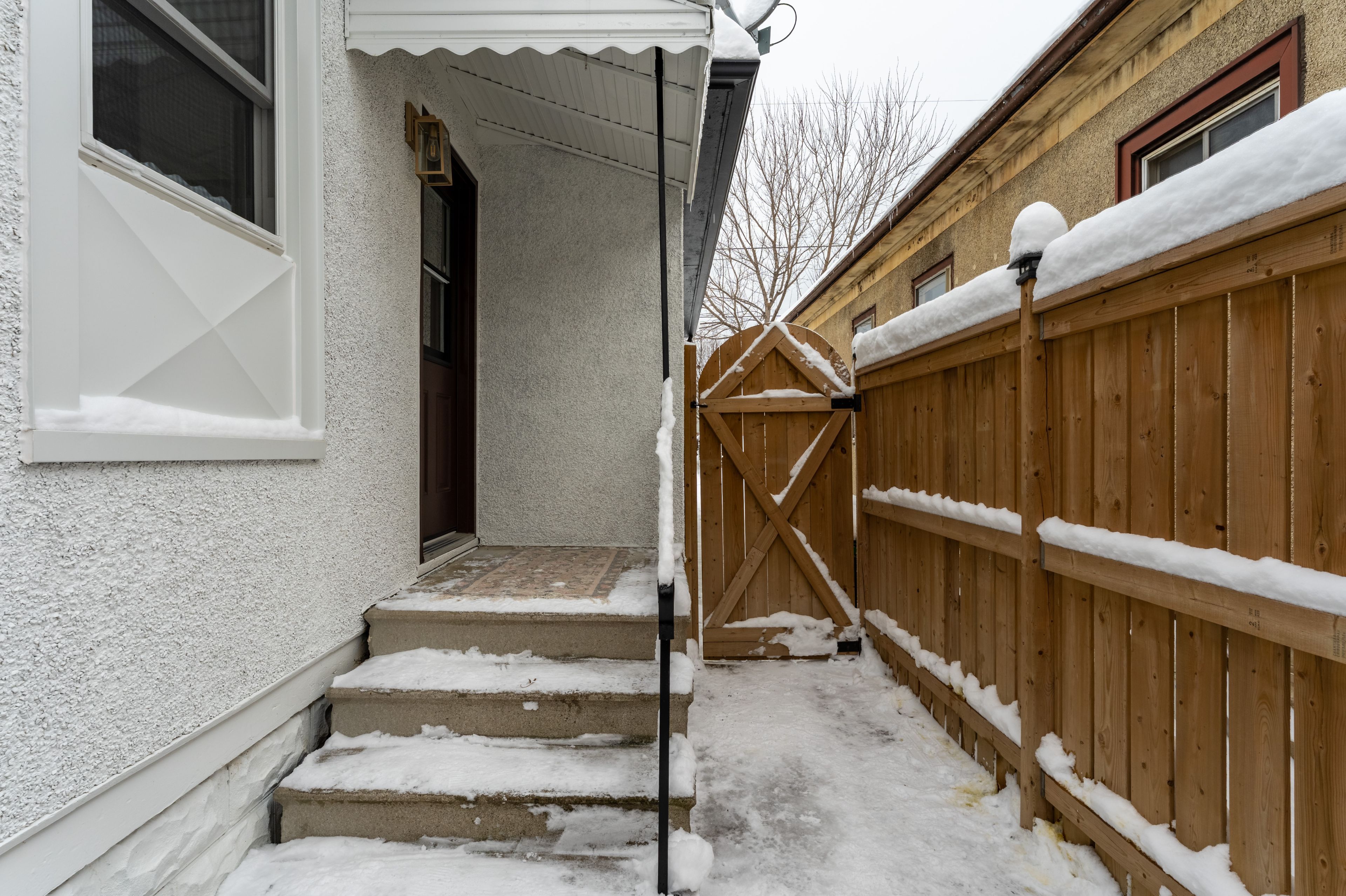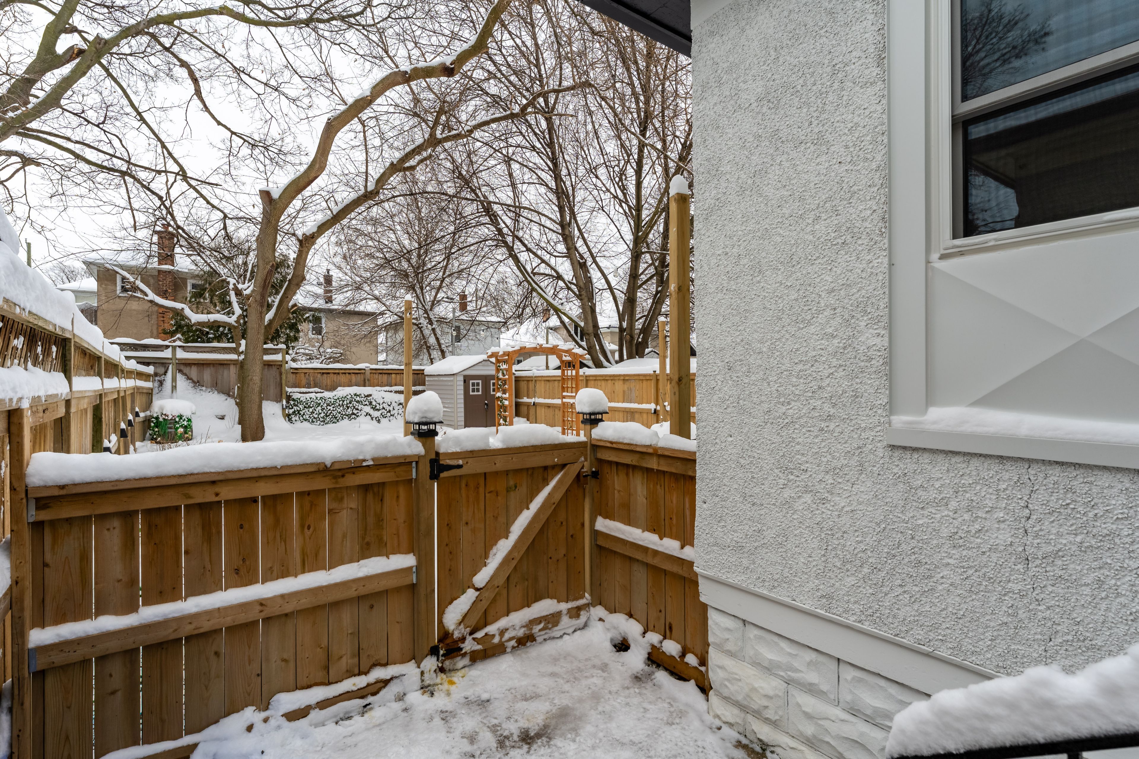 Don't miss this super nice starter or condo alternative professionally renovated inside and out and no condo fees! This gorgeous home has beautifully intertwined original charm and character with classic details and modern flair. A lovely master bedroom now features a glamorous ensuite, a 2nd bedroom/office and 2nd renovated 4 piece bathroom with claw foot tub, all on the mainfloor. Over 9' ceilings, luxury vinyl plank flooring throughout, curved ceilings, striking trim work and lighting (including many dimmer switches), modern, sleek electric fireplace with tv mount above mantel. The farmhouse kitchen features tall cabinetry with pretty glass door accents, fresh and clean tiled backsplashes, stainless appliances and access to the private, fully fenced backyard with convenient, separately fenced dog courtyard (great for wet weather), 16'x16' deck, garden shed and attractive landscaping with an abundance of easy maintenance perennials. Vinyl windows, replaced exterior doors, freshly painted exterior, cement front drive, inviting front steps, lots of basement storage space, gas heat, c/air and owned water treatment system--the work here has been done-move in and enjoy....