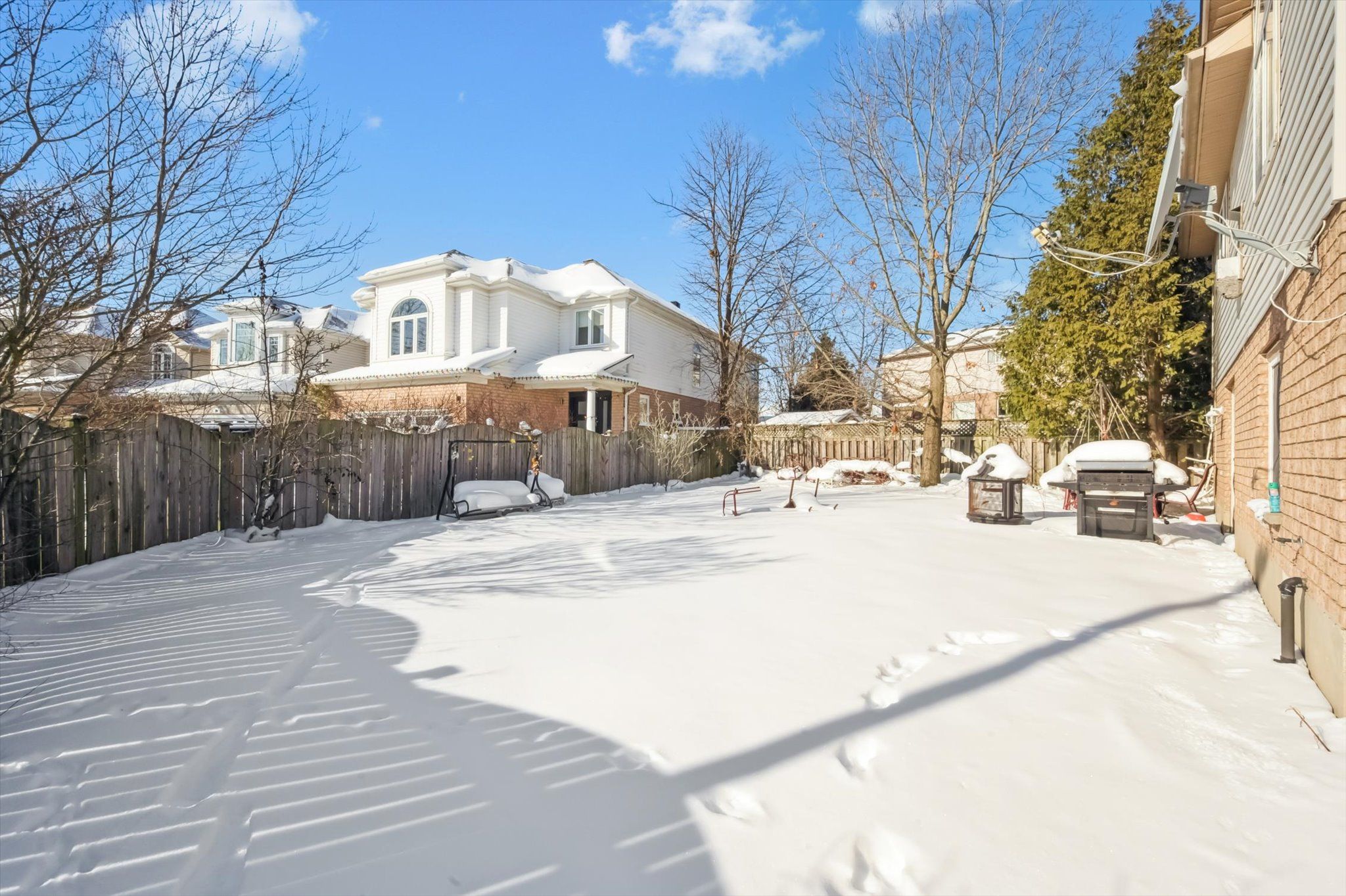 Stylish, spacious, and tucked away on a quiet court, this beautifully maintained 4-bedroom, 3-bathroom backsplit sits on a premium corner lot in guelph's highly sought-after south end. From the moment you step inside, soaring cathedral ceilings in the expansive living and dining rooms create an airy, light-filled atmosphere-perfect for both everyday living and effortless entertaining. The separate eat-in kitchen offers modern appliances and ample space for family meals, casual gatherings, and morning coffee rituals. Upstairs, you'll find three generously sized bedrooms, including a primary retreat complete with a 4-piece ensuite and cozy gas fireplace. A second full bathroom serves the additional bedrooms on this level. The inviting family room, anchored by a second gas fireplace, is ideal for movie nights, game days, or relaxed evenings at home. A 4th bedroom and bathroom complete this floor. A finished basement adds even more versatility, offering space for a recreation room, home gym, or play area, while a bonus office and double-car garage enhance the home's everyday functionality. Outside, the fenced backyard provides privacy, curb appeal, and extra breathing room thanks to the premium corner lot setting. Just minutes to scenic trails, shopping, restaurants, and all the amenities the south end is known for, this home perfectly balances quiet court living with unbeatable convenience.
