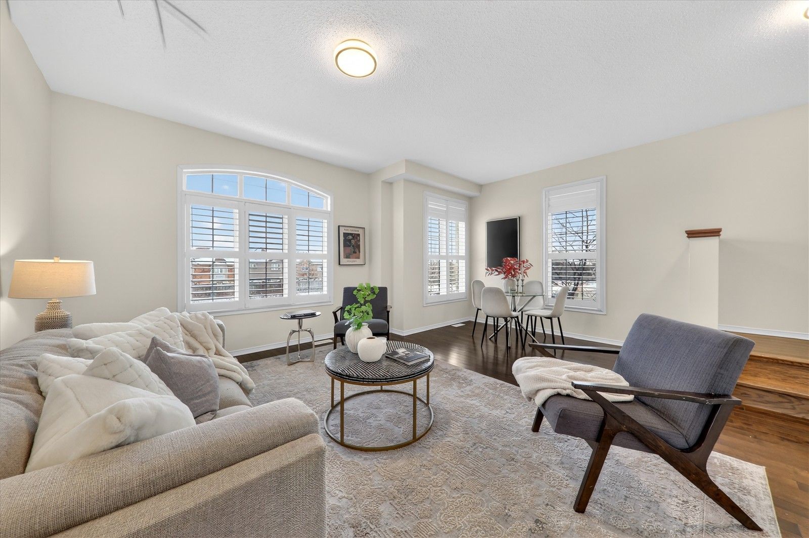 • Spacious living and dining areas with beautiful hardwood floors.