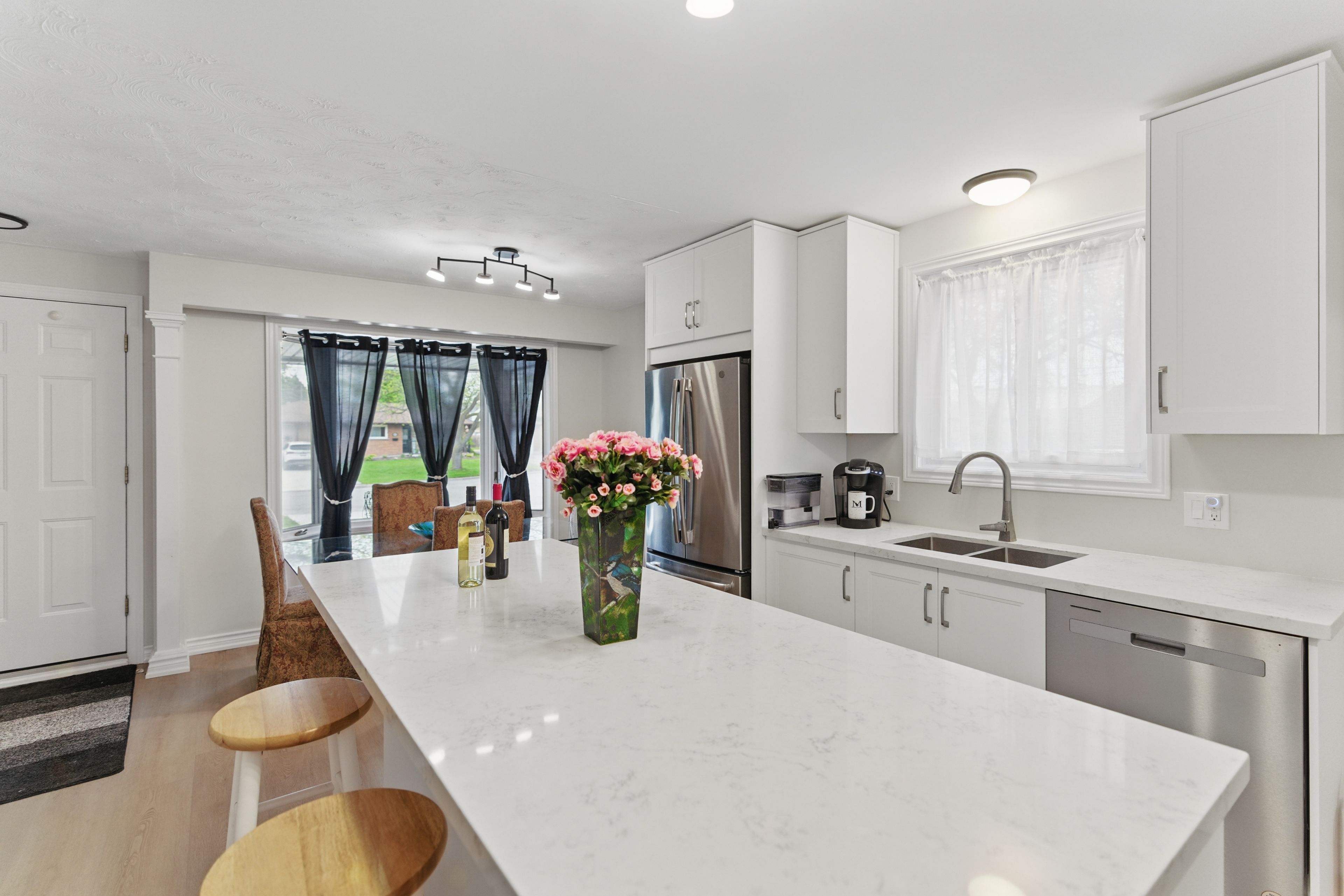 Discover your sanctuary in this newly updated 1186 sq ft bungalow nestled in the sought-after north end of st. Catharines, right here in the heart of niagara region. Tucked away on a serene cul-de-sac and bordering the tranquil walker creek trail - with backyard access, this home is a rare find indeed. Step inside to find a kitchen transformed in 2025 with new cabinets, a sleek island topped with quartz counters, and updated vinyl flooring, perfectly complementing the stainless-steel appliances; including a dishwasher (2025). The main floor washroom also in 2025, received a stunning makeover, boasting fresh vinyl flooring, a stylish vanity, a luxurious soaker tub, and updated fixtures. Recent updates extend throughout the property, ensuring comfort and efficiency. A new r7 insulated garage door (2025), refreshed basement bathroom (2025), and a concrete driveway (2024) enhance convenience and curb appeal. Inside, updates continue with basement finishes (2024) and commercial-grade laminate flooring (2024). Essential upgrades like a trane furnace (2022), air conditioner (2022) - furnace & a/c, and roof (2021) - roof warranty transferable to buyer within 30 days, soffits & fascia (2021) provide peace of mind and reliability. Don't miss your chance to call this meticulously maintained home yours where modern comfort meets natural beauty in a prime niagara location.