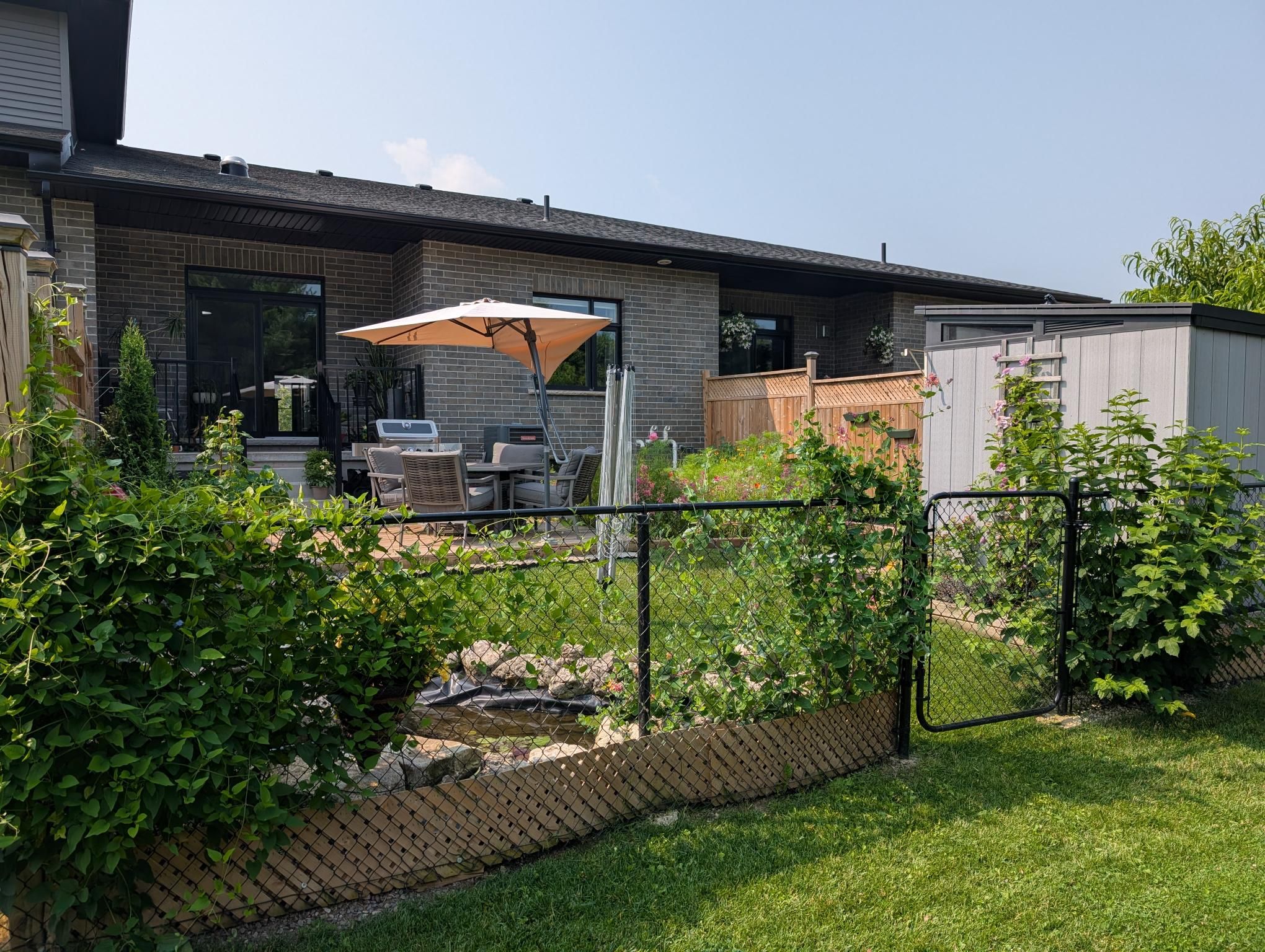 Welcome to south pointe, one of exeter's newer and most sought-after subdivisions. This beautifully maintained bungalow-style townhome, built in 2021 and ideally located second from the end off albert street, offers comfort, style, and easy living-perfect for first-time buyers, retirees, or anyone looking to step into the market. The thoughtfully designed layout features 2+1 bedrooms and 2. 5 baths, with a bright and spacious main floor. The custom kitchen boasts granite countertops, stainless steel appliances, and a stylish honeycomb backsplash, seamlessly connecting to the living and dining areas. Two newer solar tubes (2024) enhance the natural light, creating a warm and welcoming atmosphere. From the living room, enjoy peaceful views of the covered back porch overlooking lovely gardens, a tranquil pond, and a gently flowing creek. The primary suite is conveniently located on the main level and includes a walk-in closet, private ensuite, and an abundance of natural light. A second main-floor bedroom provides flexibility as a guest room, home office, or cozy den. Vinyl plank flooring, installed in 2024, flows throughout the main level, complementing the open-concept living space. A full 4-piece bath with a deep soaker tub completes the main level. The partially finished basement (2022) adds even more value, offering a large bedroom, 2-piece bath, and a spacious rec room with tall ceilings, plus ample unfinished storage and workshop space-leaving plenty of room to customize and add future square footage. Located just minutes from the local hospital, schools, shopping, and the scenic mcnaughton park, this home delivers low-maintenance living in a prime location. A rare opportunity to enjoy modern comfort in a welcoming community!