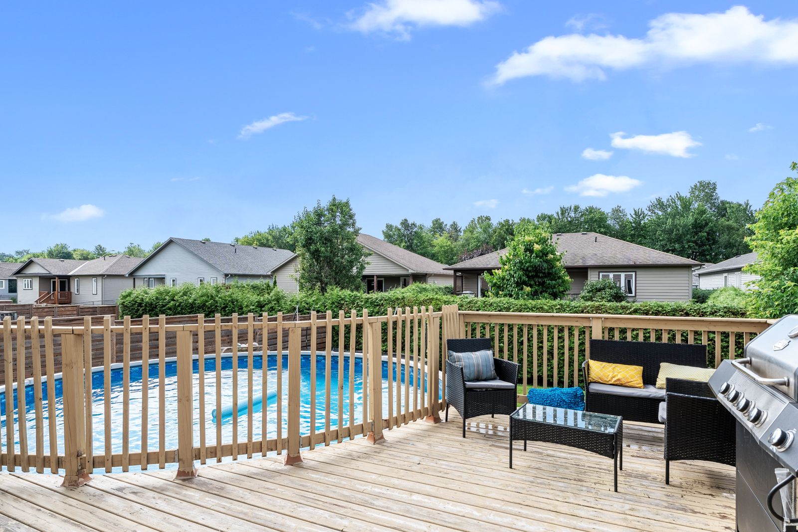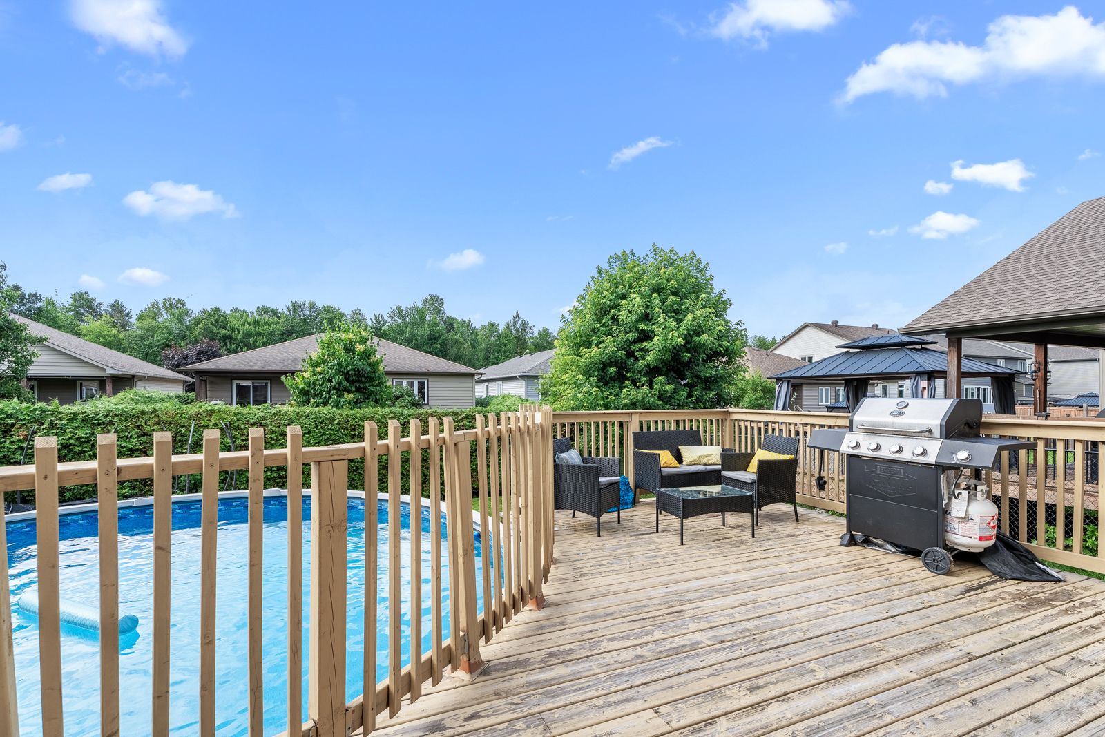 Located in one of the most sought-after neighborhoods in the area, this 3+1 bedroom, 3 full bathroom, and 1 half bath home in the heart of russell is the perfect family home! Built by corvinelli homes, renowned for its quality construction, the main floor features a bright, gas fireplace, perfectly complemented by hardwood/ceramic floors. The newly renovated kitchen (2025) offers brand new countertops, new backslash, a breakfast bar, ample cabinet space, and direct access to the large deck with an above-ground pool. The main floor features a laundry room. The master bedroom features an ensuite bathroom and a walk-in closet. All bedrooms are well-sized. The house is energy star certified. Book your showing today!