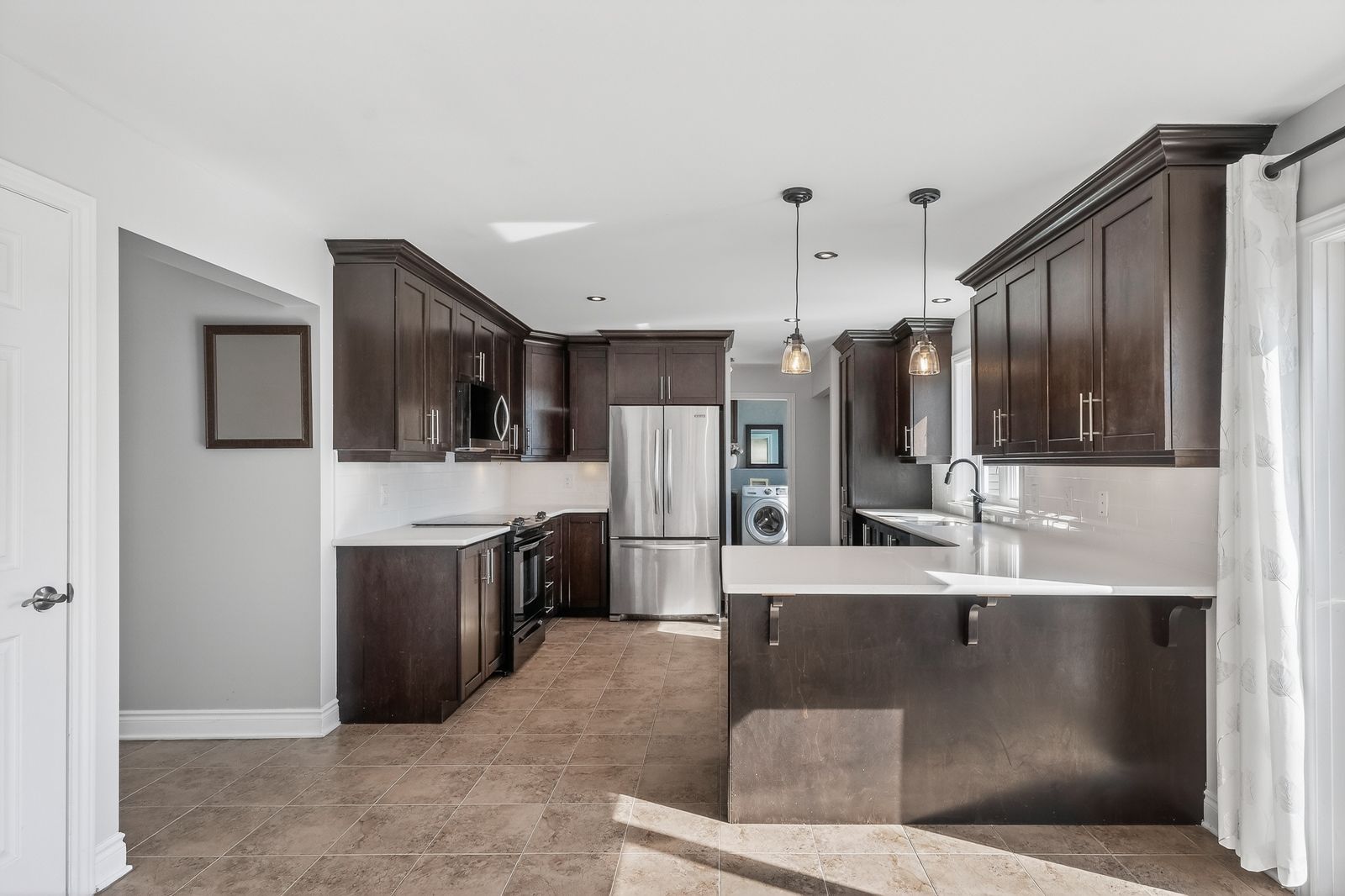 • Newly renovated kitchen with modern countertops and breakfast bar.