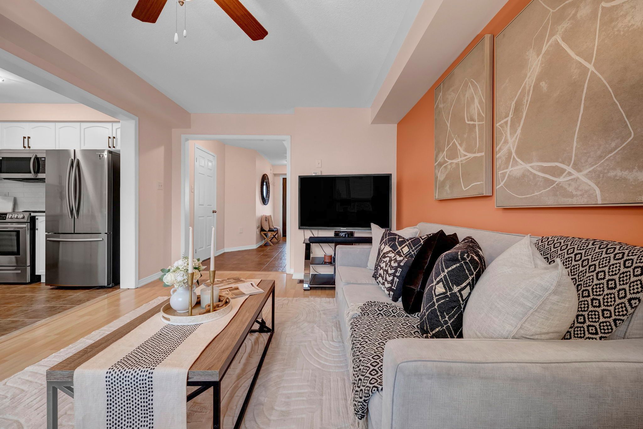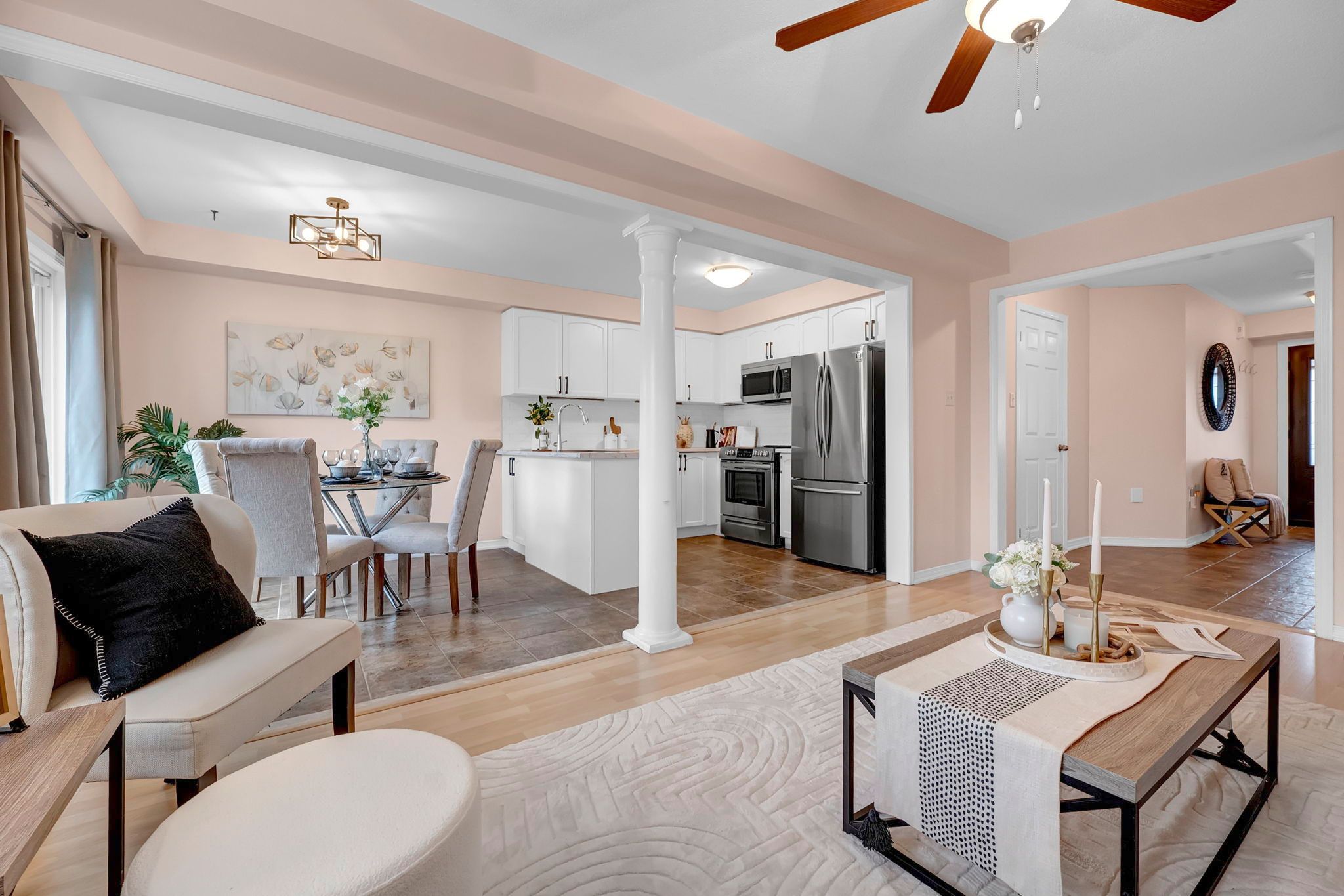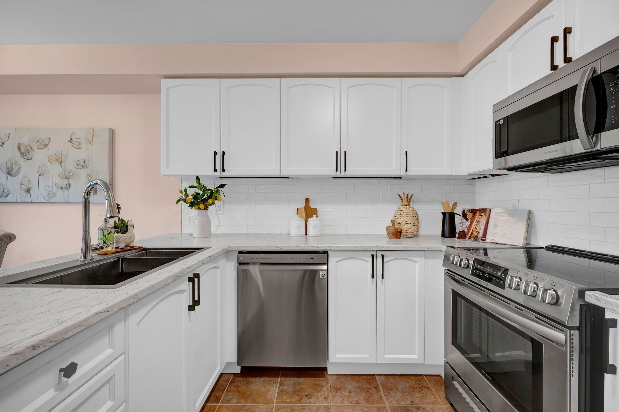 • Updated kitchen features stainless steel appliances and ample storage.
