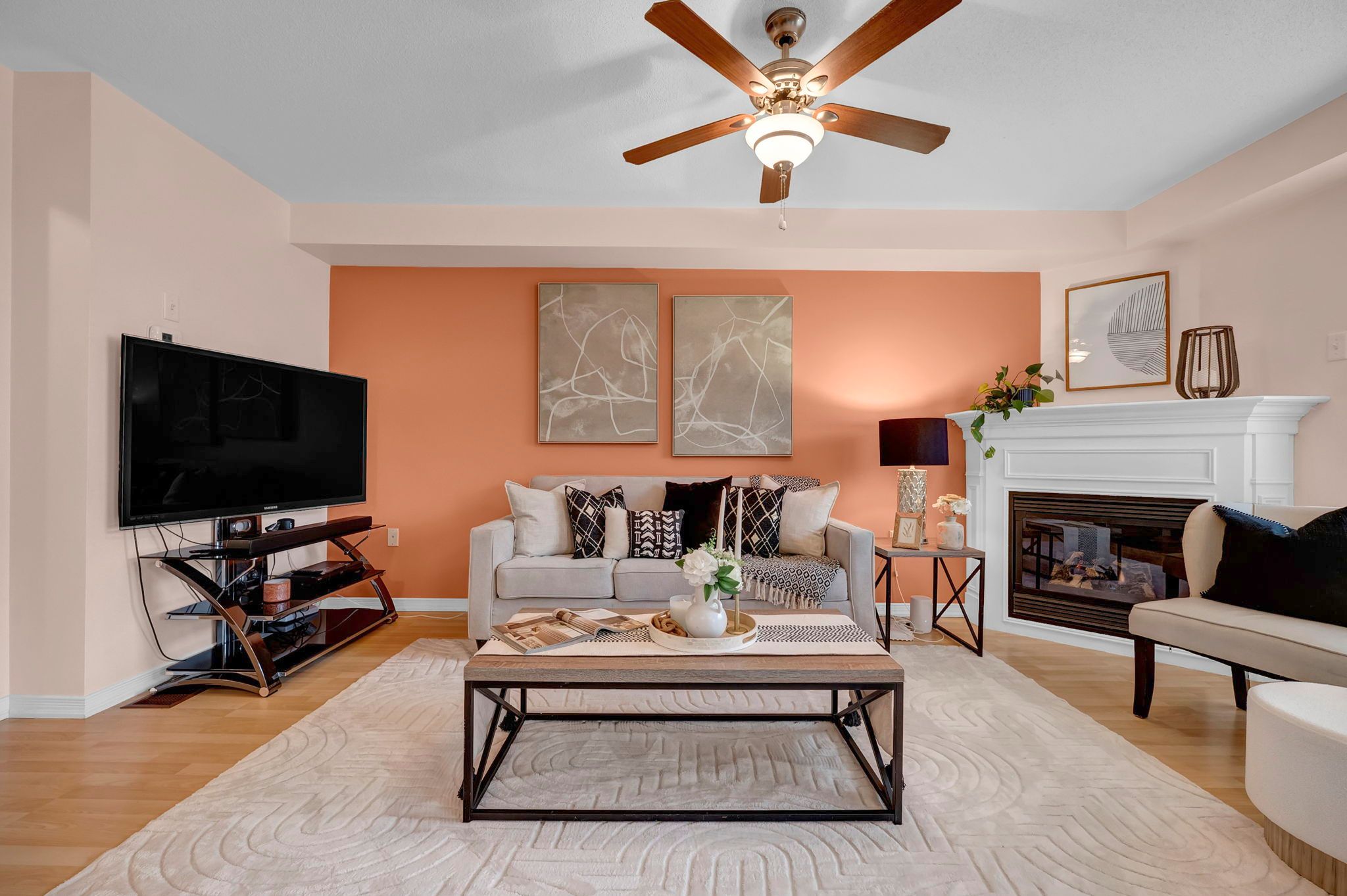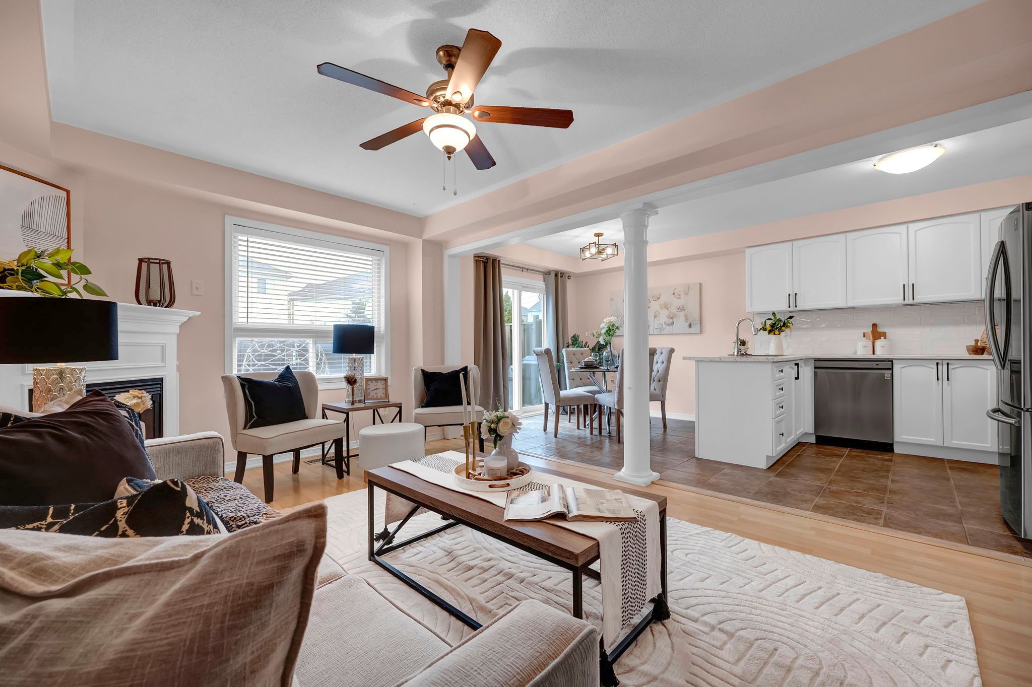 • Open-concept main level with a cozy gas fireplace.