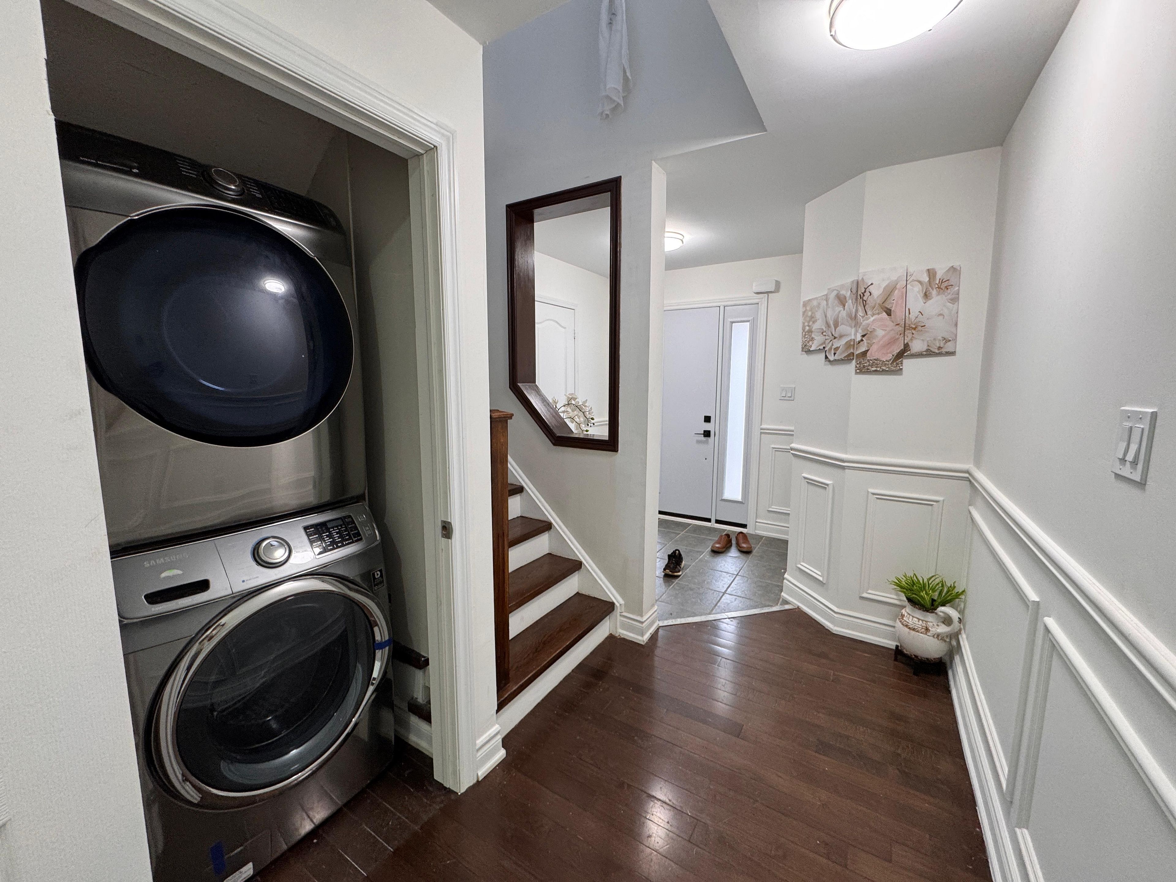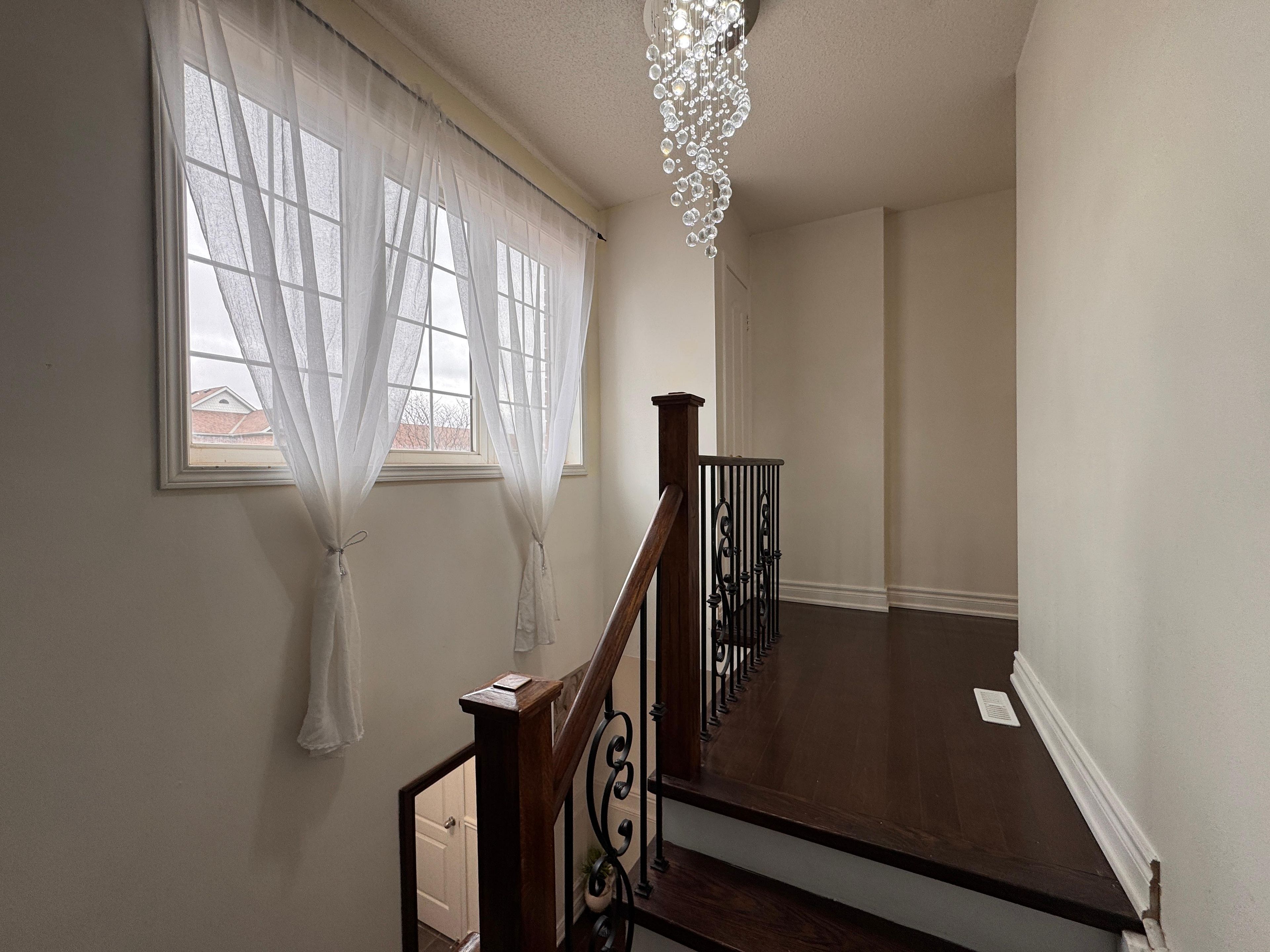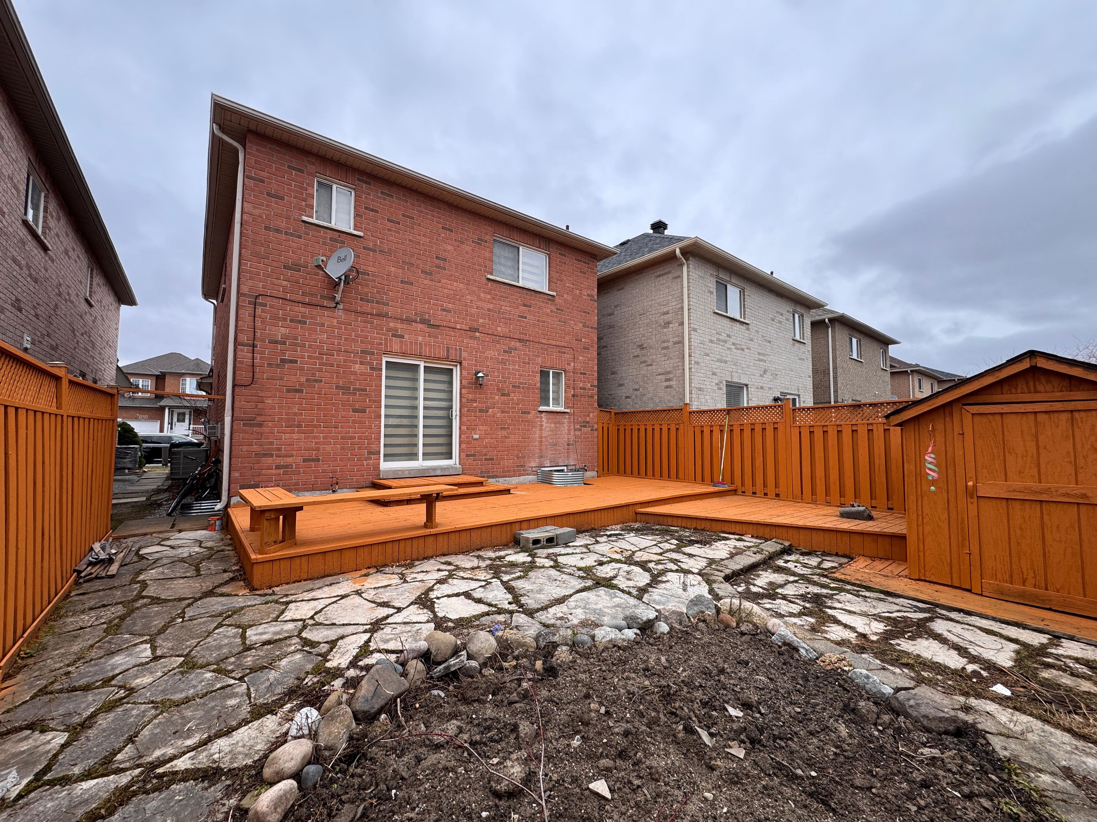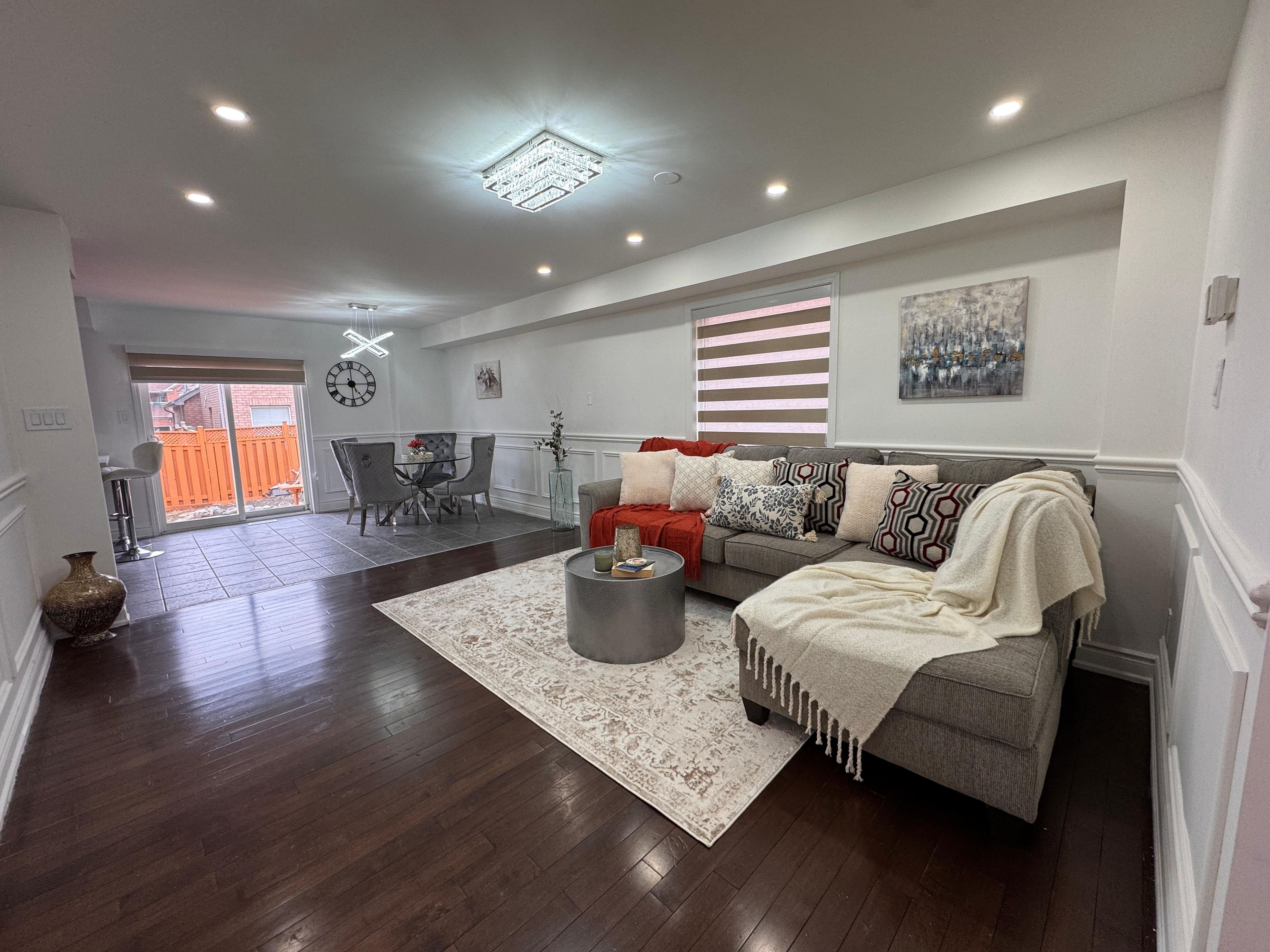Stunning fully renovated, move-in ready 3+1 bdrm, 4 bathroom detached home in a highly sought-after area! Ideally located right accross community centre, schools & large plaza featuring freshco grocery store, scotiabank, resturants & more. Close to public transit & just minsutes to the go station. This beautiful home showcases hardwood floors throughout, custom wainscotting & modern finsihes, complemented by a stylish updated front & garage door, front porch & an extended driveway providing generous parking space. The main level offers a bright, spacious living & dining area alongside a renovated kitchen w/quartz countertop & stainless steel appliances. The upper level features a spacious primary bedroom with a 4 pc ensuite & built-in closet, along with generously sized additional bedrooms. The legal finished basement apartment w/separate entrance adds exceptional value, complete with it's own kitchen, living area, bedroom & private laundry-ideal for rental income or extended family living. Two separate laundry areas (main & bsmt) enjoy a fully fenced private backyard featuring a large deck with built-in seating, storage shed & dedicated garden space-perfect for outdoor living & entertaining. Additional highlights include 2 seperate laundry areas (main & bsmt), fully rennovated bathrooms featuring quartz countertops, designed backsplash & led vanity mirrors, updated light fixatures & chandeliers throughout, an upgraded 200 amp electrical panel (esa certified) & an updated asphalt shingle roof (2019) a beautifully updated home offering the perfect balance of comfort, style & income potential!