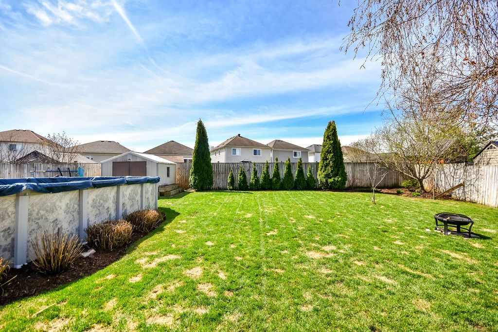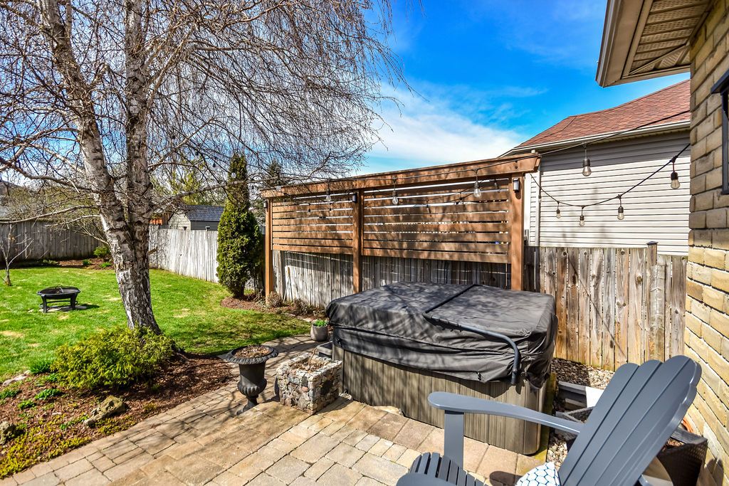 • Beautifully landscaped yard with a hot tub and above-ground pool.