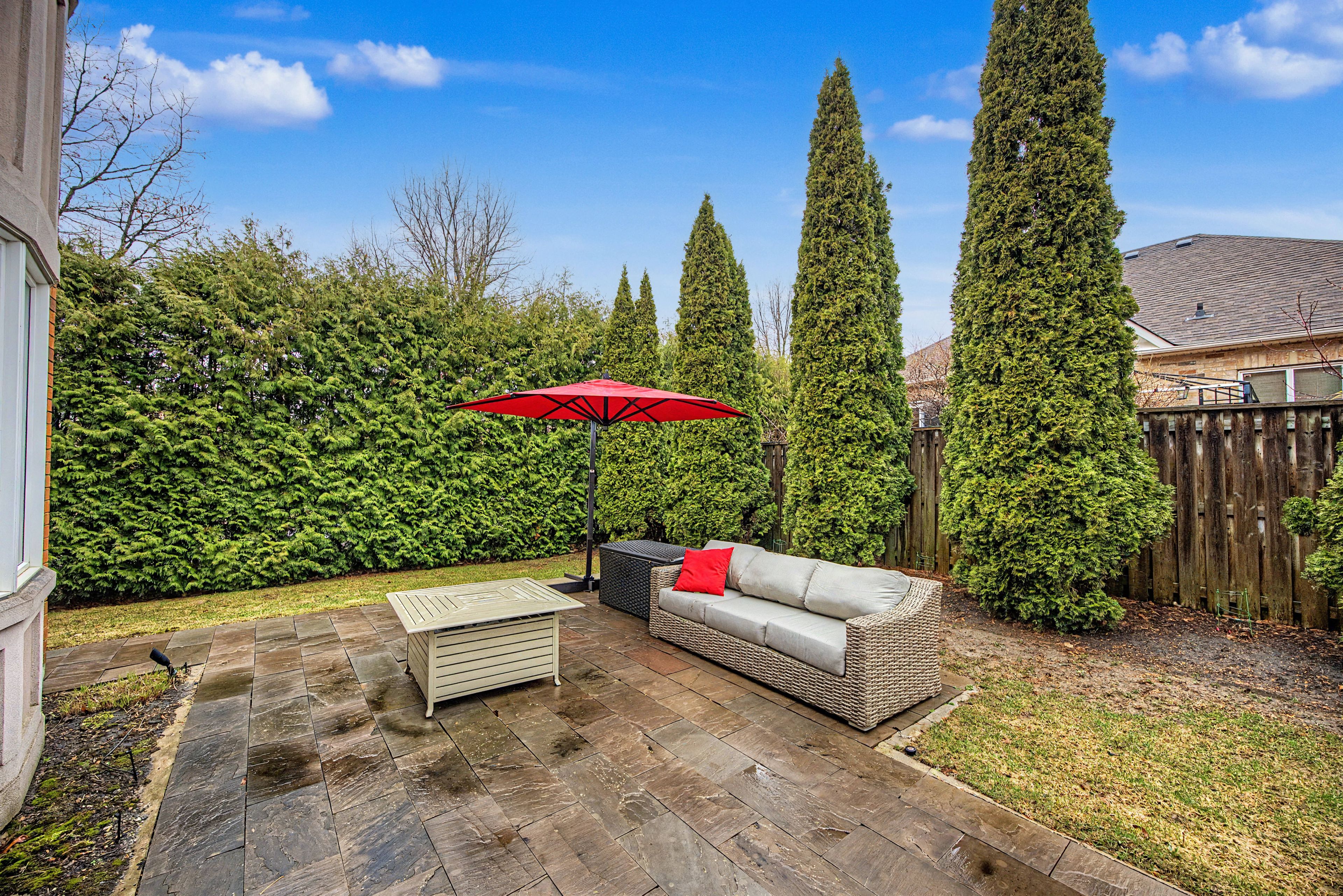 • Fully fenced landscaped backyard with stone patio for entertaining.