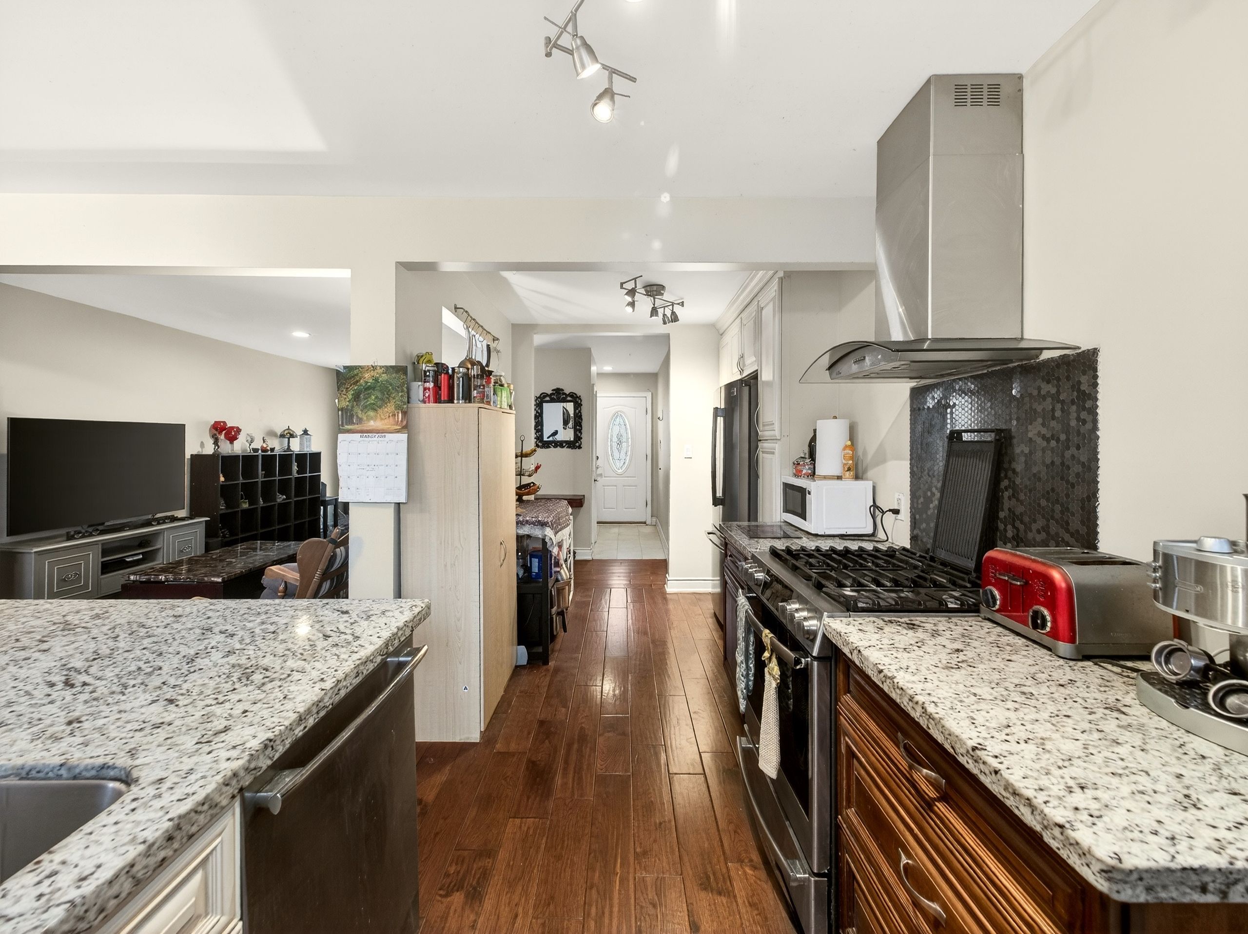 • Bright main floor with hardwood flooring and natural light from pot lights.