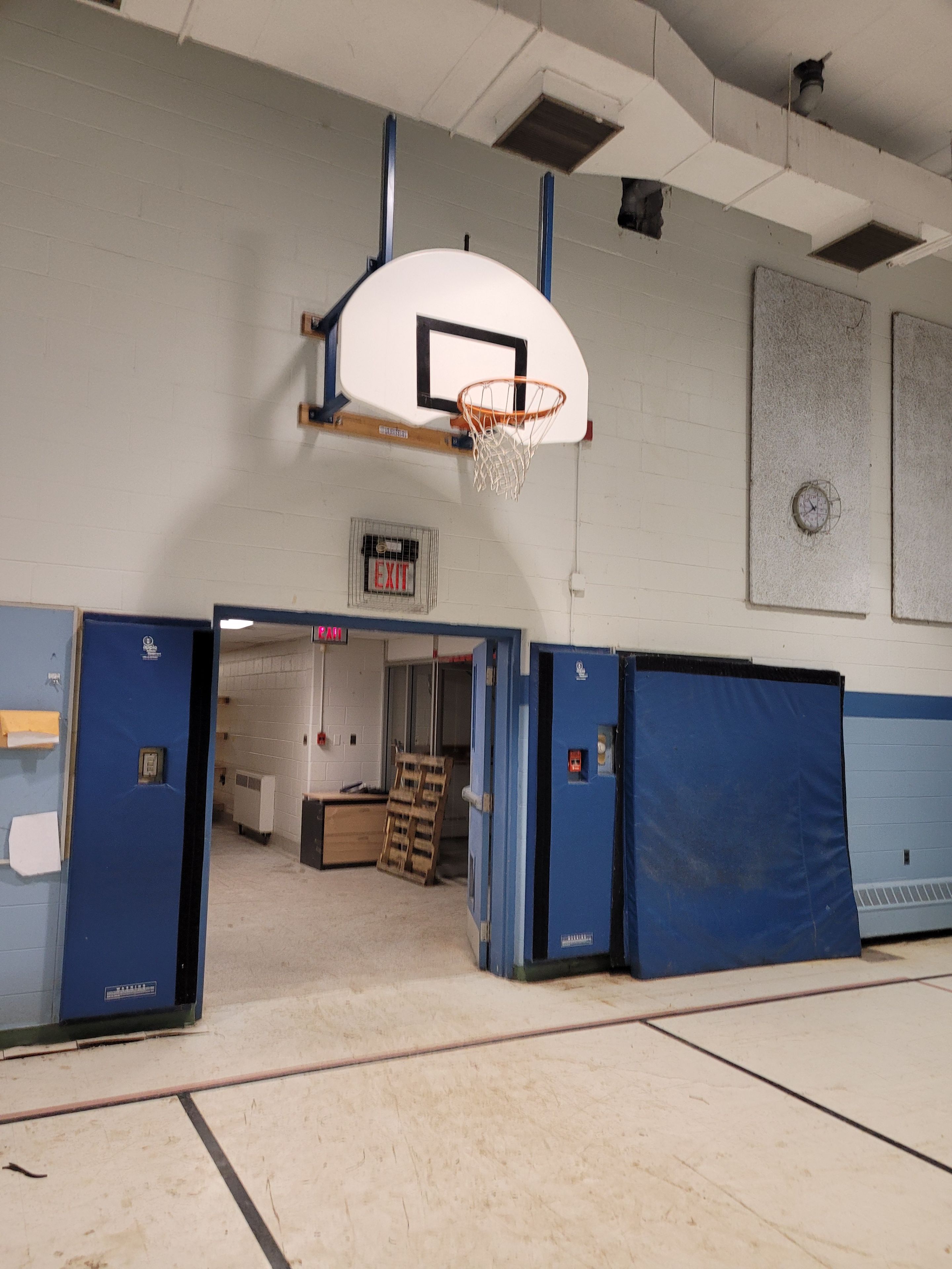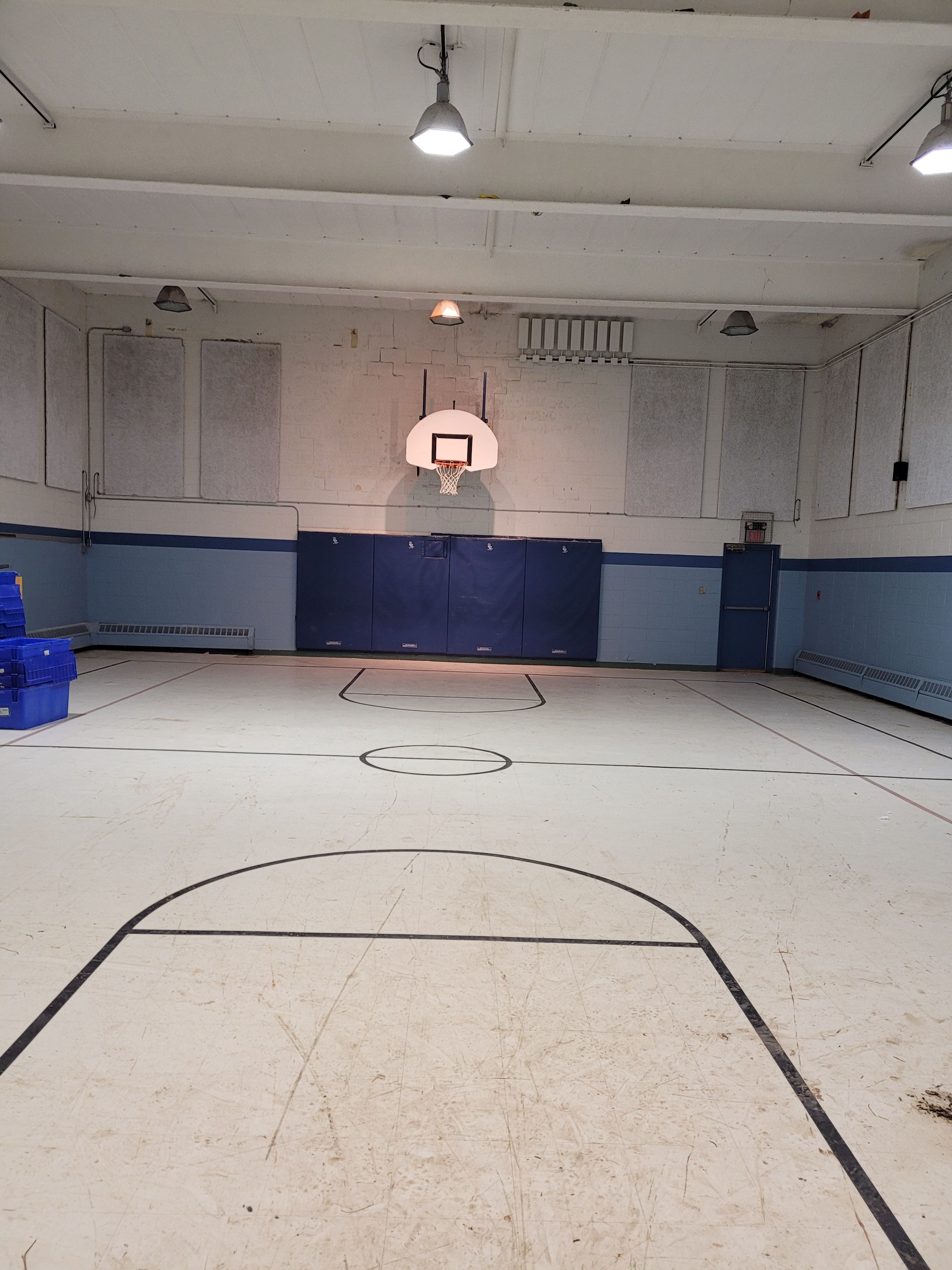 • Large gymnasium with 20 ft ceiling height for diverse activities.