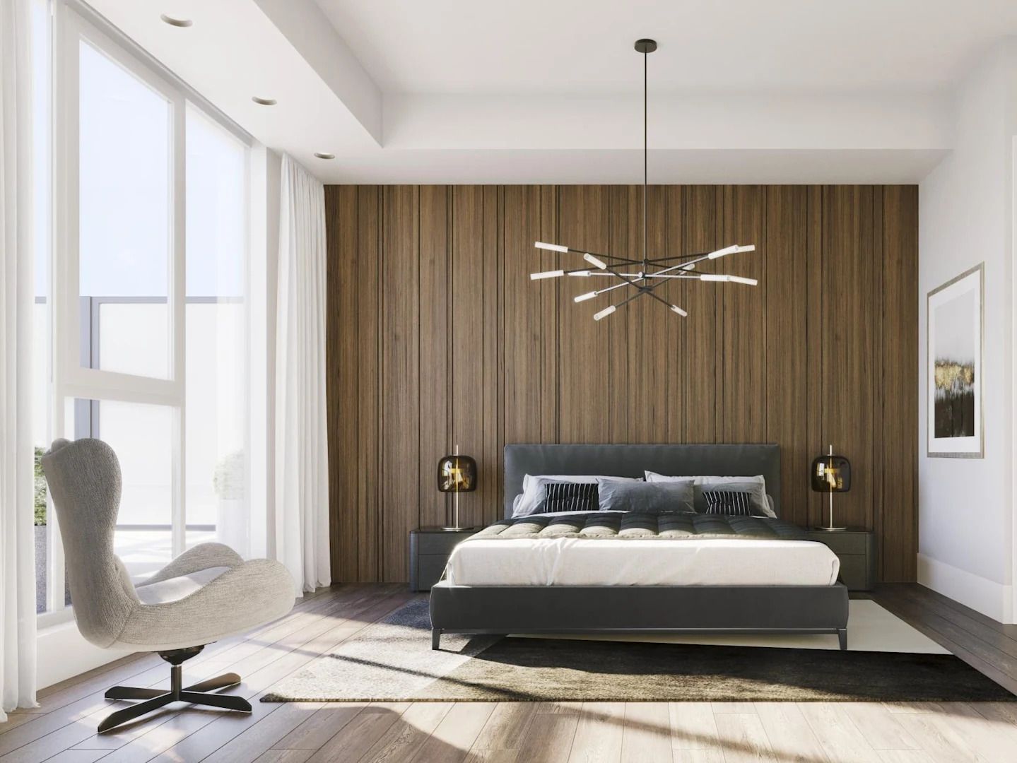 • Spacious 2-bedroom + den corner suite with 1,046 sq. ft. of interior space.