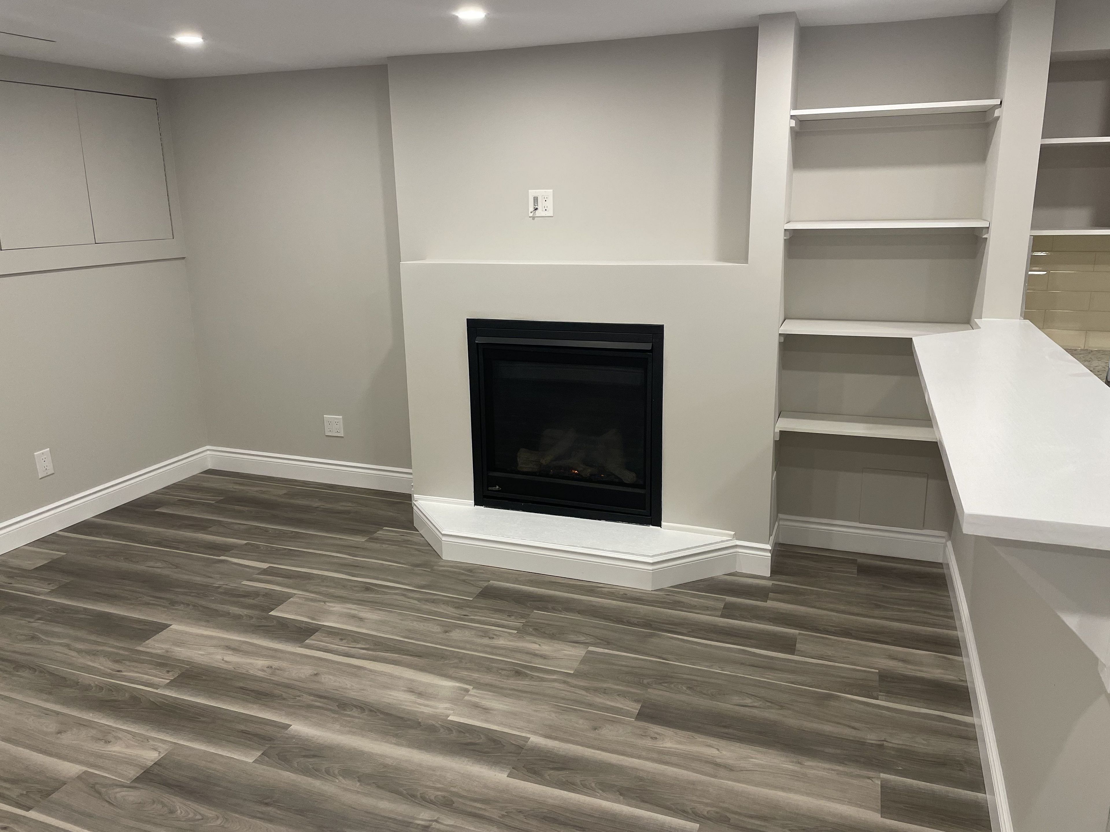 • Cozy living room featuring a gas fireplace for warmth.