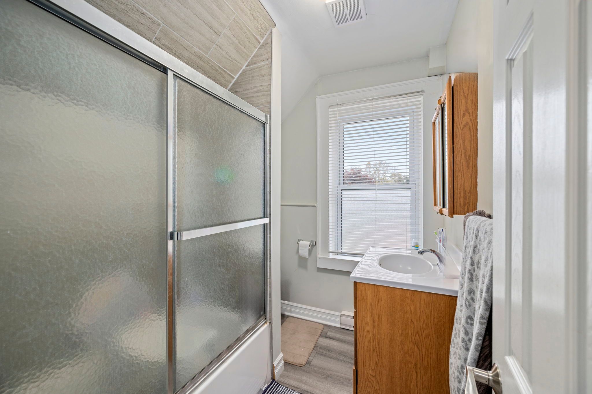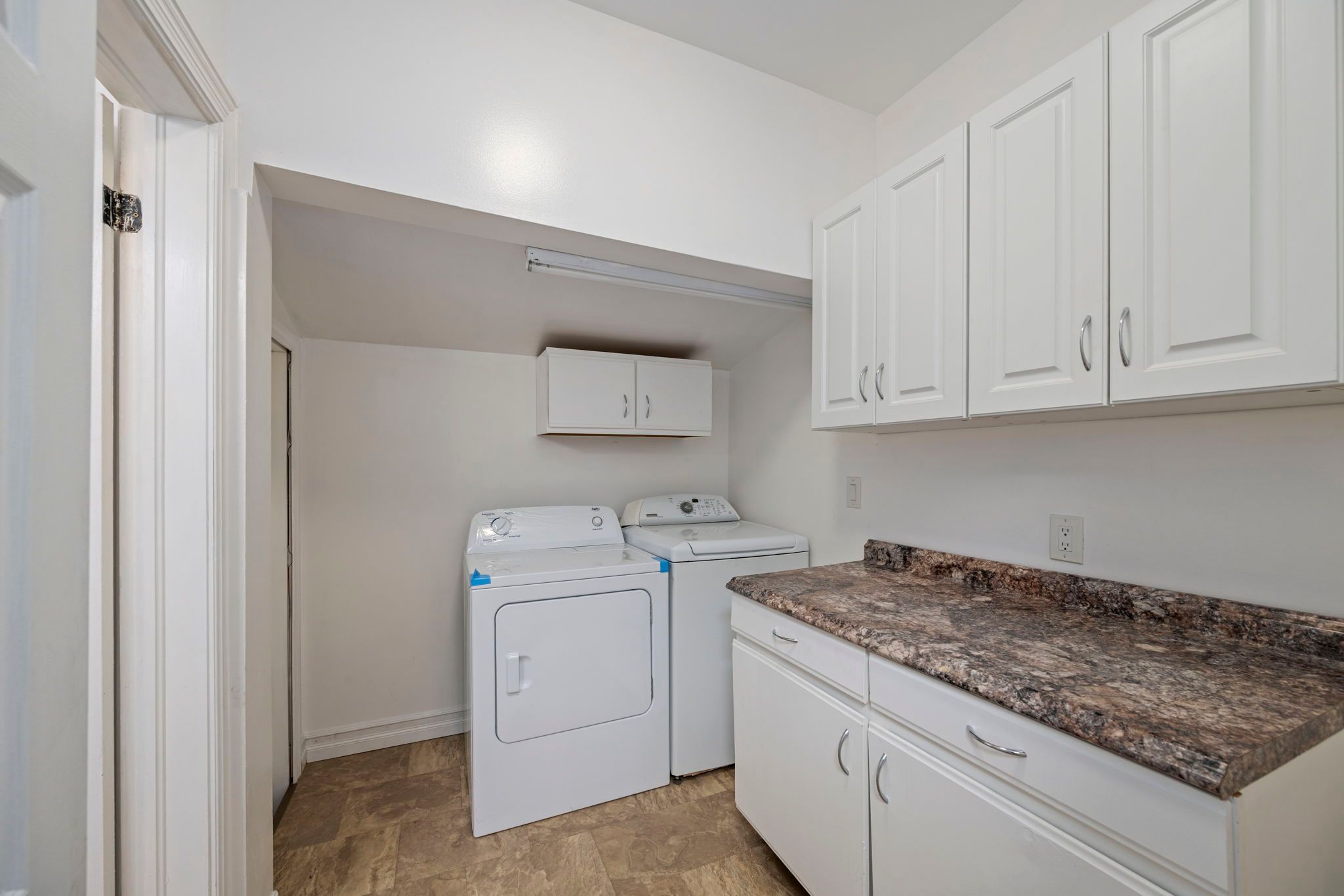 • Upstairs one-bedroom apartment features in-unit laundry and spacious closet.
